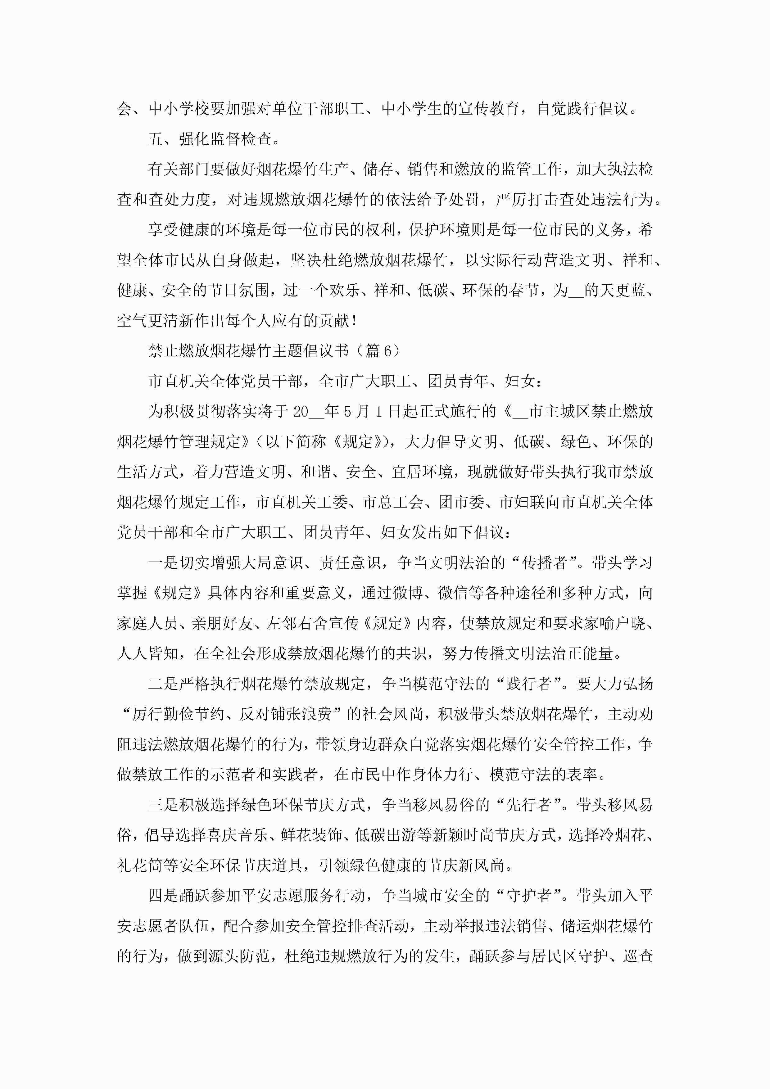 2023禁止燃放烟花爆竹主题倡议书标准模板jugei3月22日 16:27发布关注191 2023禁止燃放烟花爆竹主题倡议书标准模板此内容为付费资源,请付费后查看¥10.9 单篇文档限时特惠¥15个人会员开通企业会员开通立即下载无需登陆!可直接快捷下载单个模板付费资源© 版权声明THE ENDWord模板# 实用文档# 实用模板# 信函模板# 倡议书 如有问题,可点击最底部“联系我们”联系客服 分享QQ空间微博QQ好友海报分享复制链接收藏