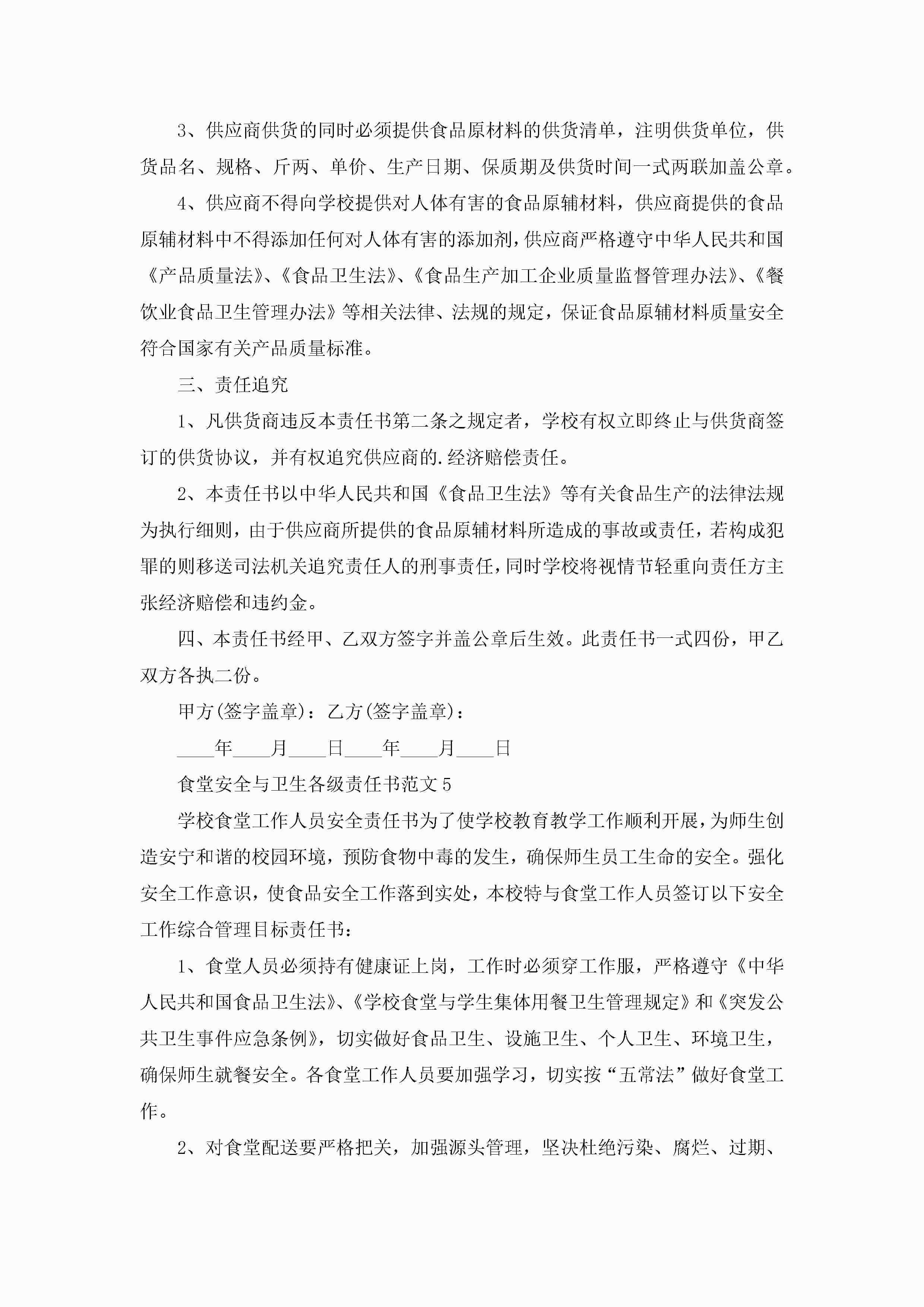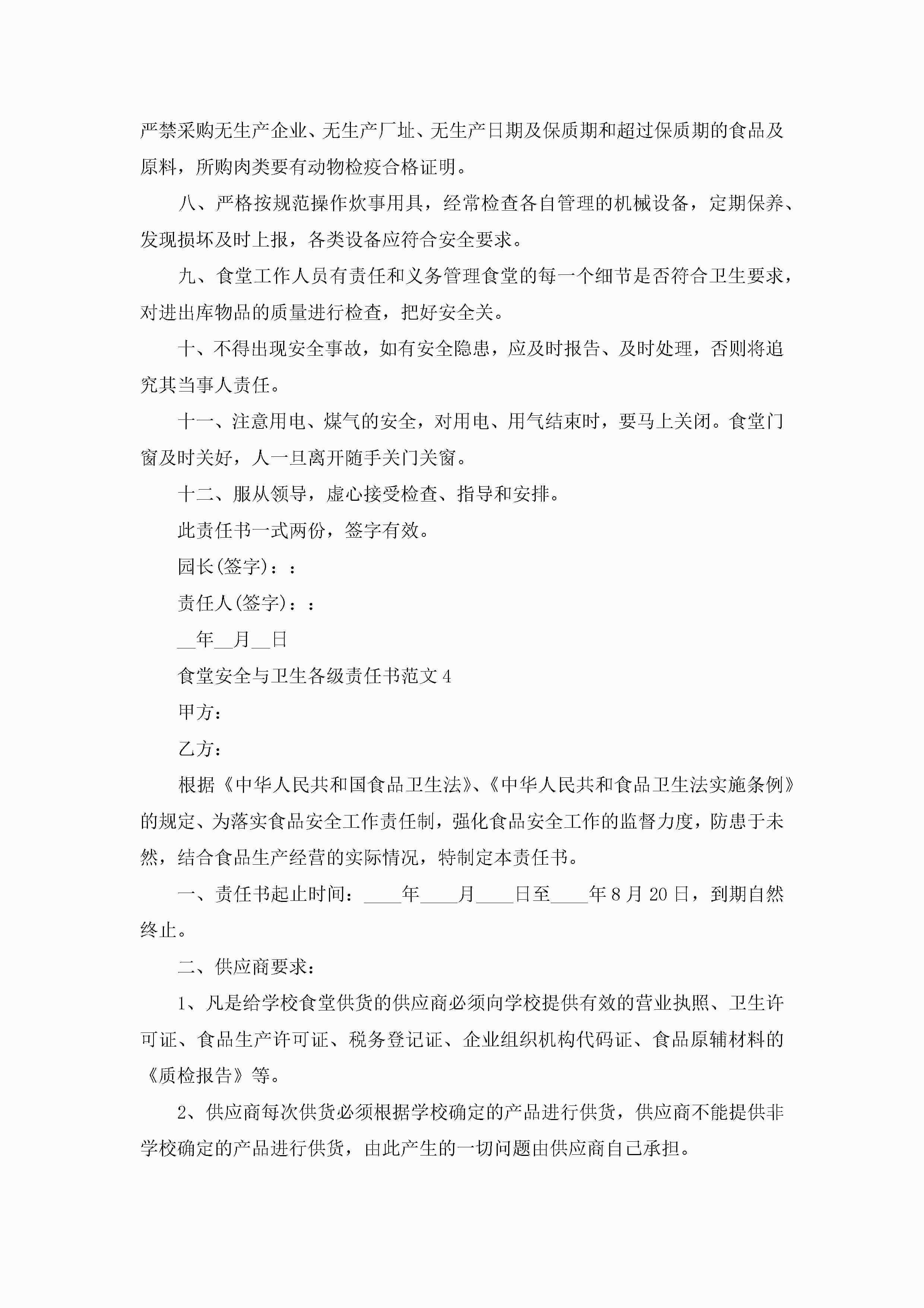 食堂安全与卫生各级责任书范文5篇jugei3月22日 16:27发布关注204 食堂安全与卫生各级责任书范文5篇此内容为付费资源,请付费后查看¥10.9 单篇文档限时特惠¥15个人会员开通企业会员开通立即下载无需登陆!可直接快捷下载单个模板付费资源© 版权声明THE ENDWord模板# 实用文档# 实用模板# 信函模板# 责任书 如有问题,可点击最底部“联系我们”联系客服 分享QQ空间微博QQ好友海报分享复制链接收藏