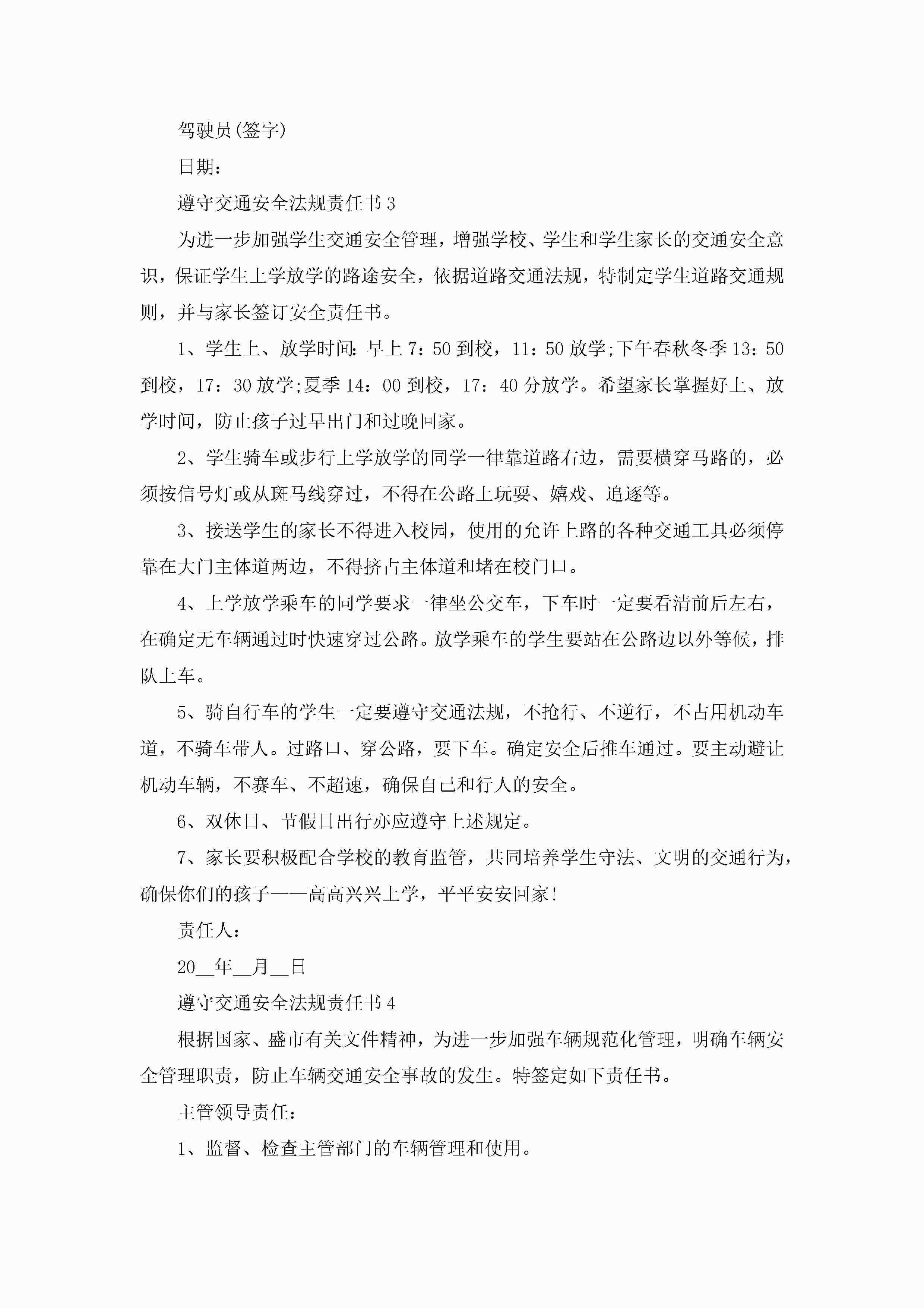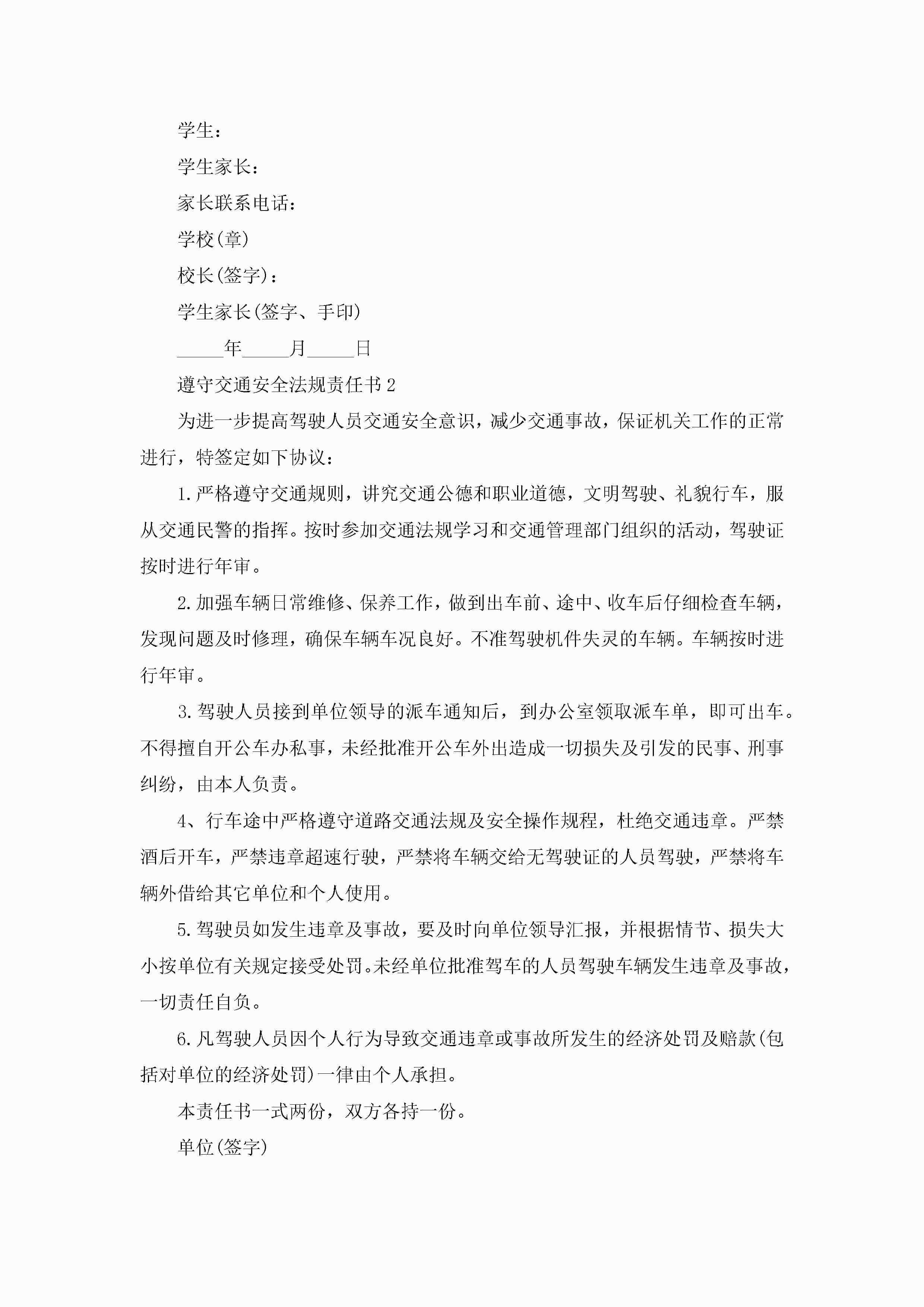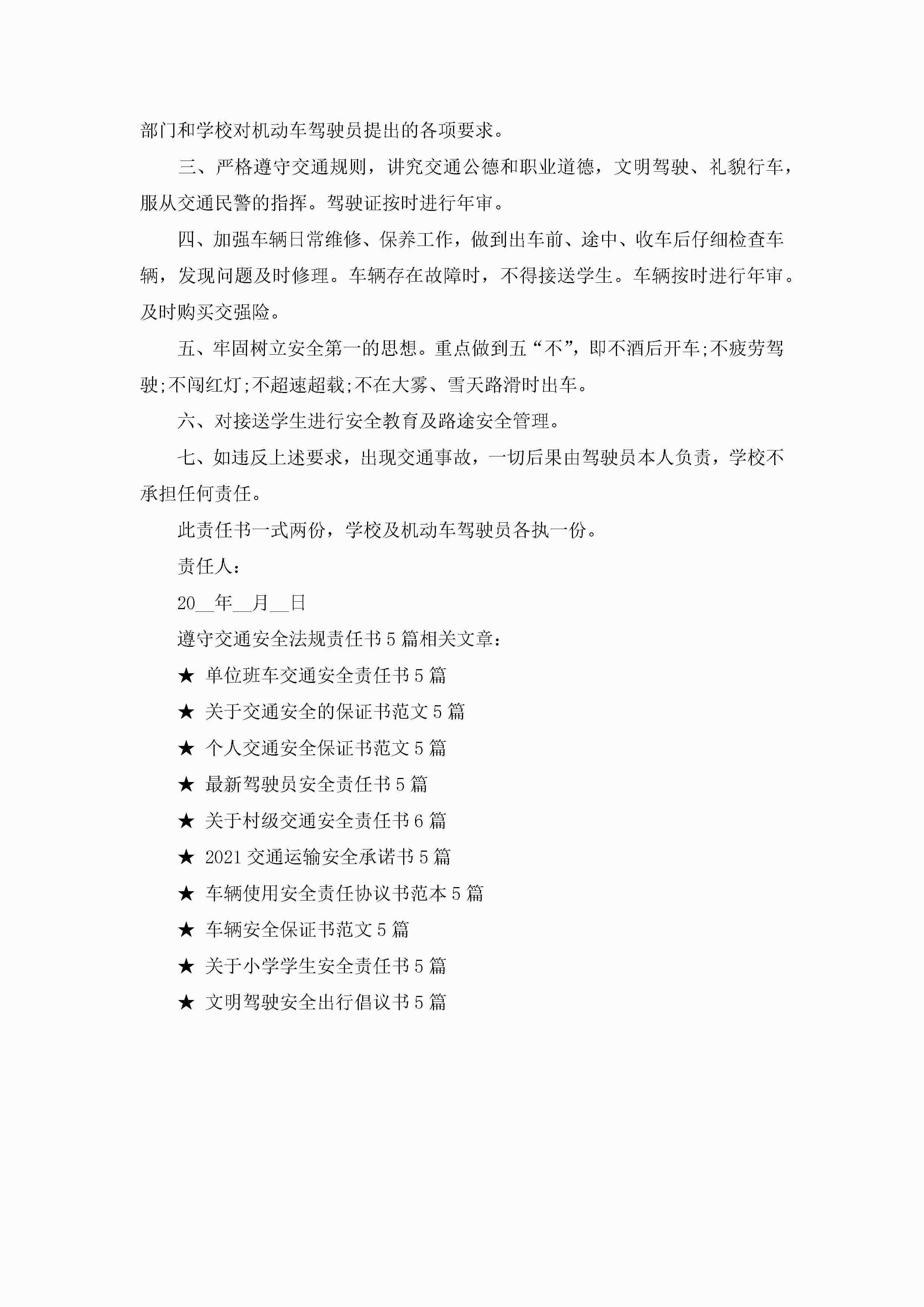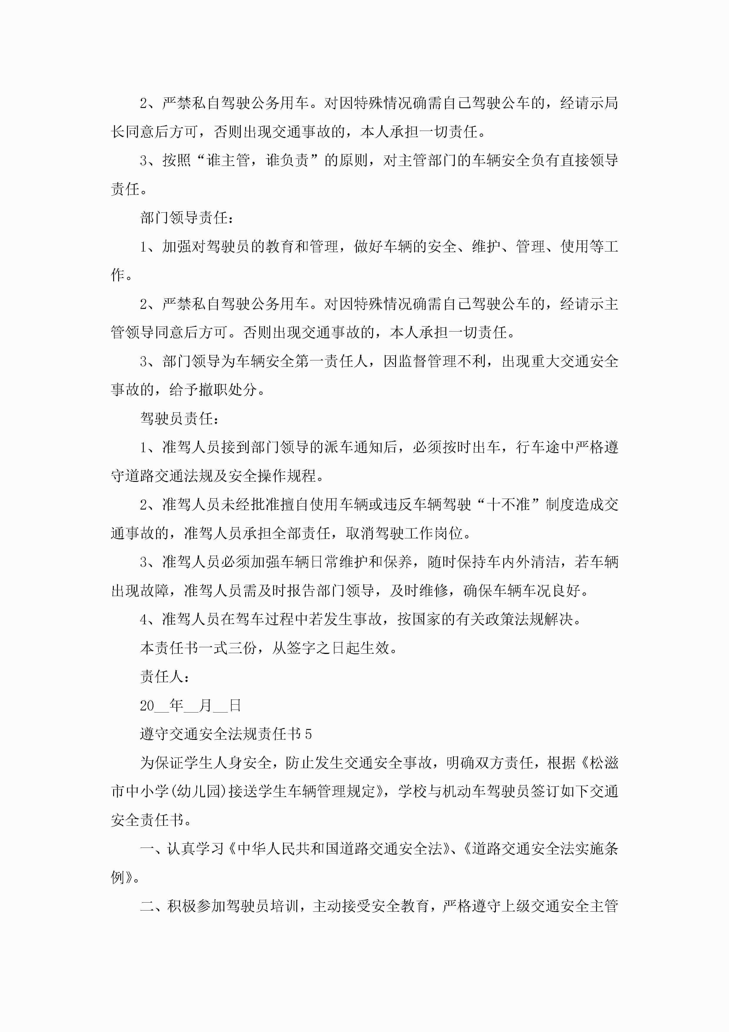 关于遵守交通安全法规责任书5篇jugei3月22日 16:27发布关注391 关于遵守交通安全法规责任书5篇此内容为付费资源,请付费后查看¥10.9 单篇文档限时特惠¥15个人会员开通企业会员开通立即下载无需登陆!可直接快捷下载单个模板付费资源© 版权声明THE ENDWord模板# 实用文档# 实用模板# 信函模板# 责任书 如有问题,可点击最底部“联系我们”联系客服 分享QQ空间微博QQ好友海报分享复制链接收藏