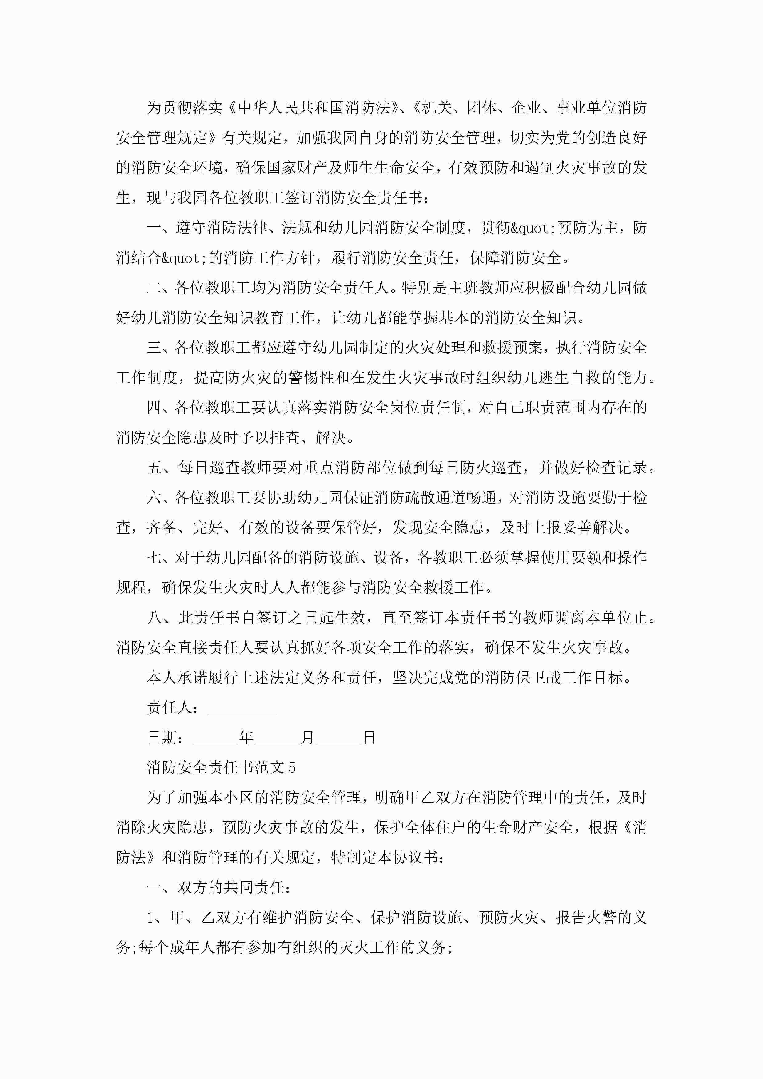 消防安全责任书范文5篇jugei3月22日 16:27发布关注243 消防安全责任书范文5篇此内容为付费资源,请付费后查看¥10.9 单篇文档限时特惠¥15个人会员开通企业会员开通立即下载无需登陆!可直接快捷下载单个模板付费资源© 版权声明THE ENDWord模板# 实用文档# 实用模板# 信函模板# 责任书 如有问题,可点击最底部“联系我们”联系客服 分享QQ空间微博QQ好友海报分享复制链接收藏