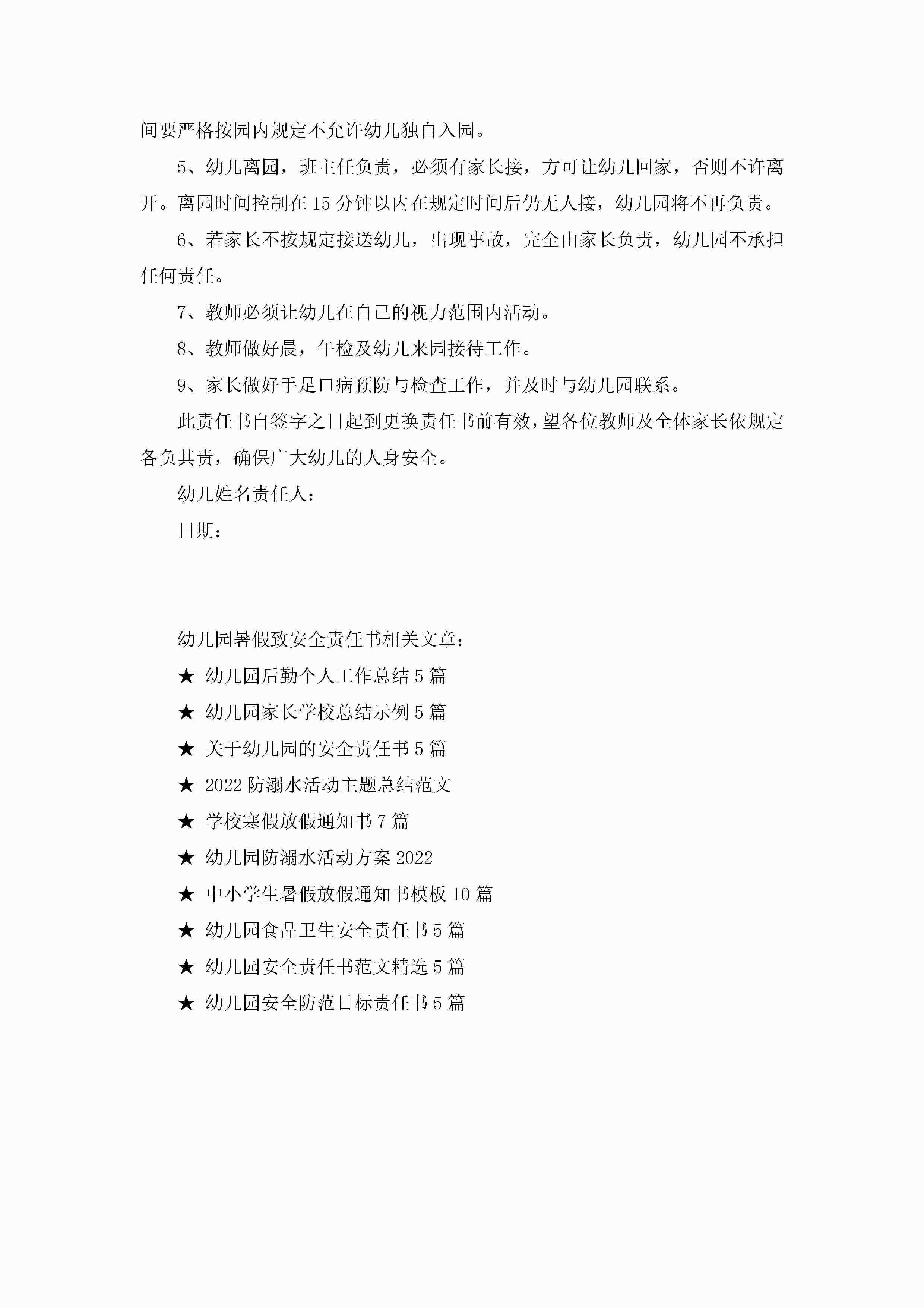 幼儿园暑假致安全责任书5篇jugei3月22日 16:27发布关注331 幼儿园暑假致安全责任书5篇此内容为付费资源,请付费后查看¥10.9 单篇文档限时特惠¥15个人会员开通企业会员开通立即下载无需登陆!可直接快捷下载单个模板付费资源© 版权声明THE ENDWord模板# 实用文档# 实用模板# 信函模板# 责任书 如有问题,可点击最底部“联系我们”联系客服 分享QQ空间微博QQ好友海报分享复制链接收藏