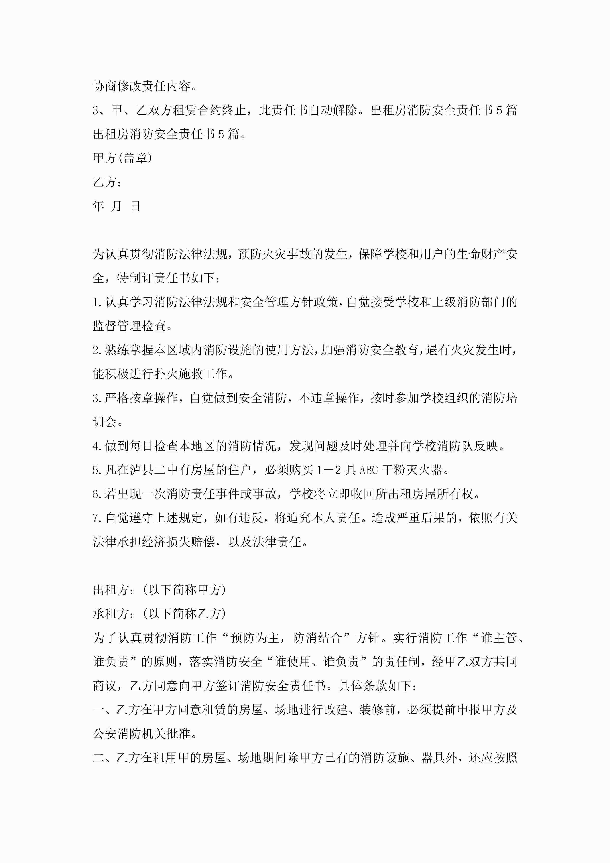 租户消防安全责任书5篇jugei3月22日 16:27发布关注308 租户消防安全责任书5篇此内容为付费资源,请付费后查看¥10.9 单篇文档限时特惠¥15个人会员开通企业会员开通立即下载无需登陆!可直接快捷下载单个模板付费资源© 版权声明THE ENDWord模板# 实用文档# 实用模板# 信函模板# 责任书 如有问题,可点击最底部“联系我们”联系客服 分享QQ空间微博QQ好友海报分享复制链接收藏
