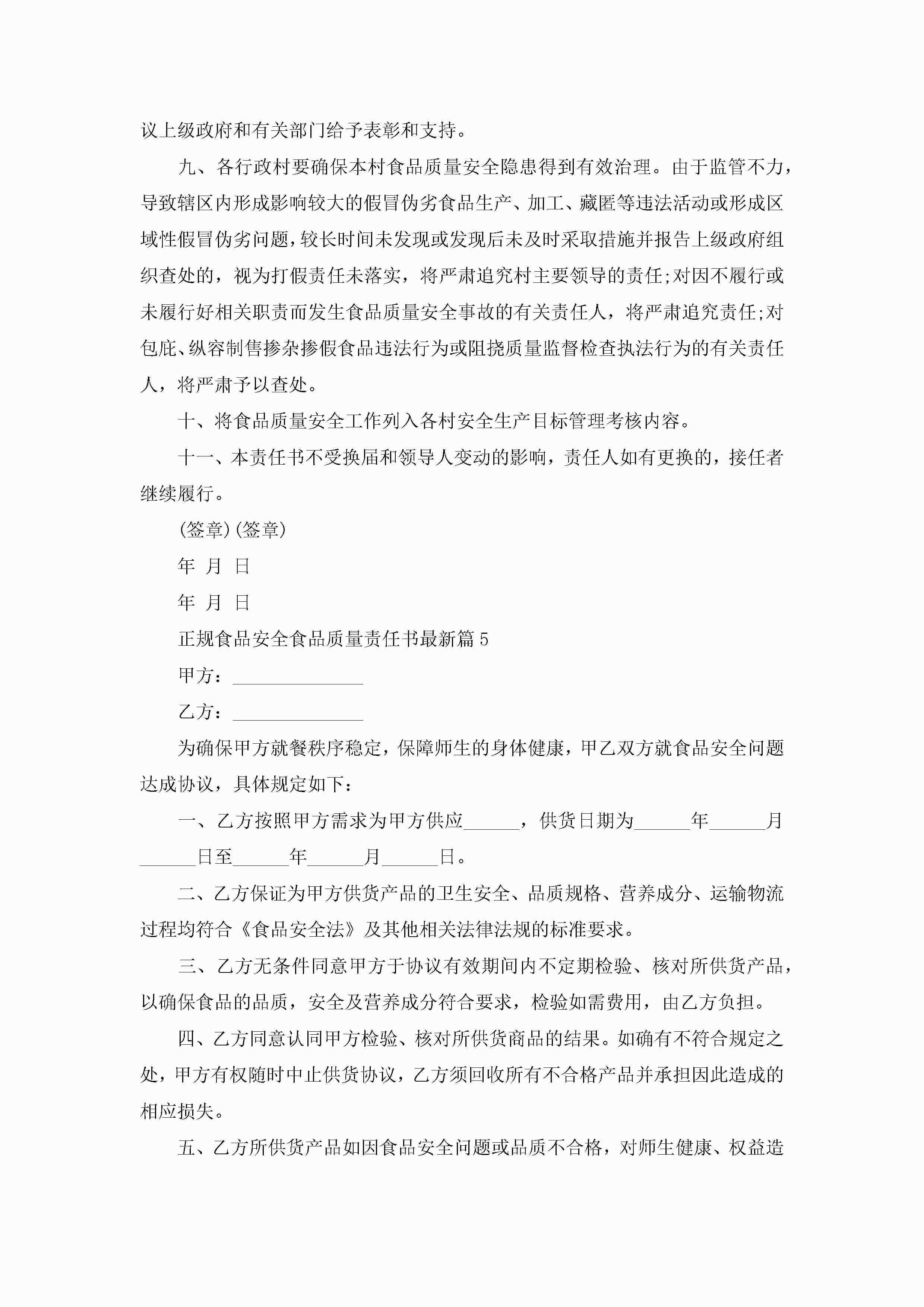 正规食品安全食品质量责任书最新(精选7篇)jugei3月22日 16:27发布关注210 正规食品安全食品质量责任书最新(精选7篇)此内容为付费资源,请付费后查看¥10.9 单篇文档限时特惠¥15个人会员开通企业会员开通立即下载无需登陆!可直接快捷下载单个模板付费资源© 版权声明THE ENDWord模板# 实用文档# 实用模板# 信函模板# 责任书 如有问题,可点击最底部“联系我们”联系客服 分享QQ空间微博QQ好友海报分享复制链接收藏