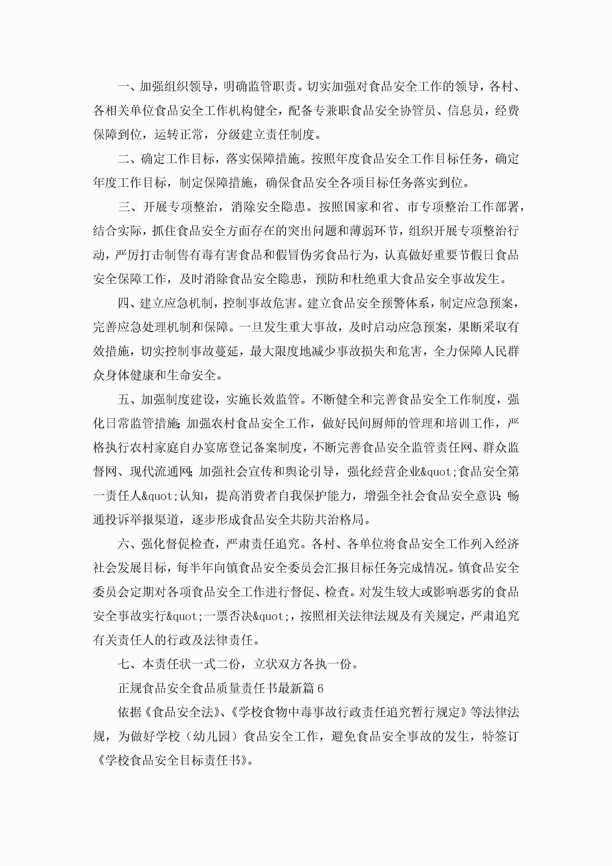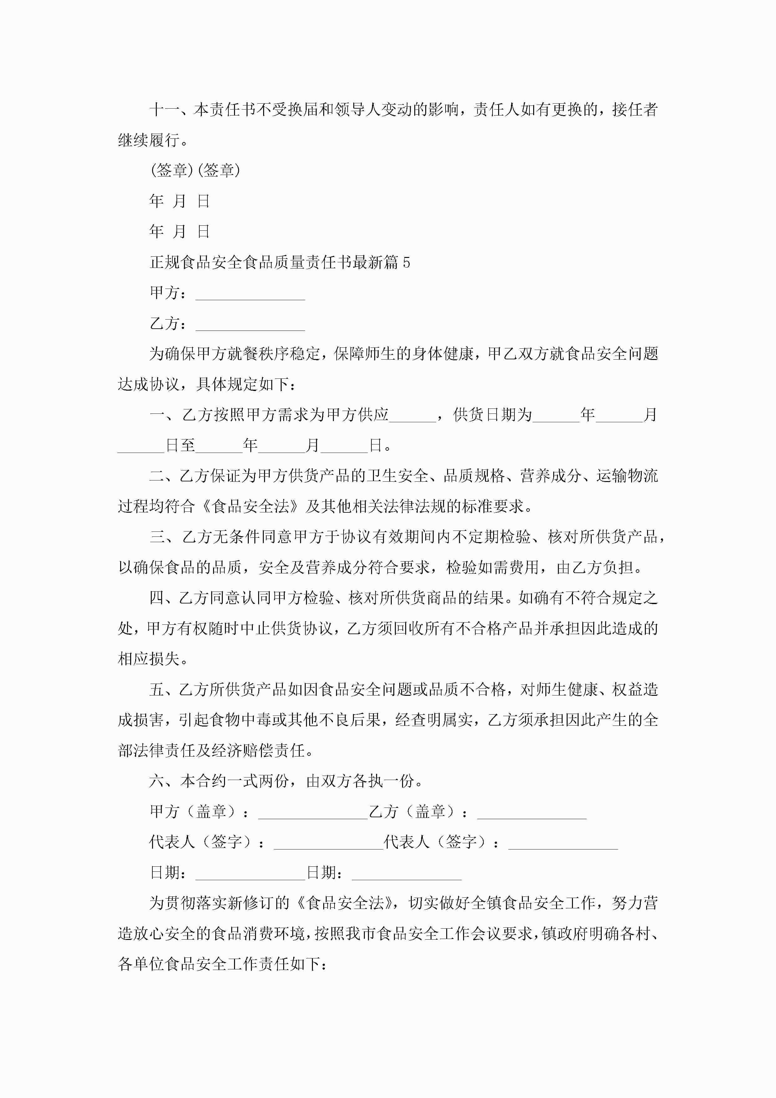 正规食品安全食品质量责任书最新(通用7篇)jugei3月22日 16:27发布关注205 正规食品安全食品质量责任书最新(通用7篇)此内容为付费资源,请付费后查看¥10.9 单篇文档限时特惠¥15个人会员开通企业会员开通立即下载无需登陆!可直接快捷下载单个模板付费资源© 版权声明THE ENDWord模板# 实用文档# 实用模板# 信函模板# 责任书 如有问题,可点击最底部“联系我们”联系客服 分享QQ空间微博QQ好友海报分享复制链接收藏
