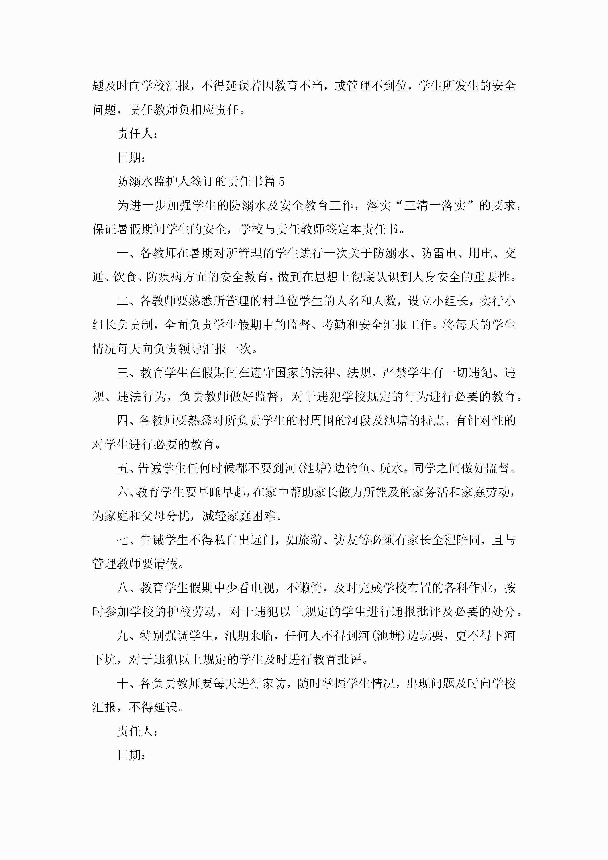 防溺水监护人签订的责任书【精选7篇】jugei3月22日 16:27发布关注190 防溺水监护人签订的责任书【精选7篇】此内容为付费资源,请付费后查看¥10.9 单篇文档限时特惠¥15个人会员开通企业会员开通立即下载无需登陆!可直接快捷下载单个模板付费资源© 版权声明THE ENDWord模板# 实用文档# 实用模板# 信函模板# 责任书# 防溺水监护人签订的责任书 如有问题,可点击最底部“联系我们”联系客服 分享QQ空间微博QQ好友海报分享复制链接收藏