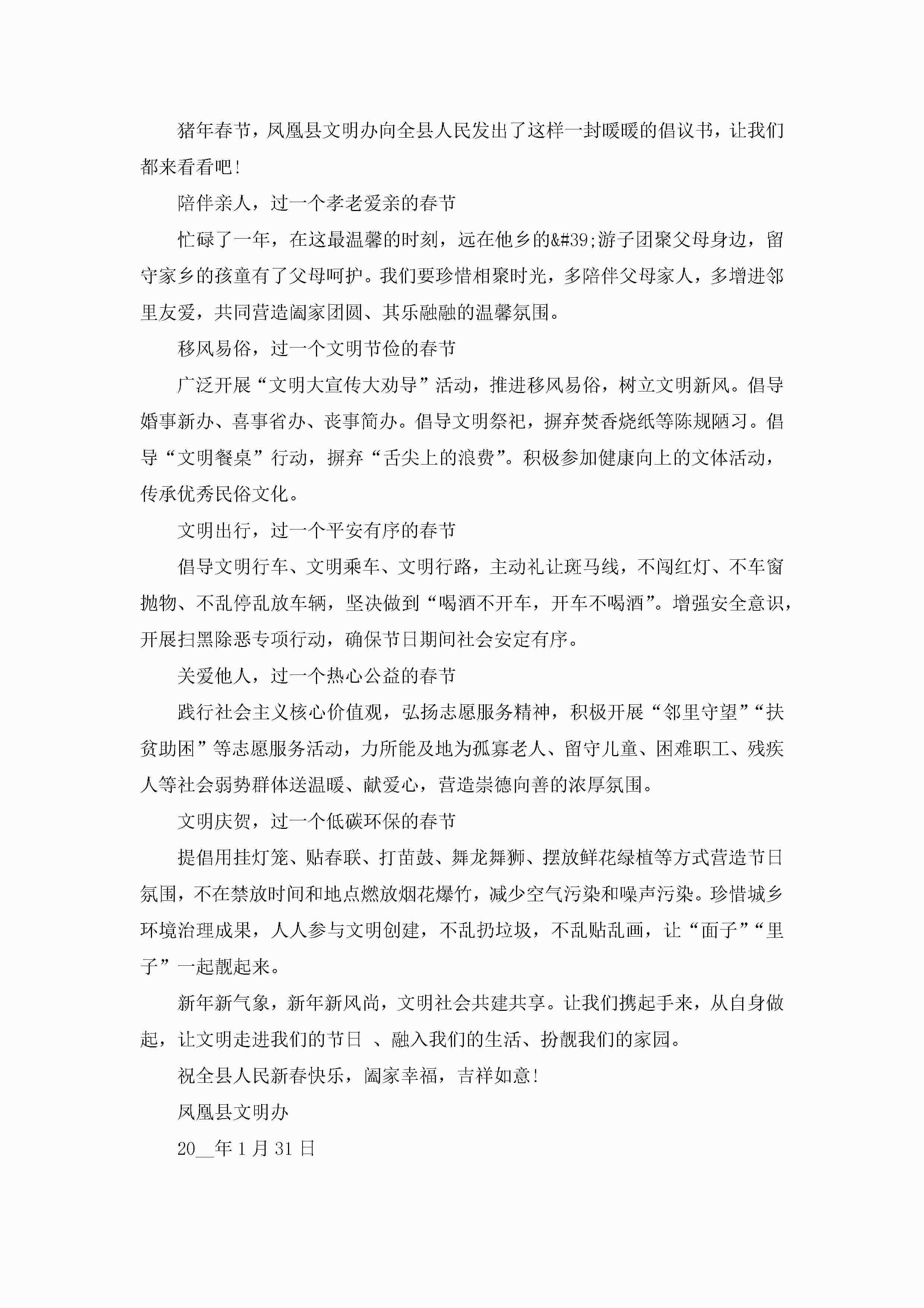 春节文明过节倡议书800字(精选7篇)jugei3月22日 16:27发布关注189 春节文明过节倡议书800字(精选7篇)此内容为付费资源,请付费后查看¥10.9 单篇文档限时特惠¥15个人会员开通企业会员开通立即下载无需登陆!可直接快捷下载单个模板付费资源© 版权声明THE ENDWord模板# 实用文档# 实用模板# 信函模板# 倡议书 如有问题,可点击最底部“联系我们”联系客服 分享QQ空间微博QQ好友海报分享复制链接收藏