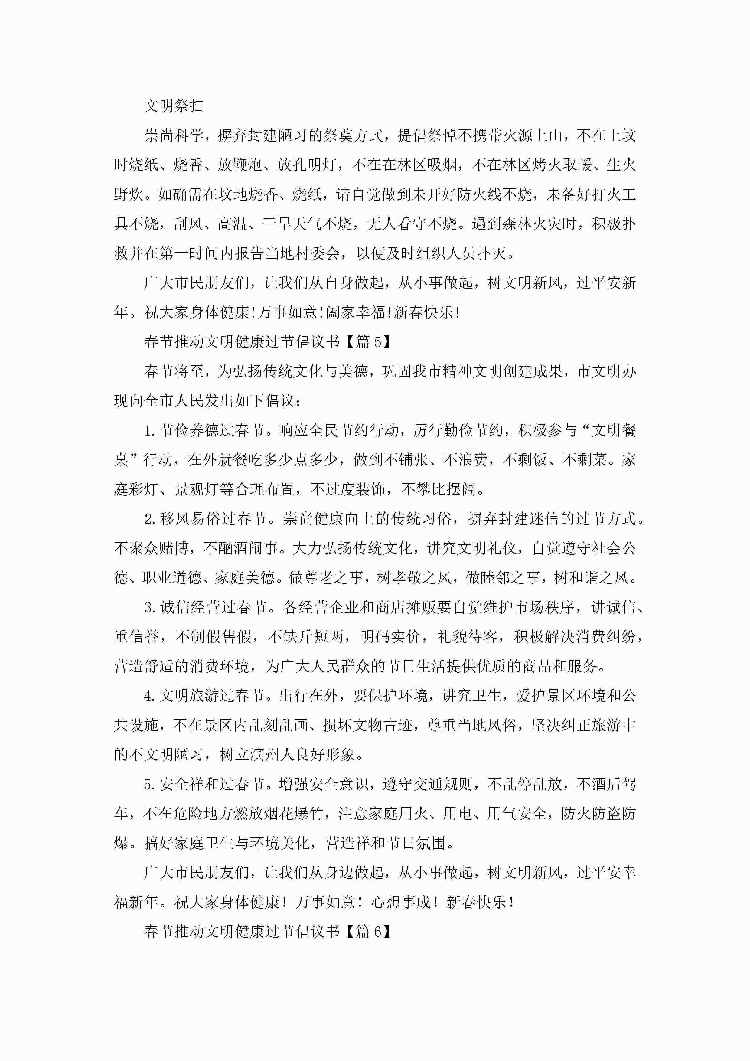 春节推动文明健康过节倡议书(精选7篇)jugei3月22日 16:27发布关注414 春节推动文明健康过节倡议书(精选7篇)此内容为付费资源,请付费后查看¥10.9 单篇文档限时特惠¥15个人会员开通企业会员开通立即下载无需登陆!可直接快捷下载单个模板付费资源© 版权声明THE ENDWord模板# 实用文档# 实用模板# 信函模板# 倡议书 如有问题,可点击最底部“联系我们”联系客服 分享QQ空间微博QQ好友海报分享复制链接收藏