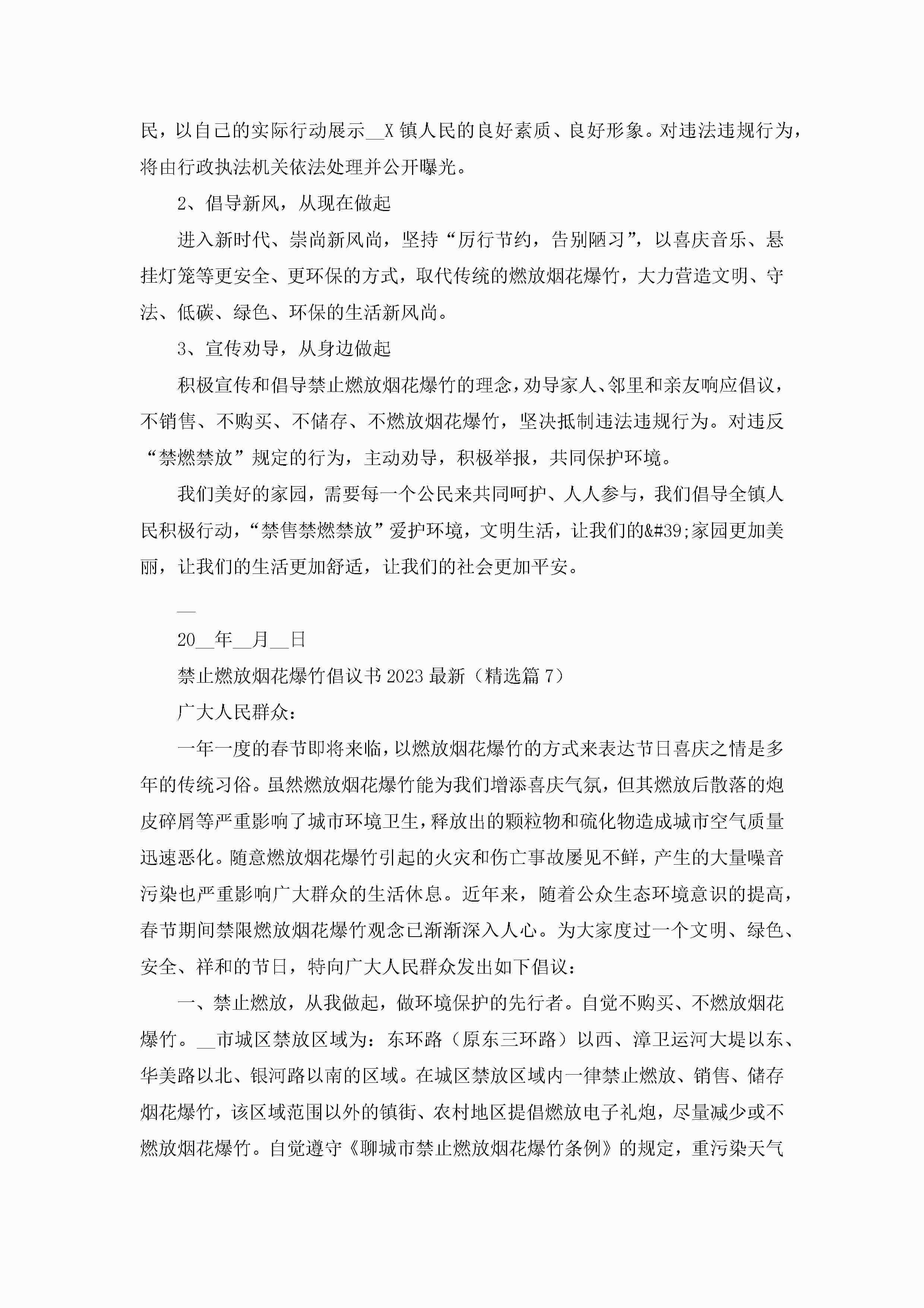 禁止燃放烟花爆竹倡议书2023最新(精选7篇)jugei3月22日 16:27发布关注196 禁止燃放烟花爆竹倡议书2023最新(精选7篇)此内容为付费资源,请付费后查看¥10.9 单篇文档限时特惠¥15个人会员开通企业会员开通立即下载无需登陆!可直接快捷下载单个模板付费资源© 版权声明THE ENDWord模板# 实用文档# 实用模板# 信函模板# 倡议书 如有问题,可点击最底部“联系我们”联系客服 分享QQ空间微博QQ好友海报分享复制链接收藏