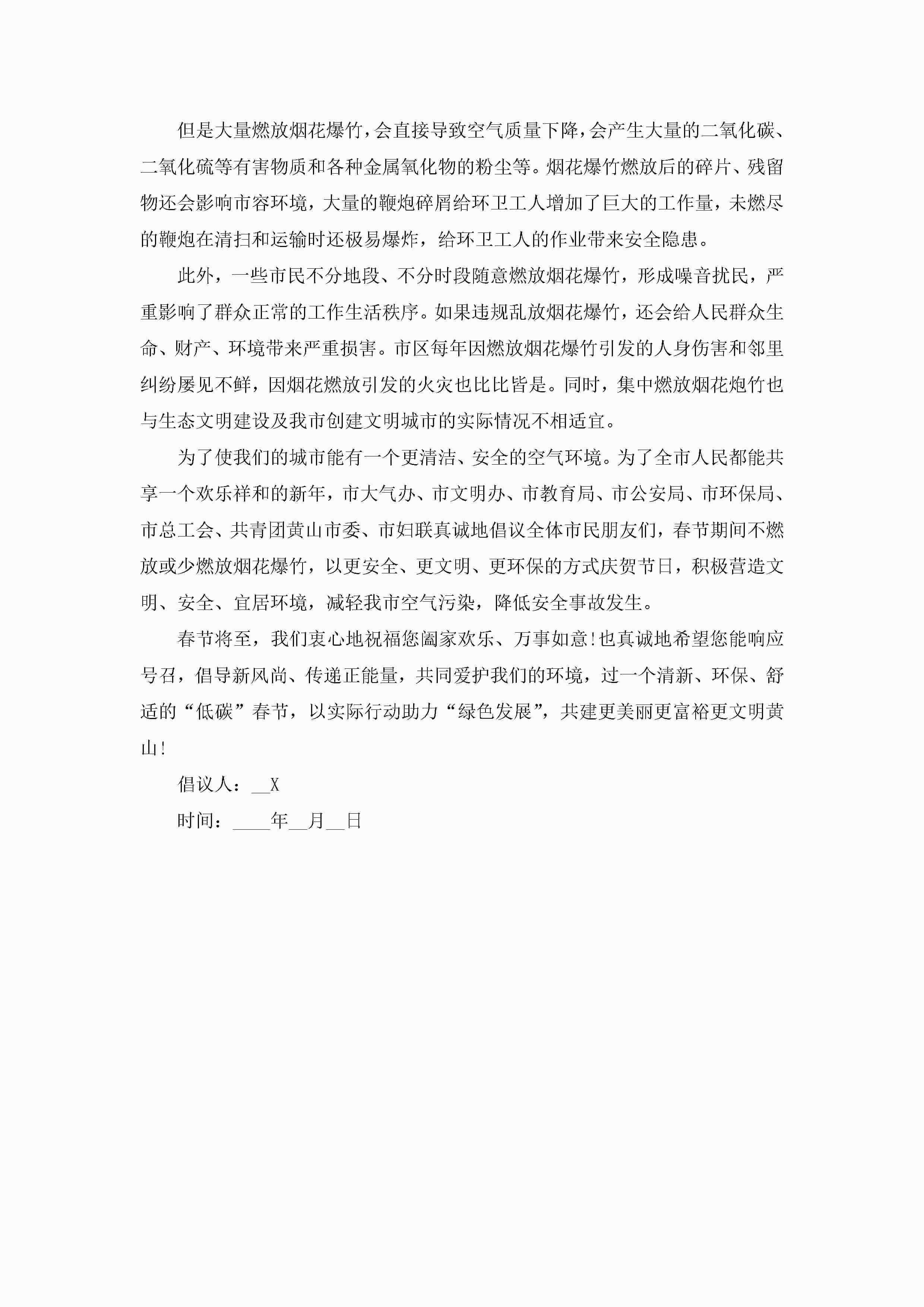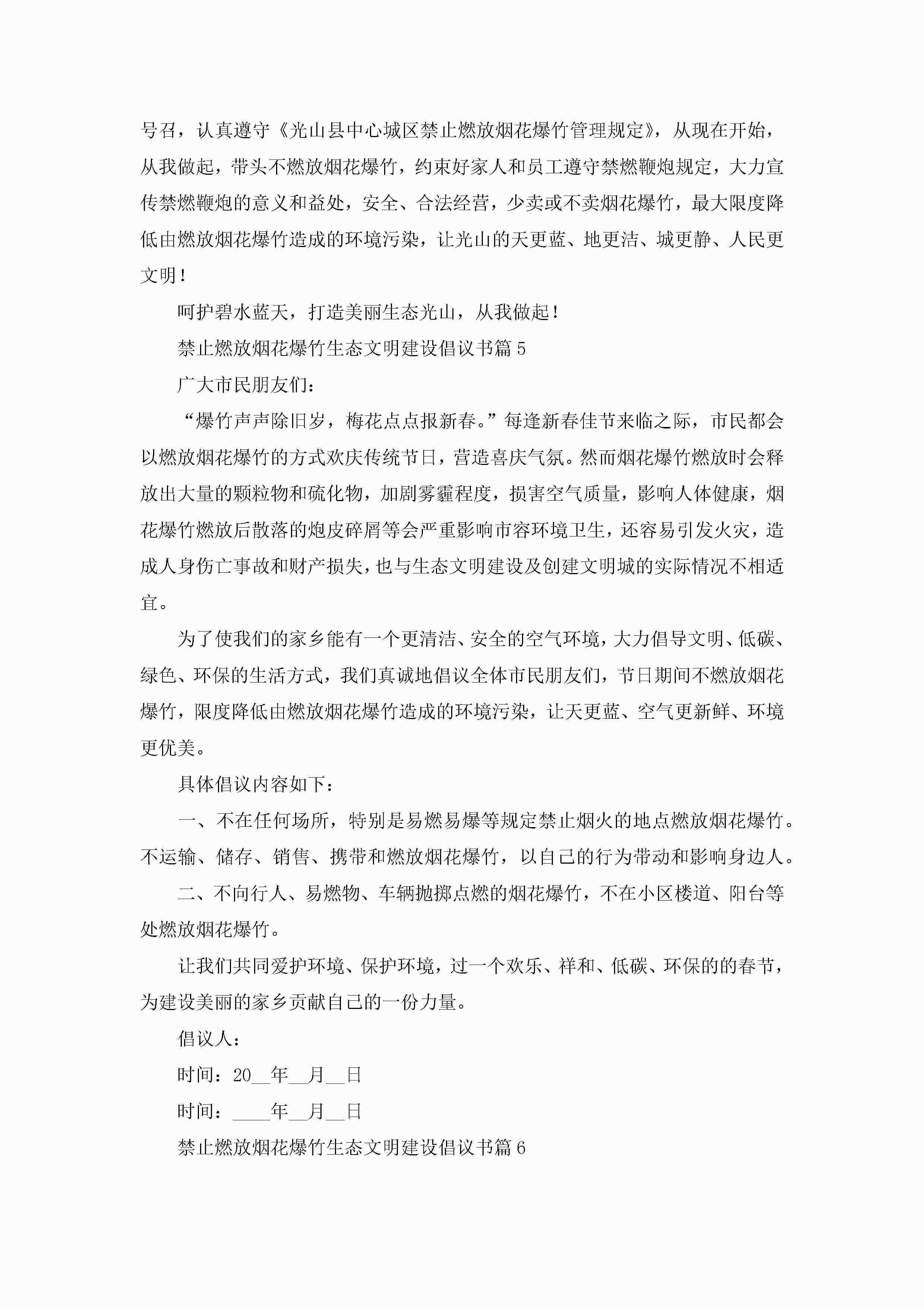 禁止燃放烟花爆竹生态文明建设倡议书(精选7篇)jugei3月22日 16:27发布关注200 禁止燃放烟花爆竹生态文明建设倡议书(精选7篇)此内容为付费资源,请付费后查看¥10.9 单篇文档限时特惠¥15个人会员开通企业会员开通立即下载无需登陆!可直接快捷下载单个模板付费资源© 版权声明THE ENDWord模板# 实用文档# 实用模板# 信函模板# 倡议书 如有问题,可点击最底部“联系我们”联系客服 分享QQ空间微博QQ好友海报分享复制链接收藏
