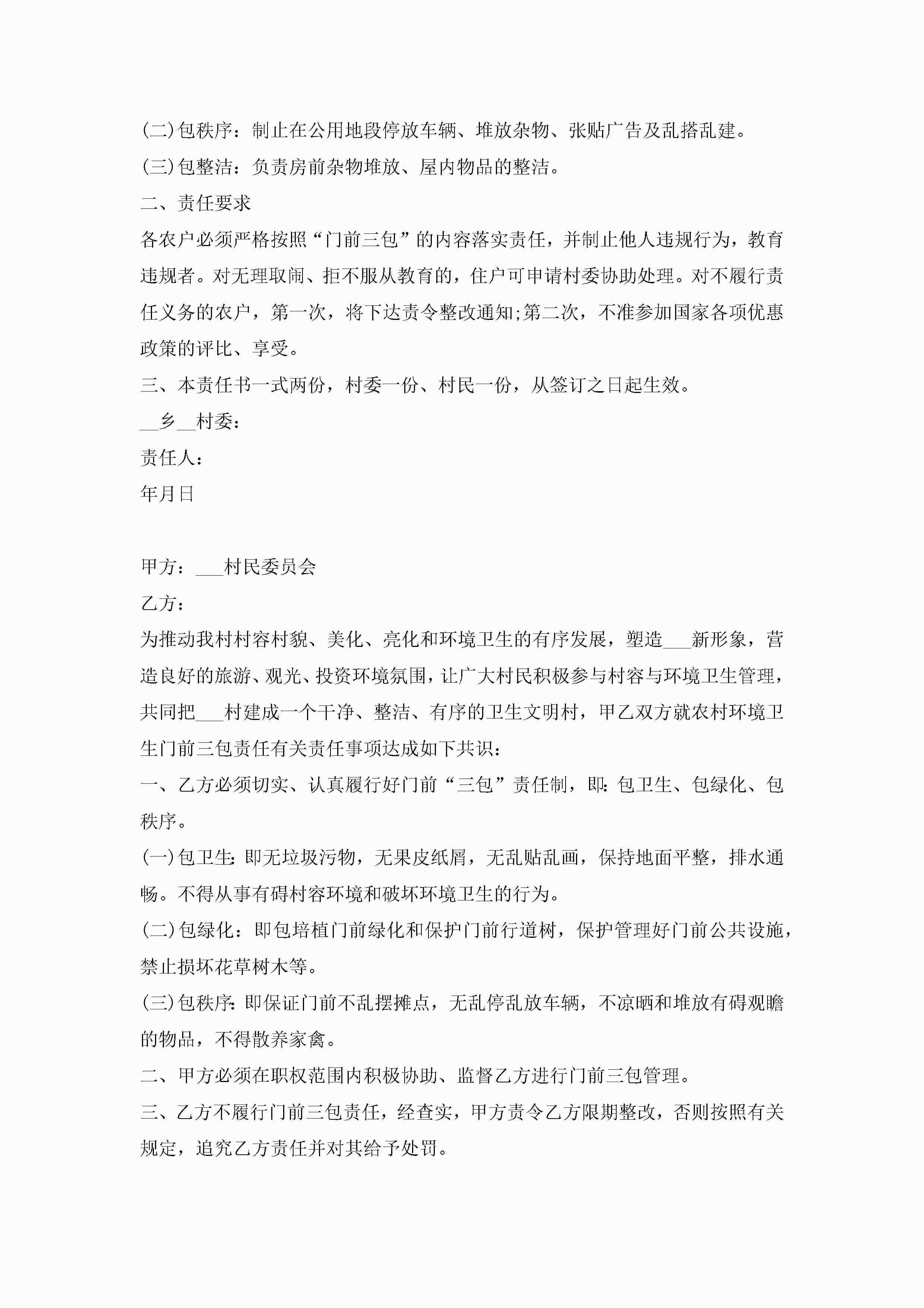 门前三包责任书模板5篇jugei3月22日 16:27发布关注210 门前三包责任书模板5篇此内容为付费资源,请付费后查看¥10.9 单篇文档限时特惠¥15个人会员开通企业会员开通立即下载无需登陆!可直接快捷下载单个模板付费资源© 版权声明THE ENDWord模板# 实用文档# 实用模板# 信函模板# 责任书 如有问题,可点击最底部“联系我们”联系客服 分享QQ空间微博QQ好友海报分享复制链接收藏