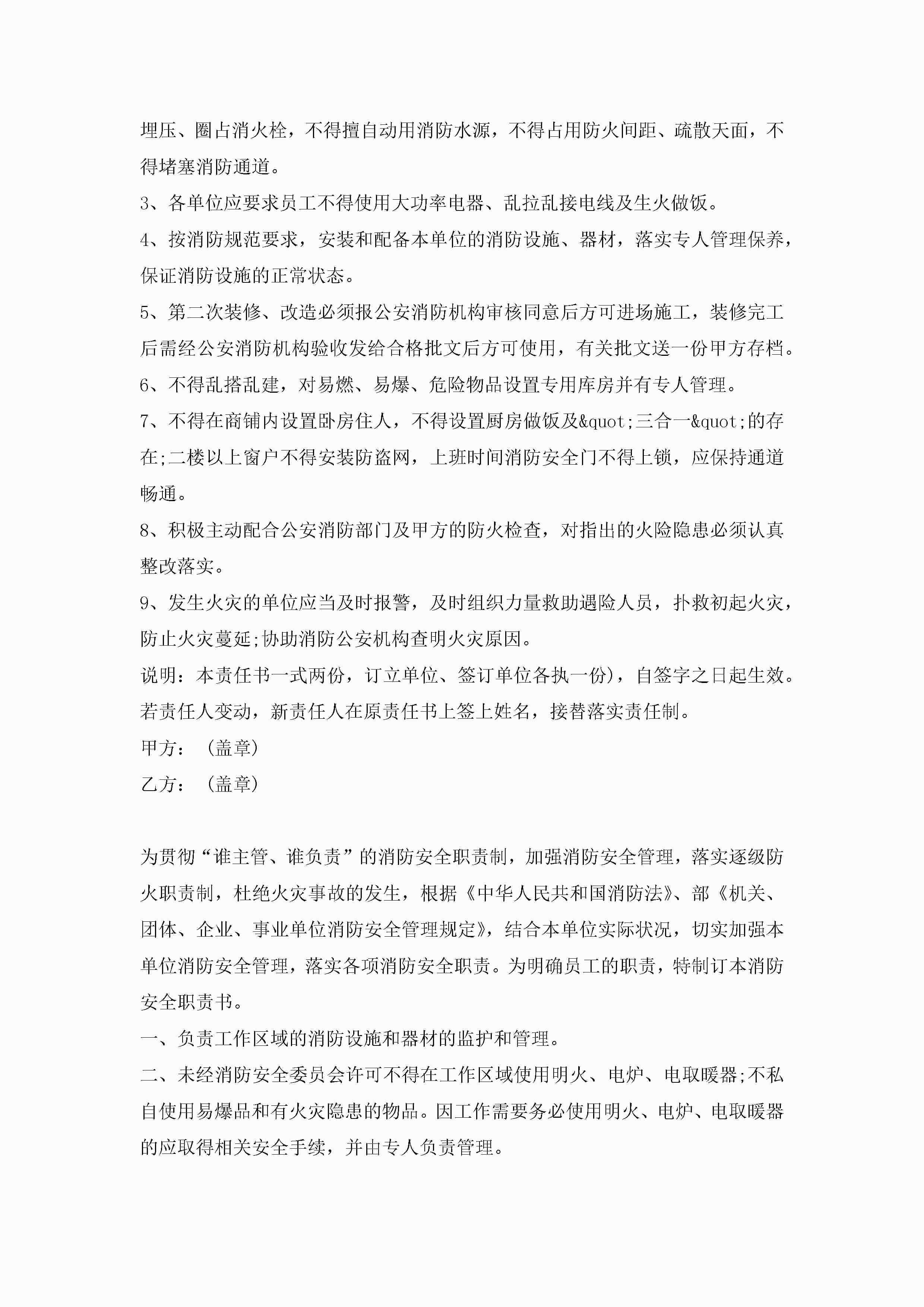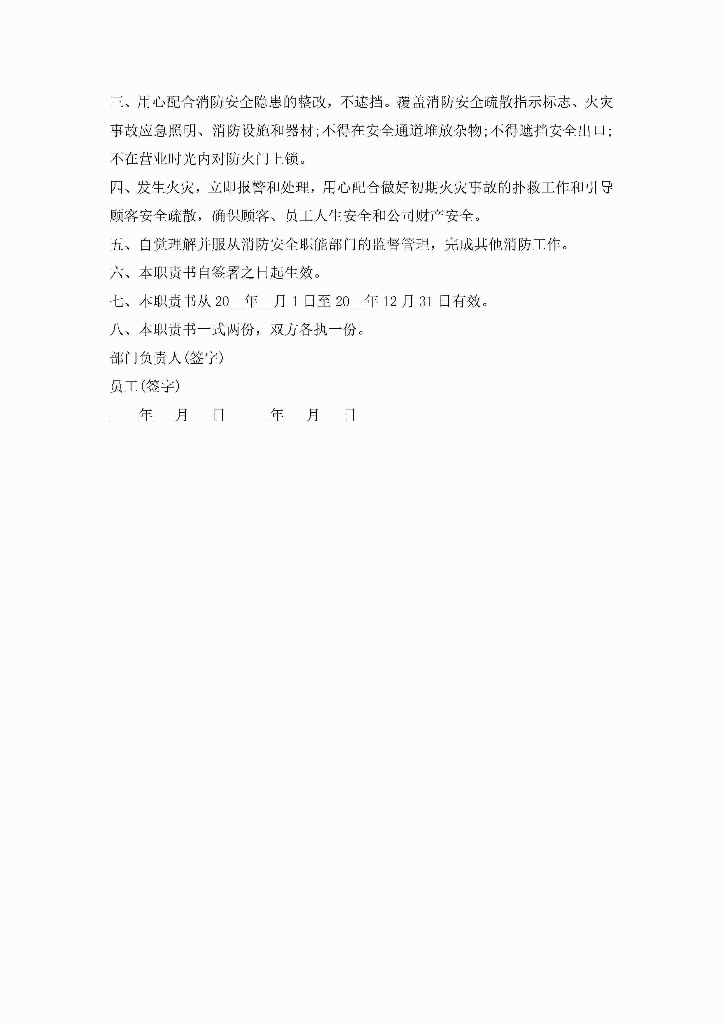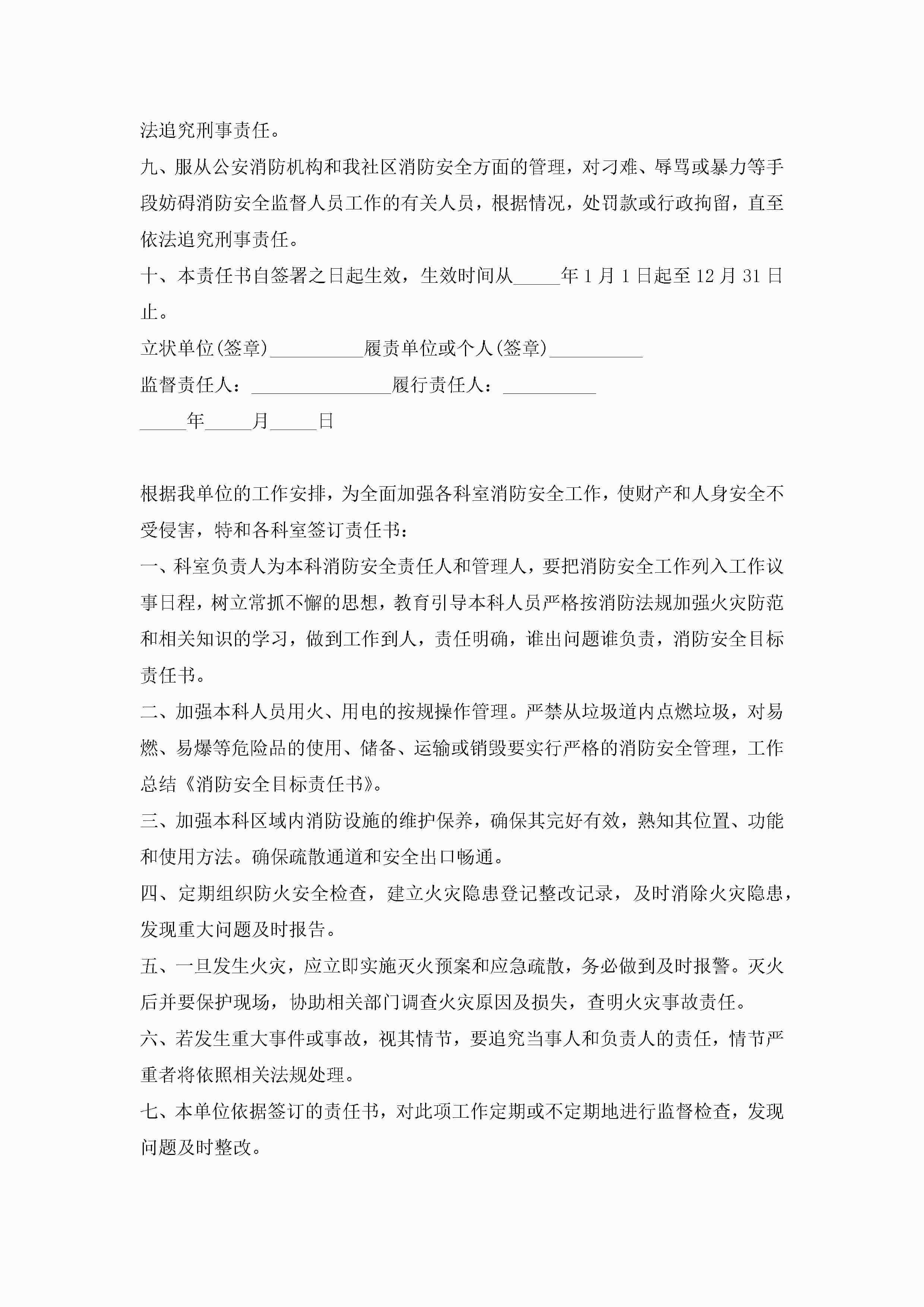关于消防安全责任书7篇jugei3月22日 16:27发布关注234 关于消防安全责任书7篇此内容为付费资源,请付费后查看¥10.9 单篇文档限时特惠¥15个人会员开通企业会员开通立即下载无需登陆!可直接快捷下载单个模板付费资源© 版权声明THE ENDWord模板# 实用文档# 实用模板# 信函模板# 责任书 如有问题,可点击最底部“联系我们”联系客服 分享QQ空间微博QQ好友海报分享复制链接收藏