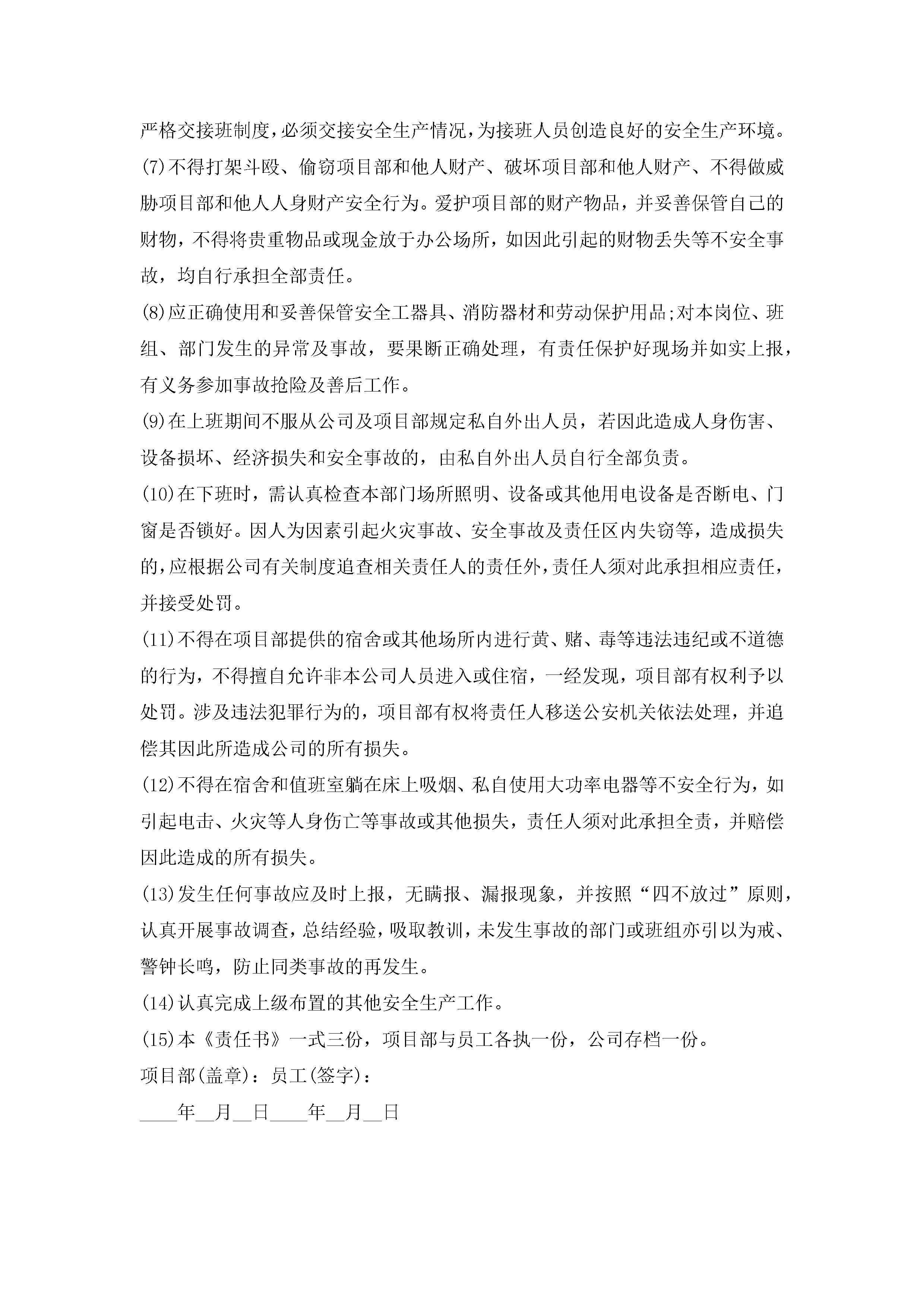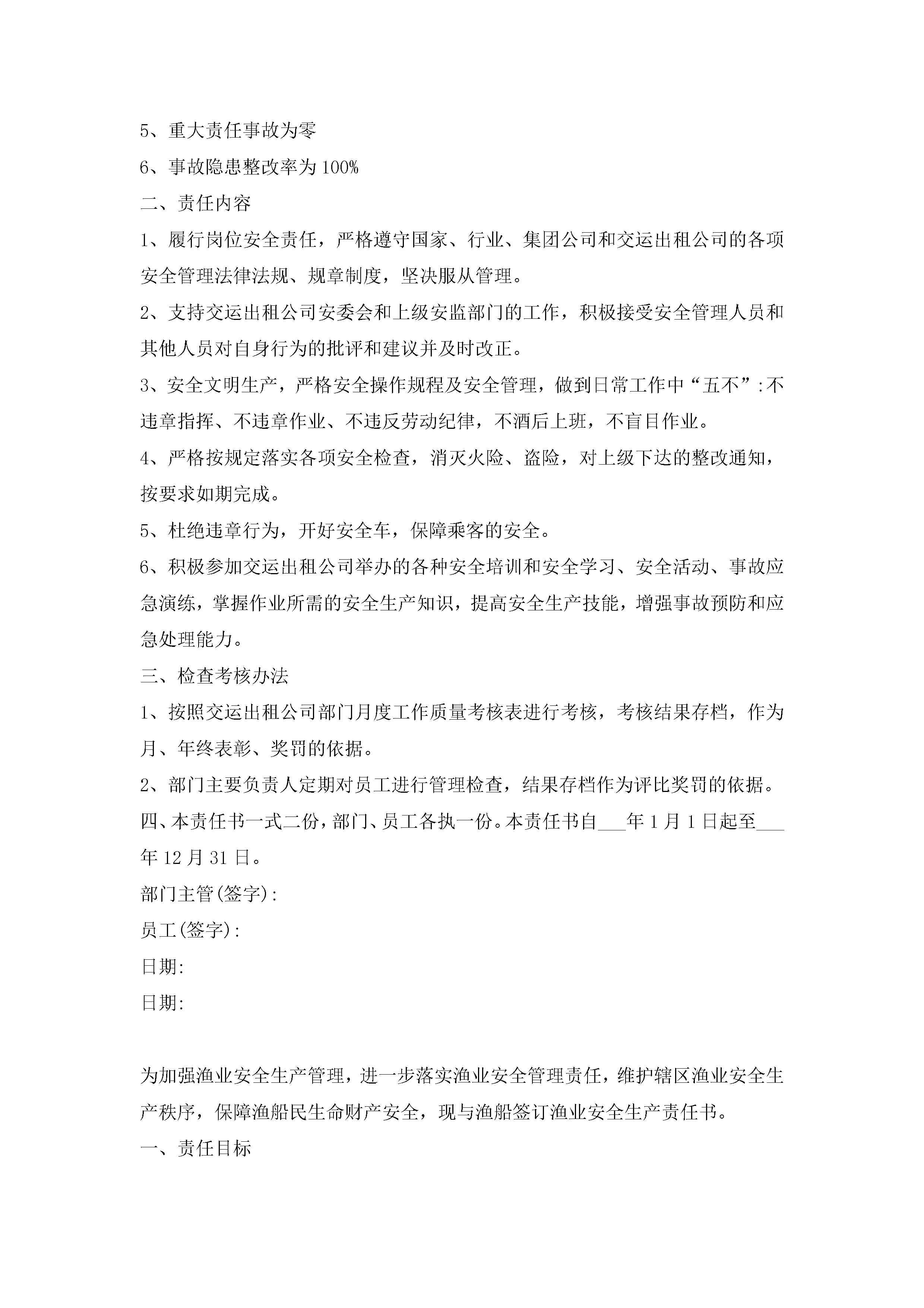 安全生产责任书范文7篇jugei3月22日 16:27发布关注233 安全生产责任书范文7篇此内容为付费资源,请付费后查看¥10.9 单篇文档限时特惠¥15个人会员开通企业会员开通立即下载无需登陆!可直接快捷下载单个模板付费资源© 版权声明THE ENDWord模板# 实用文档# 实用模板# 信函模板# 责任书 如有问题,可点击最底部“联系我们”联系客服 分享QQ空间微博QQ好友海报分享复制链接收藏
