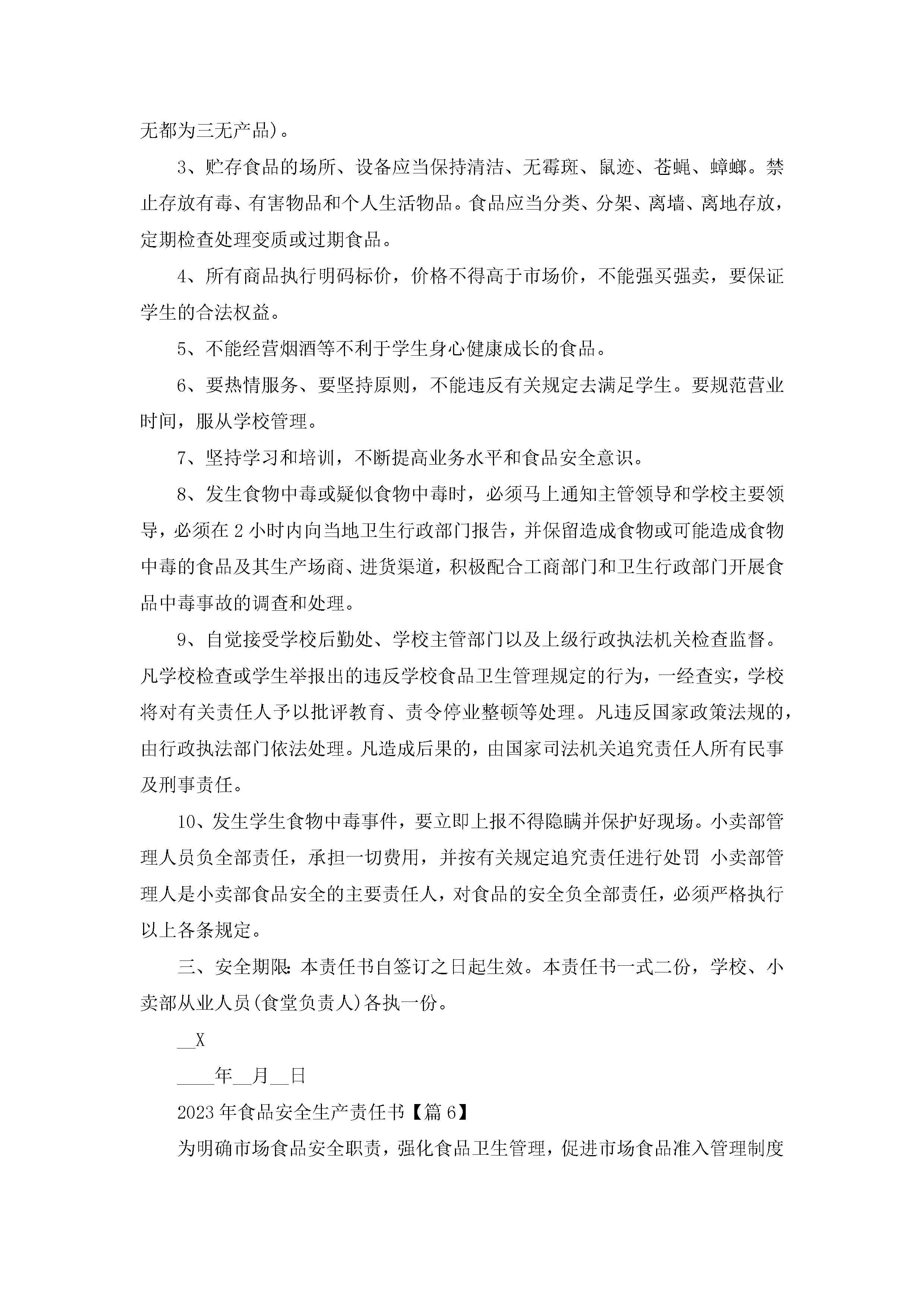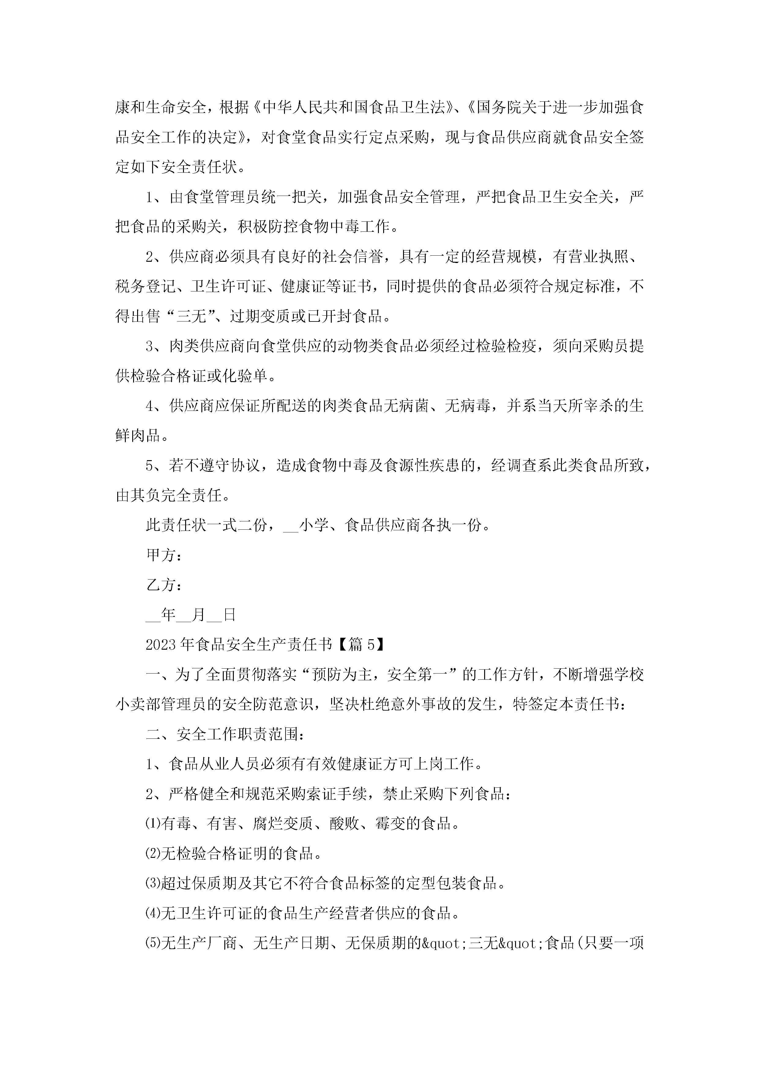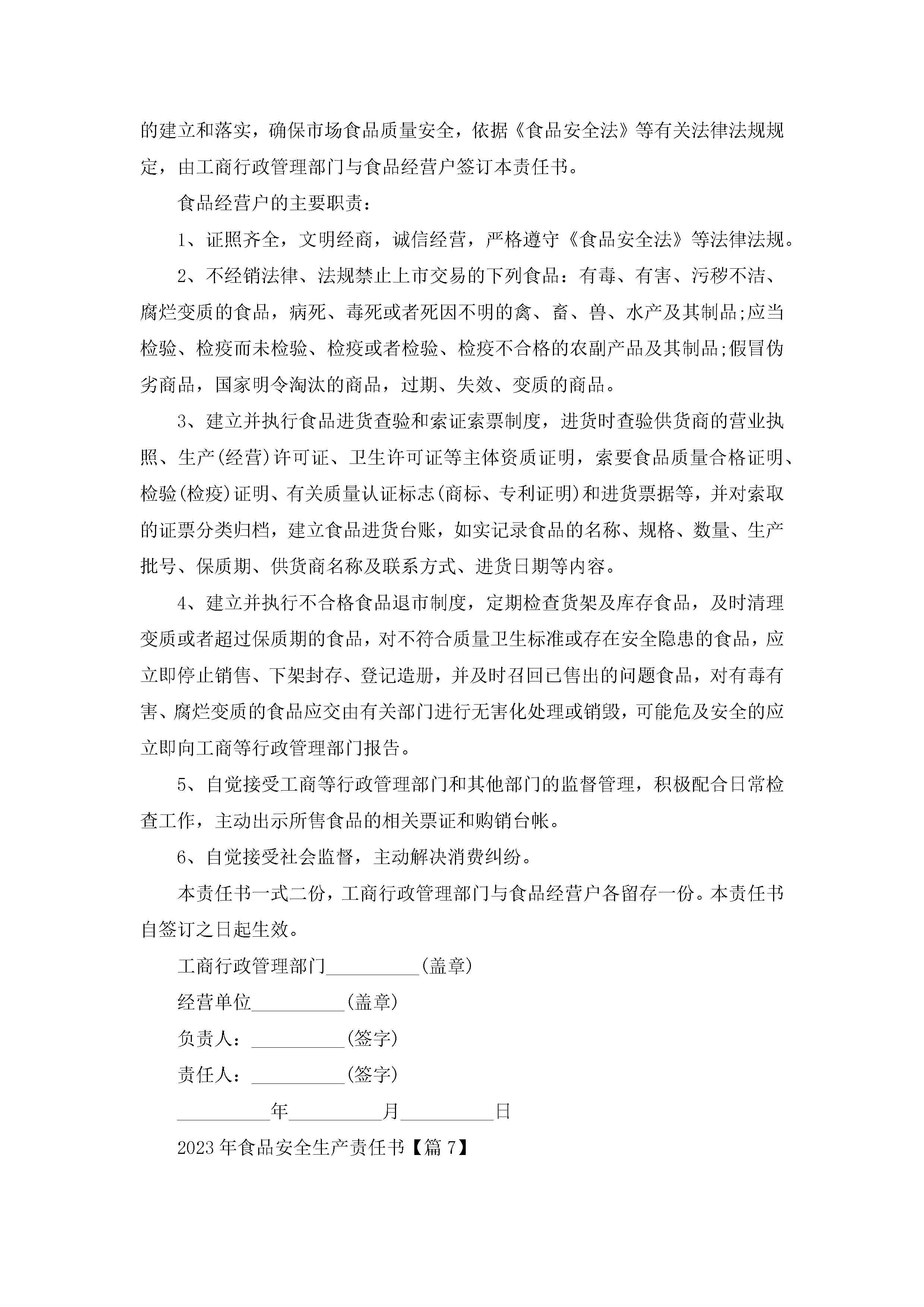 2023年食品安全生产责任书(精选7篇)jugei3月22日 16:28发布关注307 2023年食品安全生产责任书(精选7篇)此内容为付费资源,请付费后查看¥10.9 单篇文档限时特惠¥15个人会员开通企业会员开通立即下载无需登陆!可直接快捷下载单个模板付费资源© 版权声明THE ENDWord模板# 实用文档# 实用模板# 信函模板# 责任书 如有问题,可点击最底部“联系我们”联系客服 分享QQ空间微博QQ好友海报分享复制链接收藏