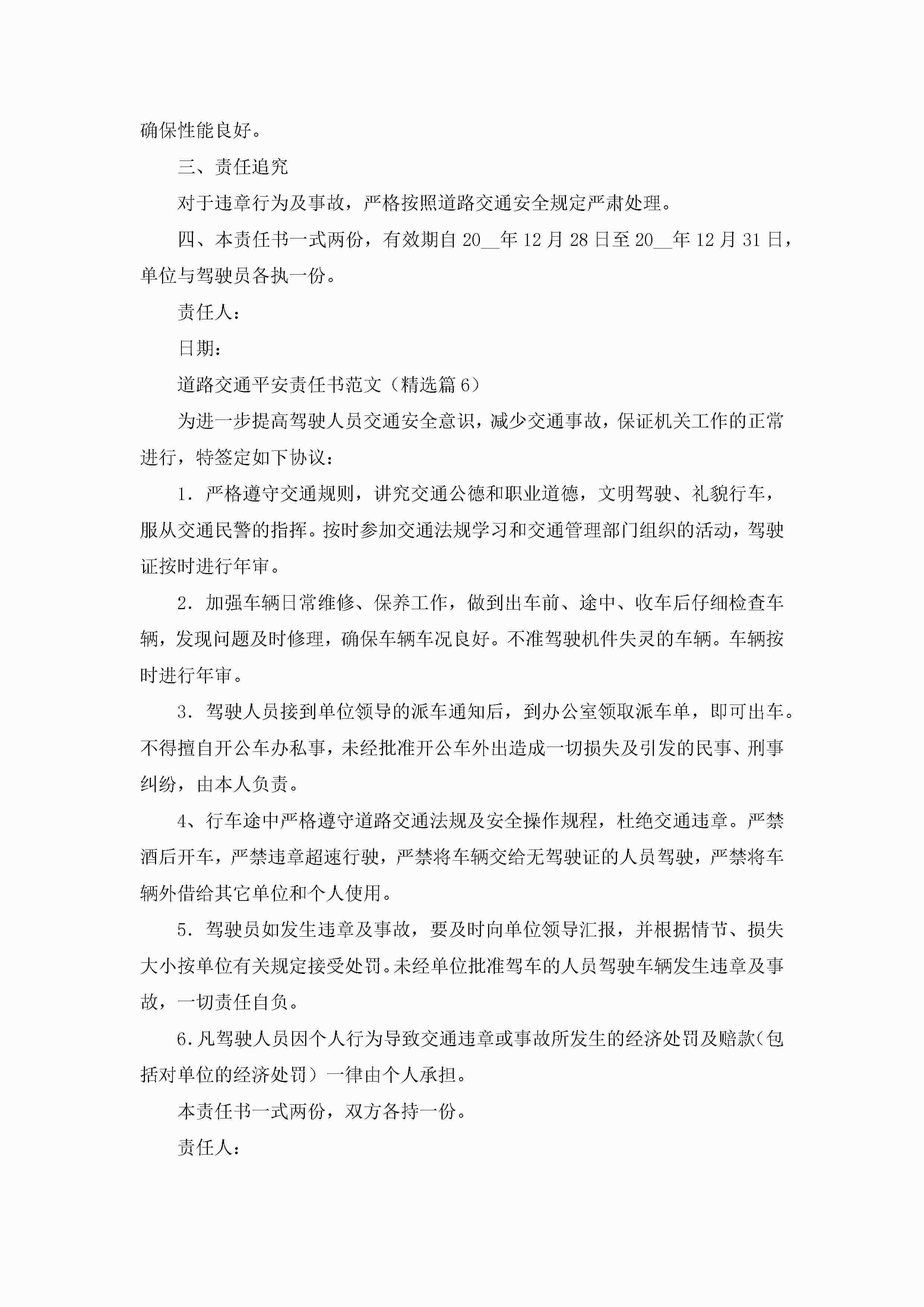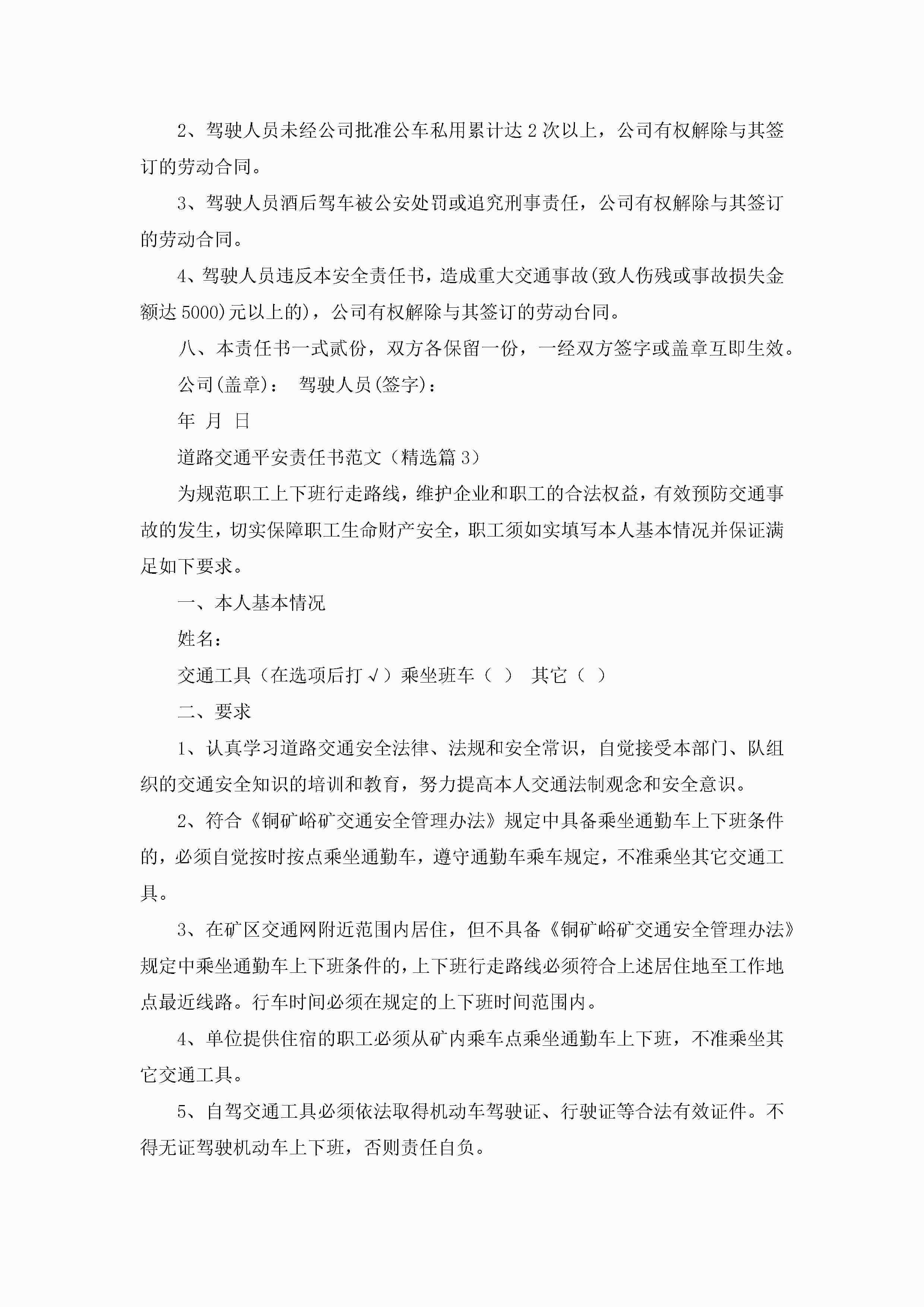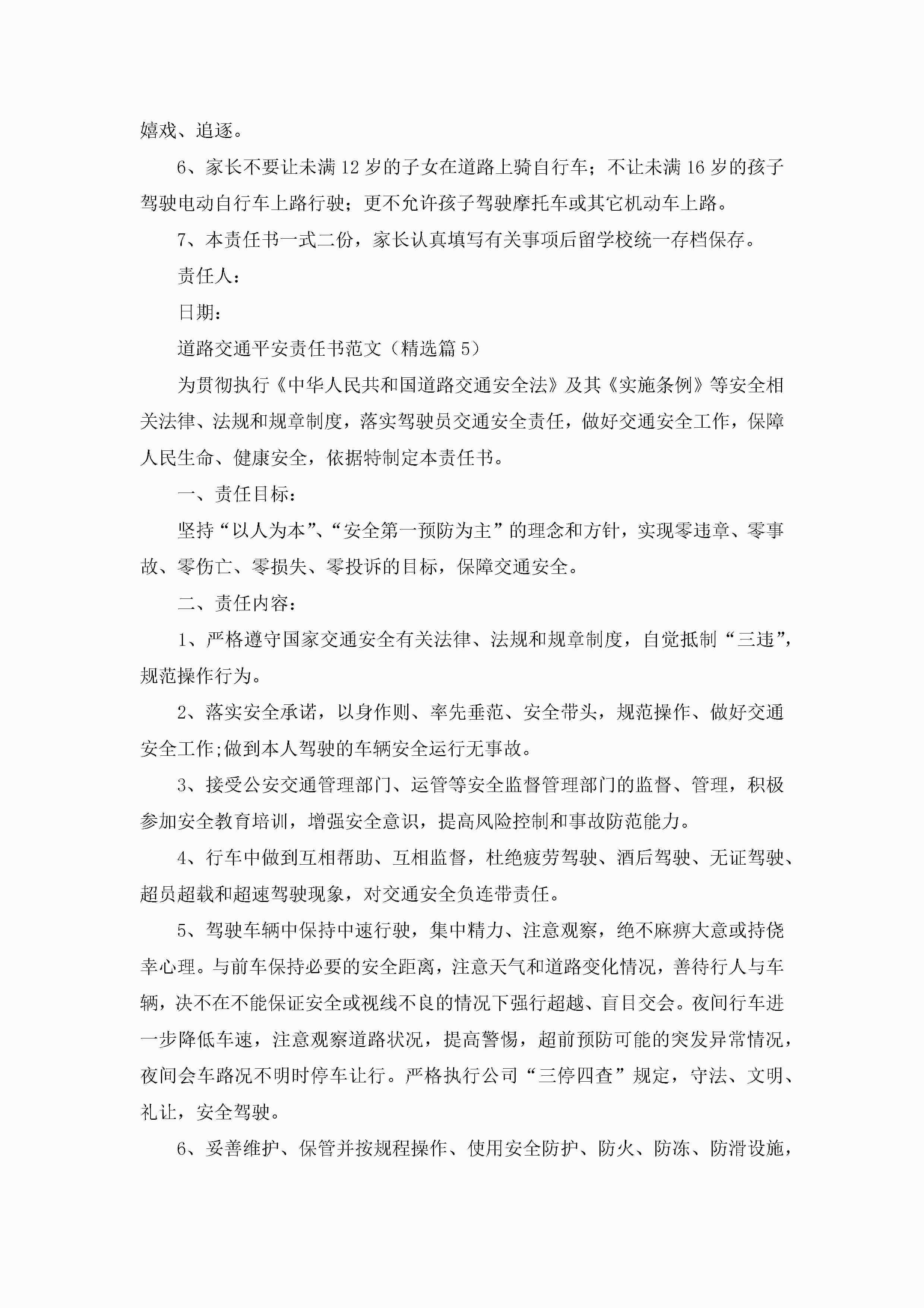 道路交通平安责任书范文(精选8篇)jugei3月22日 16:28发布关注241 道路交通平安责任书范文(精选8篇)此内容为付费资源,请付费后查看¥10.9 单篇文档限时特惠¥15个人会员开通企业会员开通立即下载无需登陆!可直接快捷下载单个模板付费资源© 版权声明THE ENDWord模板# 实用文档# 实用模板# 信函模板# 责任书 如有问题,可点击最底部“联系我们”联系客服 分享QQ空间微博QQ好友海报分享复制链接收藏