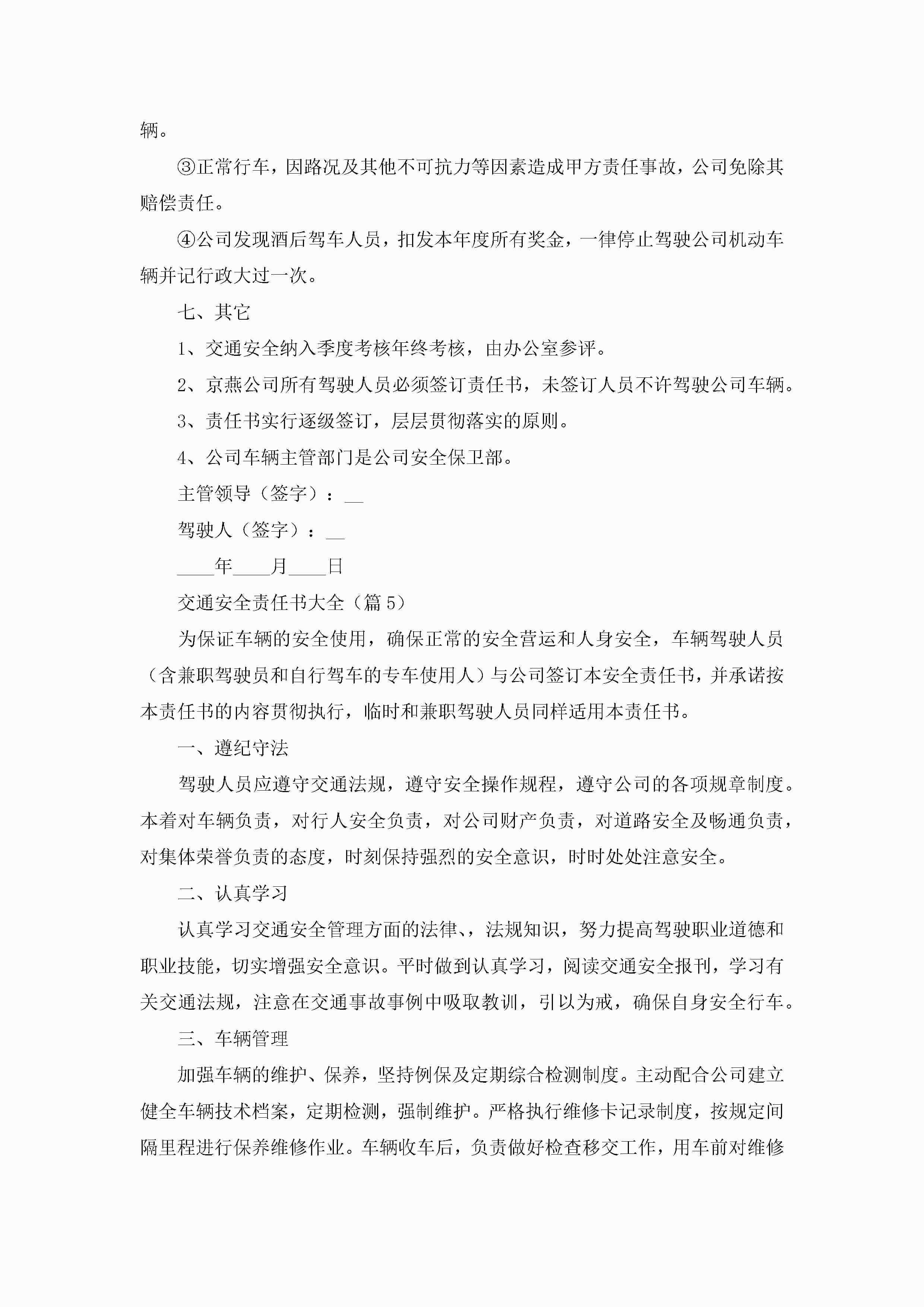 交通安全责任书大全(精选8篇)jugei3月22日 16:28发布关注332 交通安全责任书大全(精选8篇)此内容为付费资源,请付费后查看¥10.9 单篇文档限时特惠¥15个人会员开通企业会员开通立即下载无需登陆!可直接快捷下载单个模板付费资源© 版权声明THE ENDWord模板# 实用文档# 实用模板# 信函模板# 责任书 如有问题,可点击最底部“联系我们”联系客服 分享QQ空间微博QQ好友海报分享复制链接收藏