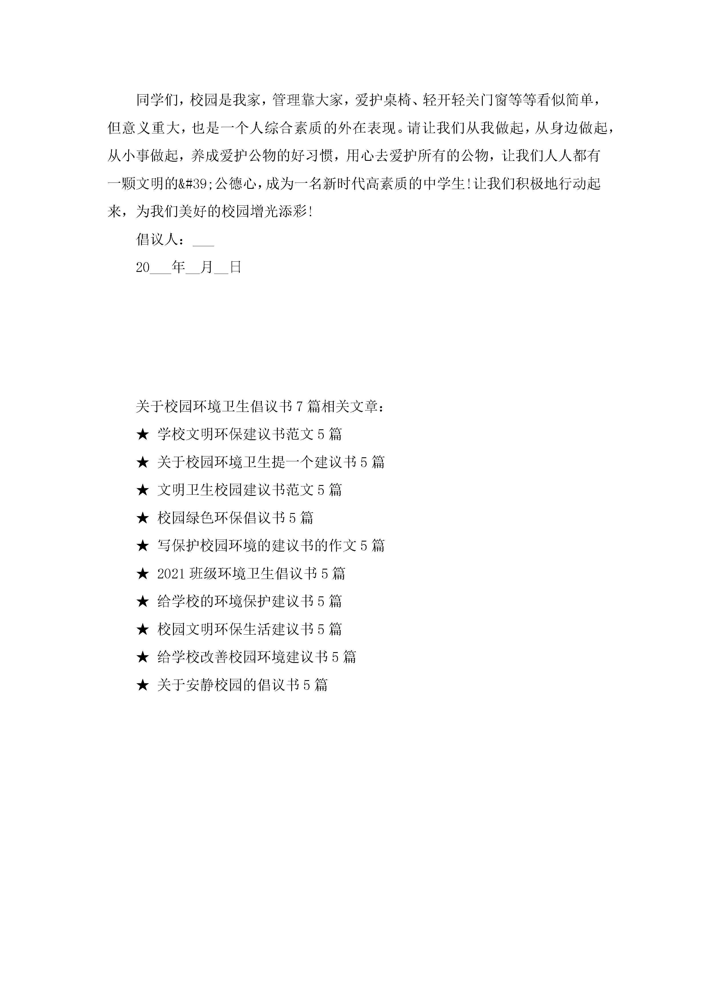 关于校园环境卫生倡议书范文7篇jugei3月22日 16:28发布关注195 关于校园环境卫生倡议书范文7篇此内容为付费资源,请付费后查看¥10.9 单篇文档限时特惠¥15个人会员开通企业会员开通立即下载无需登陆!可直接快捷下载单个模板付费资源© 版权声明THE ENDWord模板# 实用文档# 实用模板# 信函模板# 倡议书 如有问题,可点击最底部“联系我们”联系客服 分享QQ空间微博QQ好友海报分享复制链接收藏