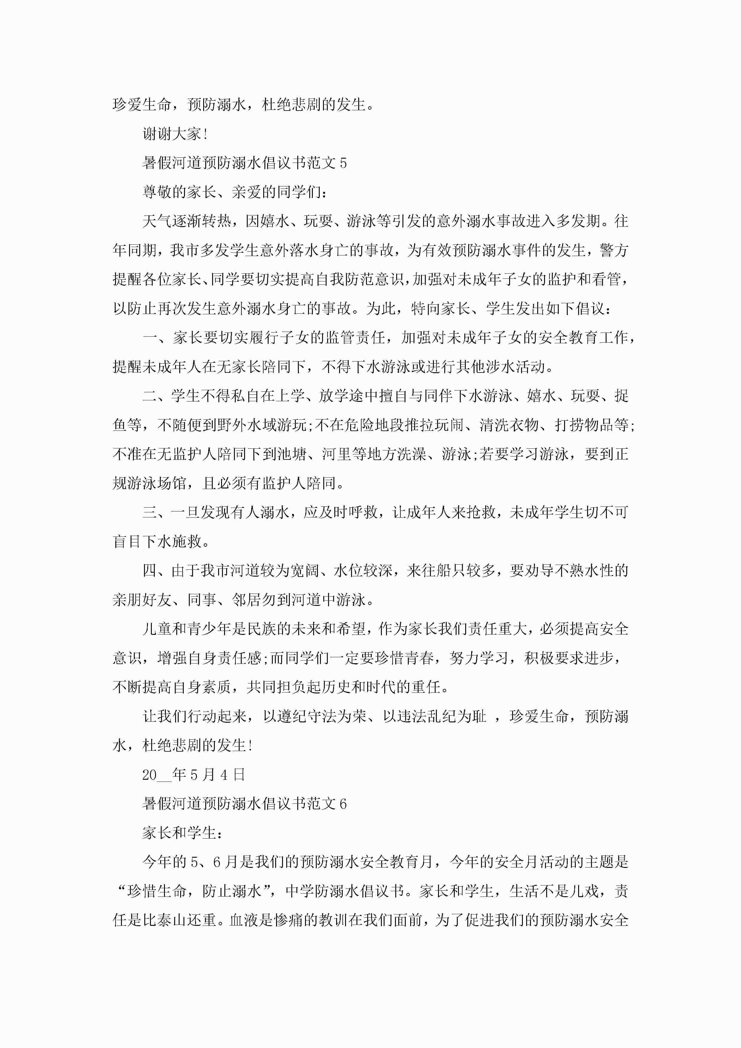 关于暑假河道预防溺水倡议书范文6篇jugei3月22日 16:28发布关注191 关于暑假河道预防溺水倡议书范文6篇此内容为付费资源,请付费后查看¥10.9 单篇文档限时特惠¥15个人会员开通企业会员开通立即下载无需登陆!可直接快捷下载单个模板付费资源© 版权声明THE ENDWord模板# 实用文档# 实用模板# 信函模板# 倡议书 如有问题,可点击最底部“联系我们”联系客服 分享QQ空间微博QQ好友海报分享复制链接收藏