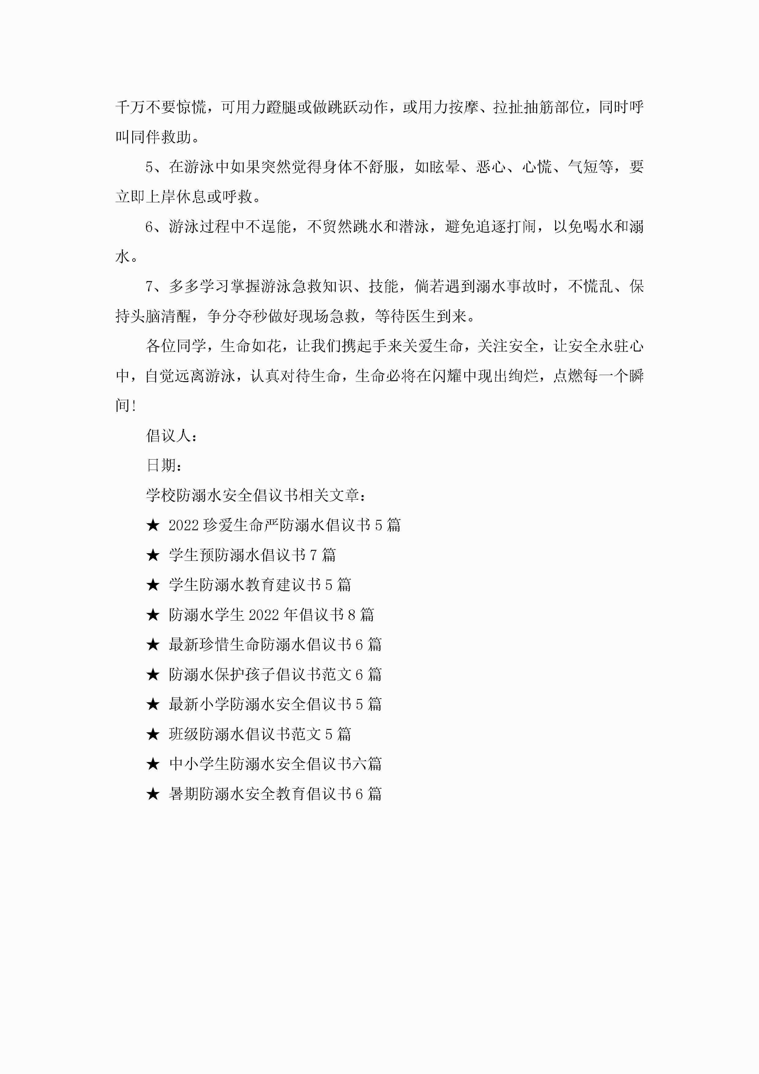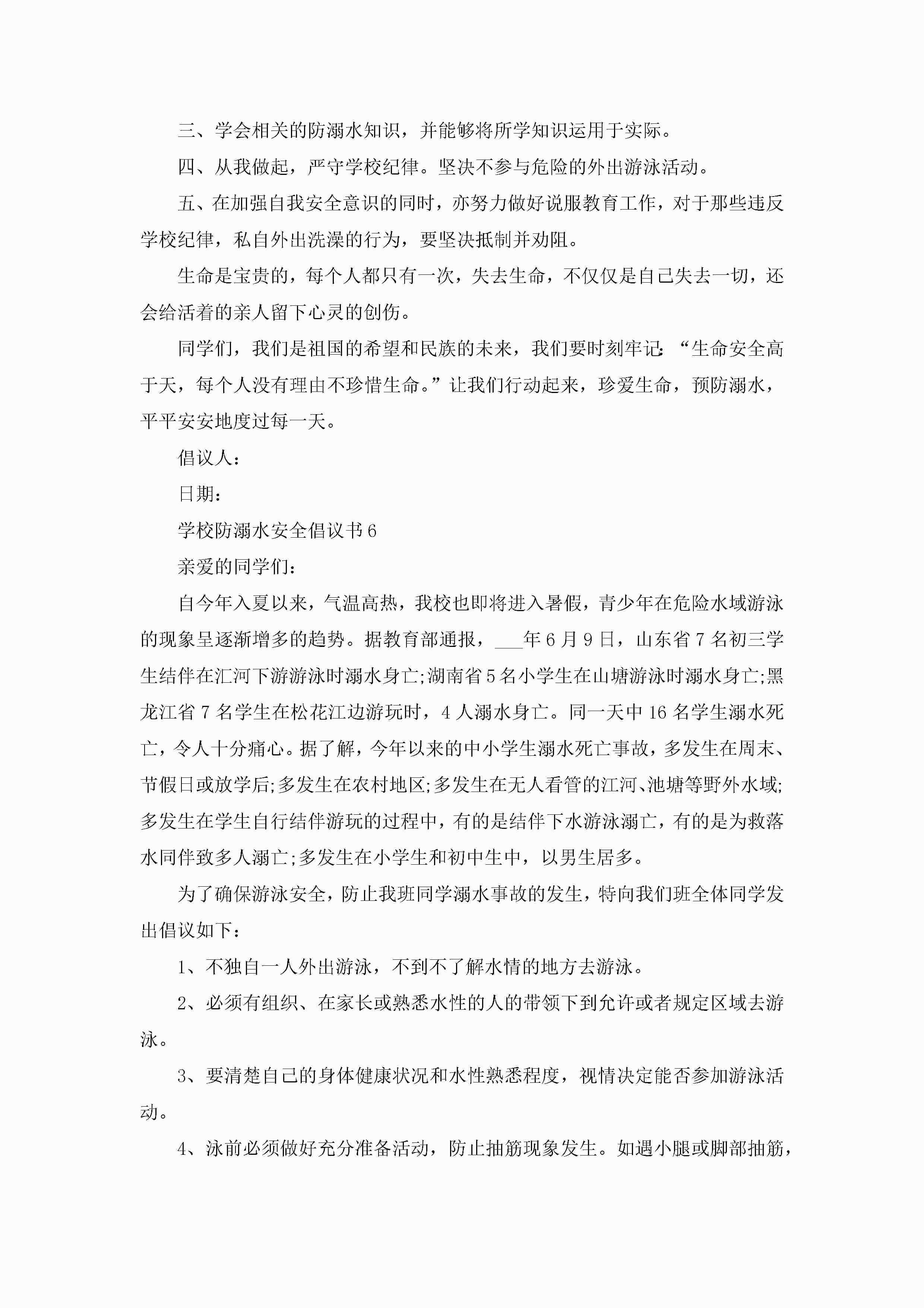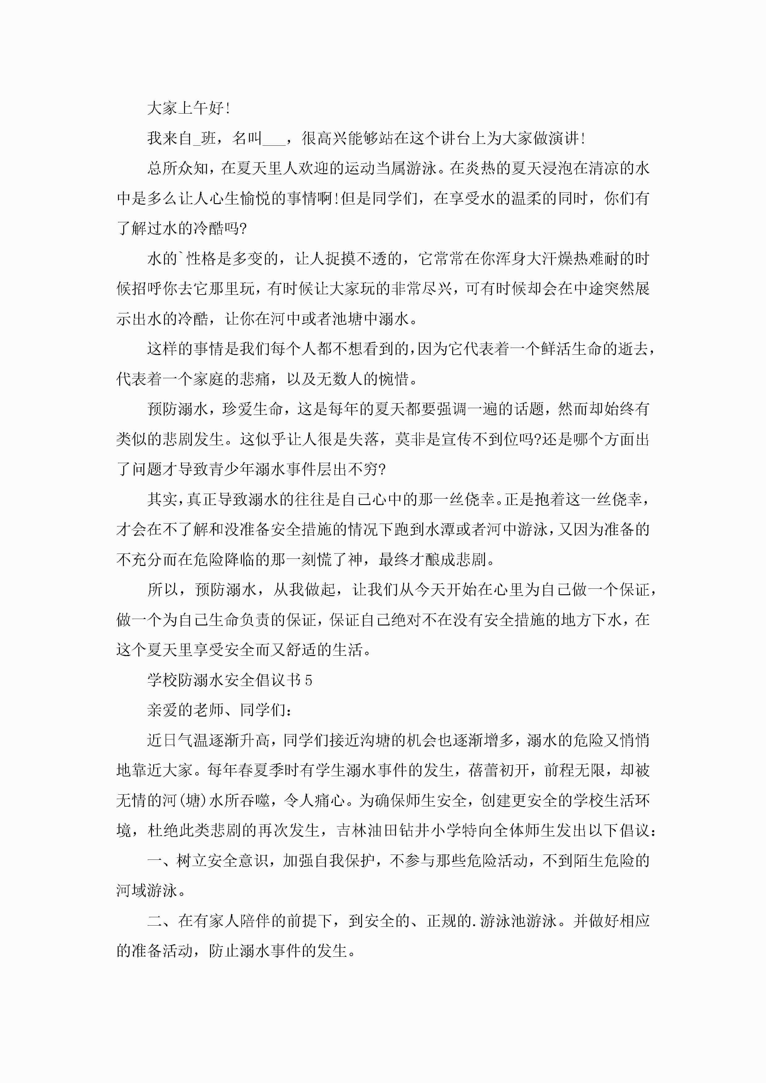 关于学校防溺水安全倡议书6篇jugei3月22日 16:28发布关注188 关于学校防溺水安全倡议书6篇此内容为付费资源,请付费后查看¥10.9 单篇文档限时特惠¥15个人会员开通企业会员开通立即下载无需登陆!可直接快捷下载单个模板付费资源© 版权声明THE ENDWord模板# 实用文档# 实用模板# 信函模板# 倡议书 如有问题,可点击最底部“联系我们”联系客服 分享QQ空间微博QQ好友海报分享复制链接收藏