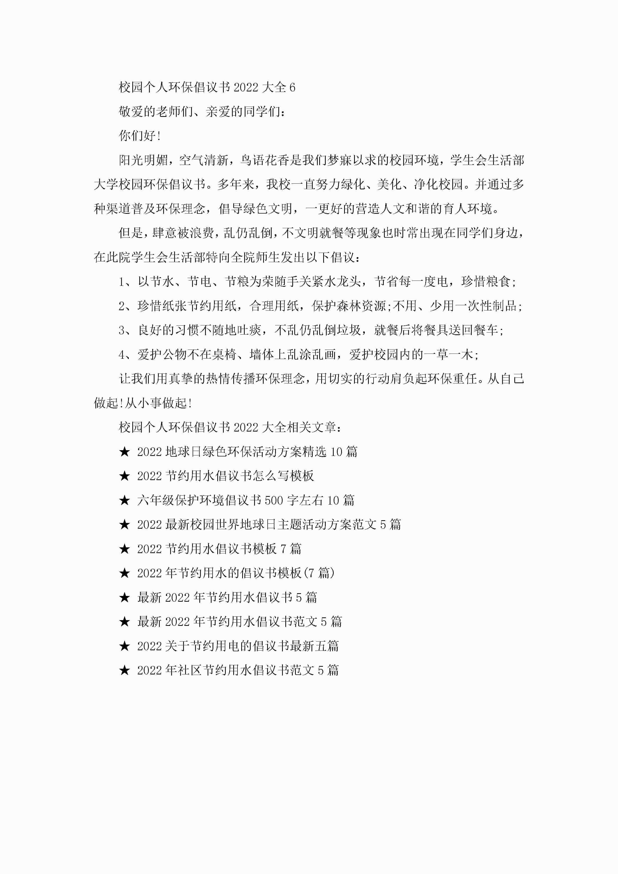 校园个人环保倡议书2022大全6篇jugei3月22日 16:28发布关注190 校园个人环保倡议书2022大全6篇此内容为付费资源,请付费后查看¥10.9 单篇文档限时特惠¥15个人会员开通企业会员开通立即下载无需登陆!可直接快捷下载单个模板付费资源© 版权声明THE ENDWord模板# 实用文档# 实用模板# 信函模板# 倡议书 如有问题,可点击最底部“联系我们”联系客服 分享QQ空间微博QQ好友海报分享复制链接收藏