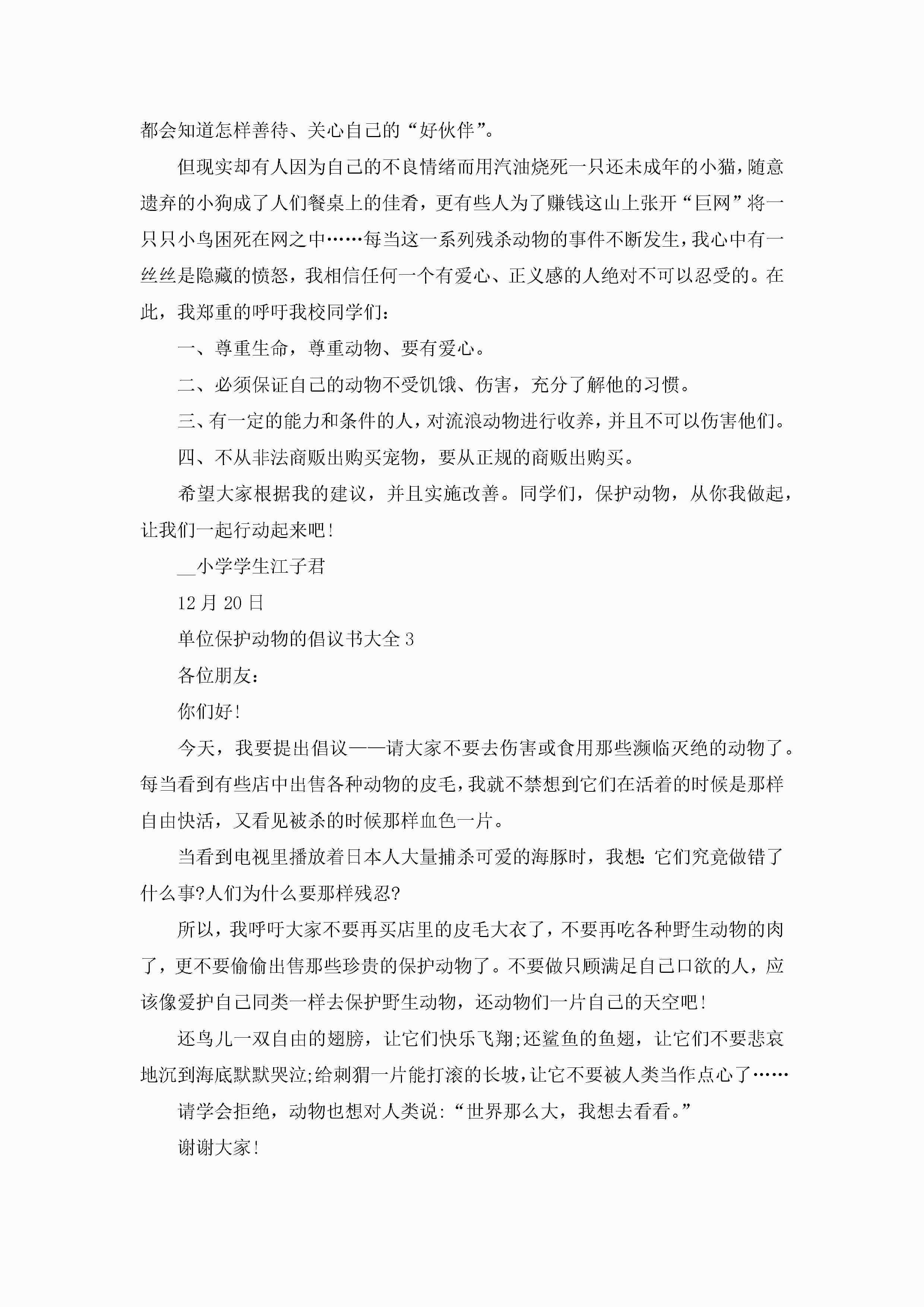 单位保护动物的倡议书大全7篇jugei3月22日 16:28发布关注206 单位保护动物的倡议书大全7篇此内容为付费资源,请付费后查看¥10.9 单篇文档限时特惠¥15个人会员开通企业会员开通立即下载无需登陆!可直接快捷下载单个模板付费资源© 版权声明THE ENDWord模板# 实用文档# 实用模板# 信函模板# 倡议书 如有问题,可点击最底部“联系我们”联系客服 分享QQ空间微博QQ好友海报分享复制链接收藏