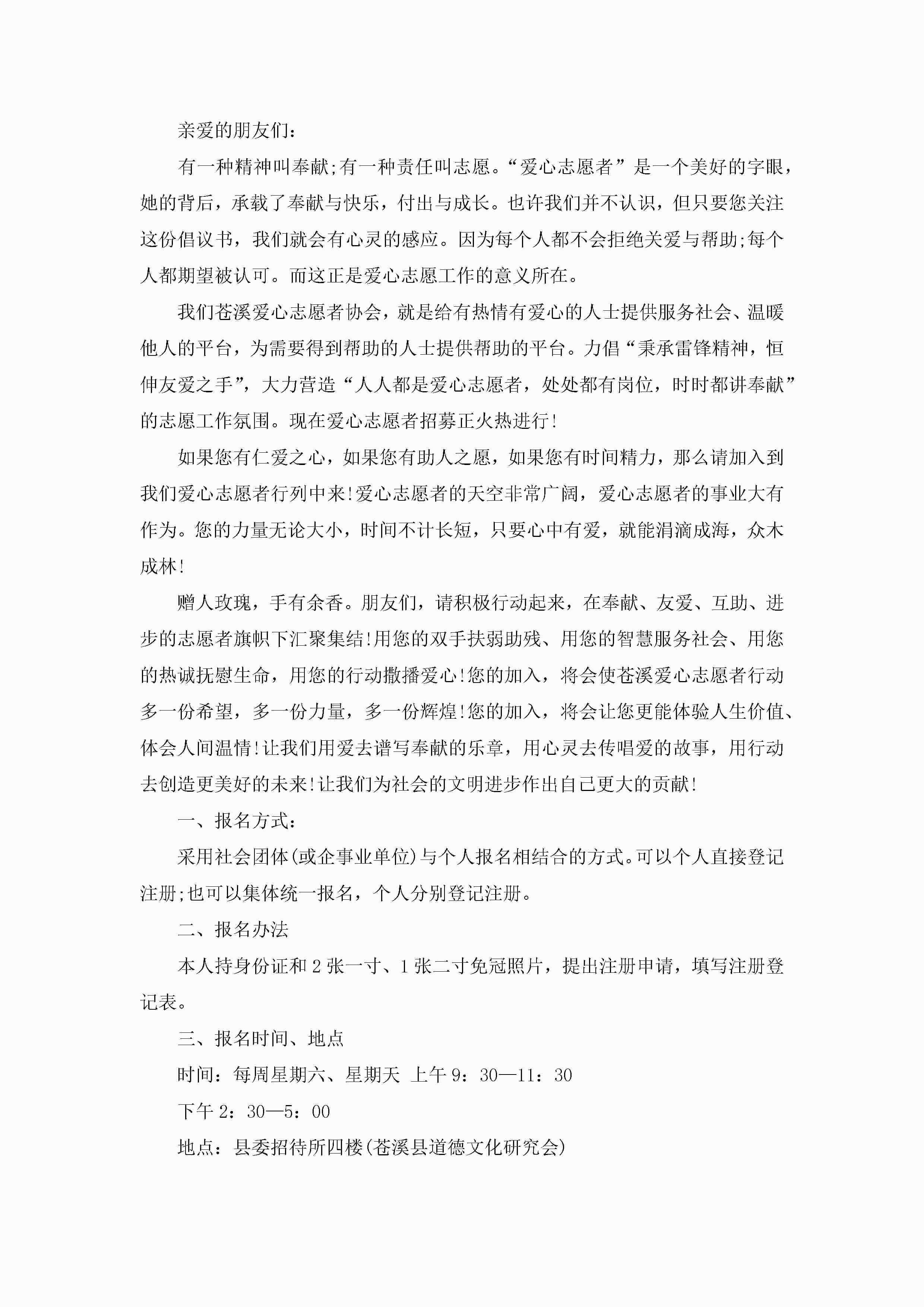 志愿者招募倡议书5篇jugei3月22日 16:28发布关注190 志愿者招募倡议书5篇此内容为付费资源,请付费后查看¥10.9 单篇文档限时特惠¥15个人会员开通企业会员开通立即下载无需登陆!可直接快捷下载单个模板付费资源© 版权声明THE ENDWord模板# 实用文档# 实用模板# 信函模板# 倡议书 如有问题,可点击最底部“联系我们”联系客服 分享QQ空间微博QQ好友海报分享复制链接收藏