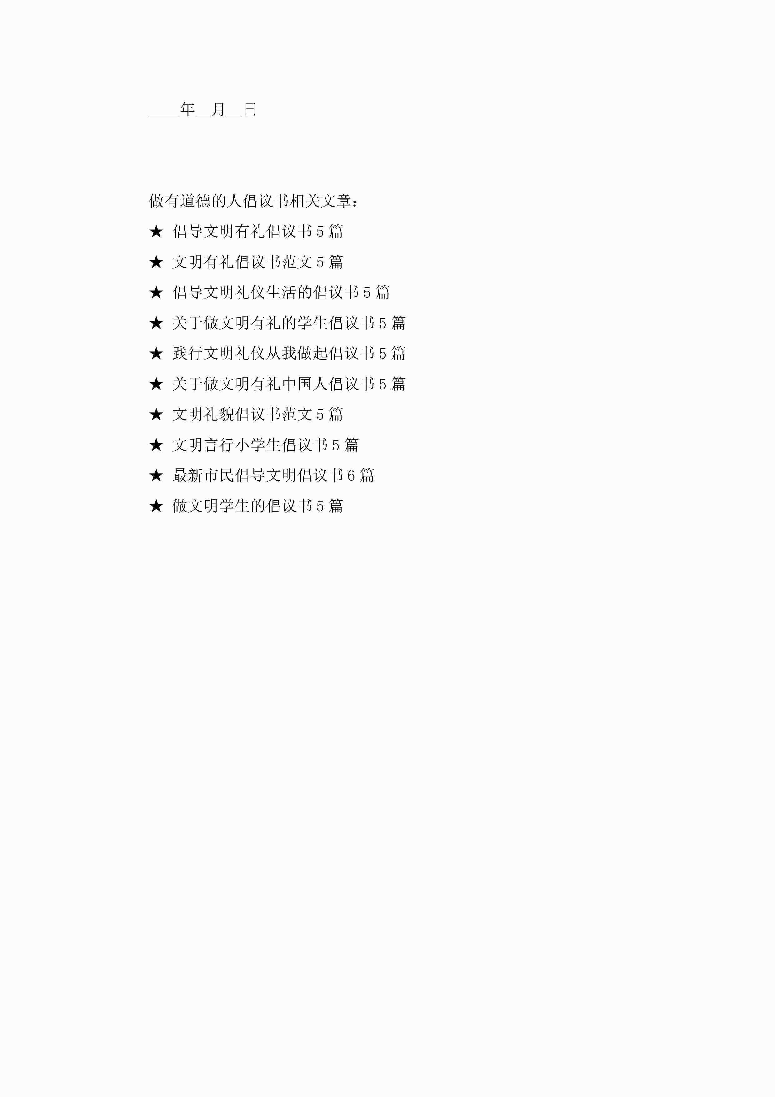 做有道德的人倡议书5篇jugei3月22日 16:28发布关注192 做有道德的人倡议书5篇此内容为付费资源,请付费后查看¥10.9 单篇文档限时特惠¥15个人会员开通企业会员开通立即下载无需登陆!可直接快捷下载单个模板付费资源© 版权声明THE ENDWord模板# 实用文档# 实用模板# 信函模板# 倡议书 如有问题,可点击最底部“联系我们”联系客服 分享QQ空间微博QQ好友海报分享复制链接收藏