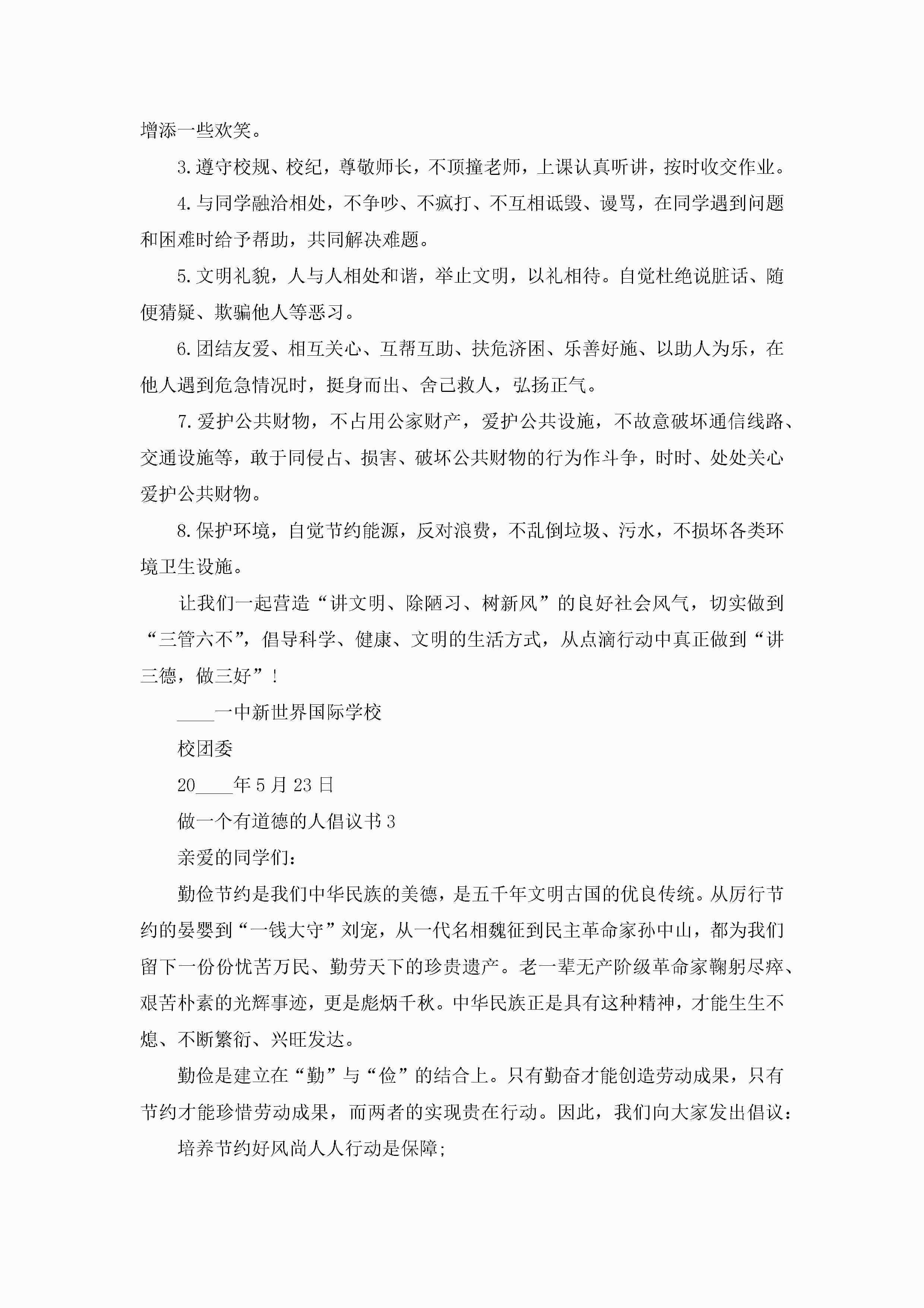 做一个有道德的人倡议书5篇jugei3月22日 16:28发布关注192 做一个有道德的人倡议书5篇此内容为付费资源,请付费后查看¥10.9 单篇文档限时特惠¥15个人会员开通企业会员开通立即下载无需登陆!可直接快捷下载单个模板付费资源© 版权声明THE ENDWord模板# 实用文档# 实用模板# 信函模板# 倡议书 如有问题,可点击最底部“联系我们”联系客服 分享QQ空间微博QQ好友海报分享复制链接收藏