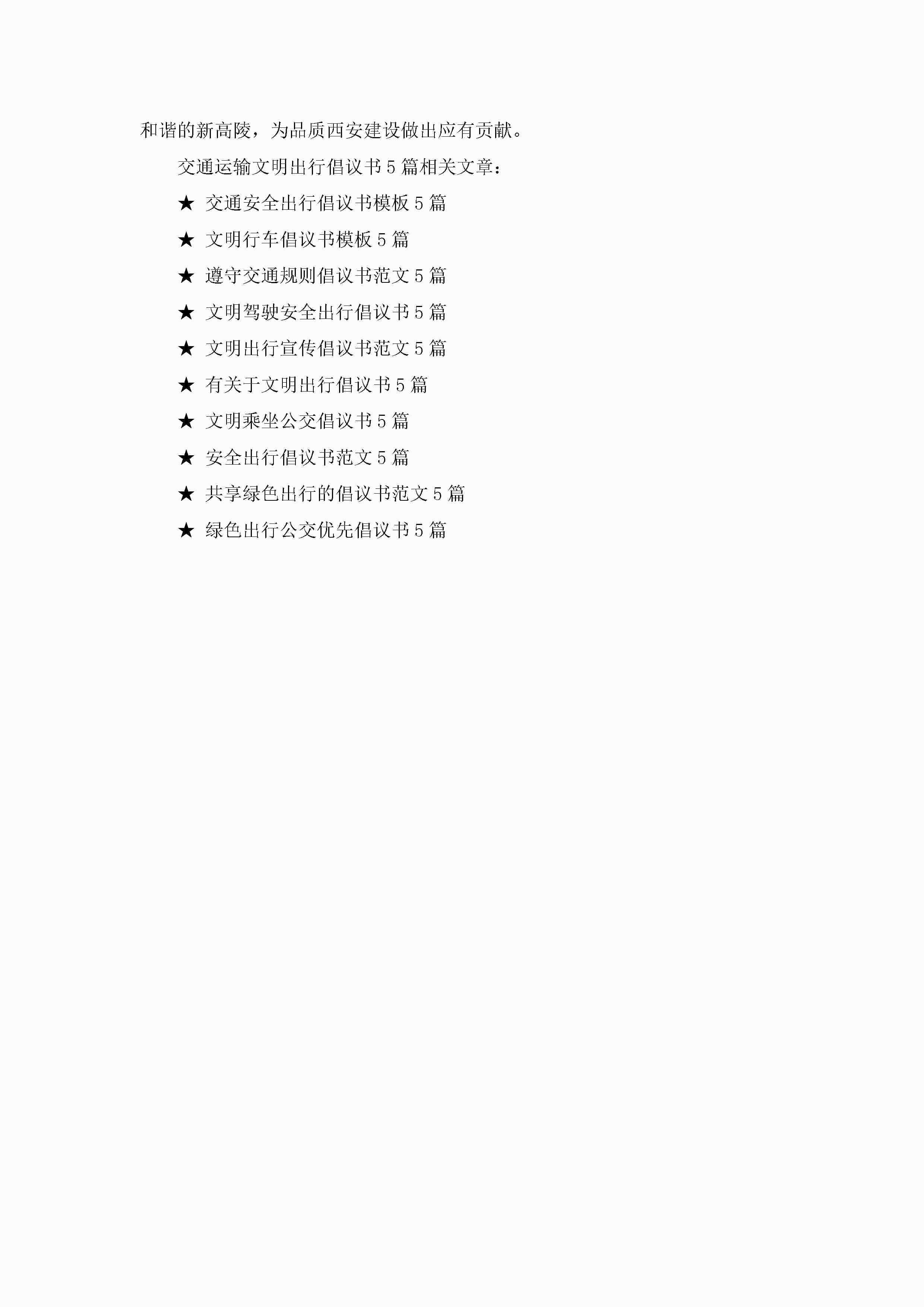 关于交通运输文明出行倡议书5篇jugei3月22日 16:28发布关注294 关于交通运输文明出行倡议书5篇此内容为付费资源,请付费后查看¥10.9 单篇文档限时特惠¥15个人会员开通企业会员开通立即下载无需登陆!可直接快捷下载单个模板付费资源© 版权声明THE ENDWord模板# 实用文档# 实用模板# 信函模板# 倡议书 如有问题,可点击最底部“联系我们”联系客服 分享QQ空间微博QQ好友海报分享复制链接收藏