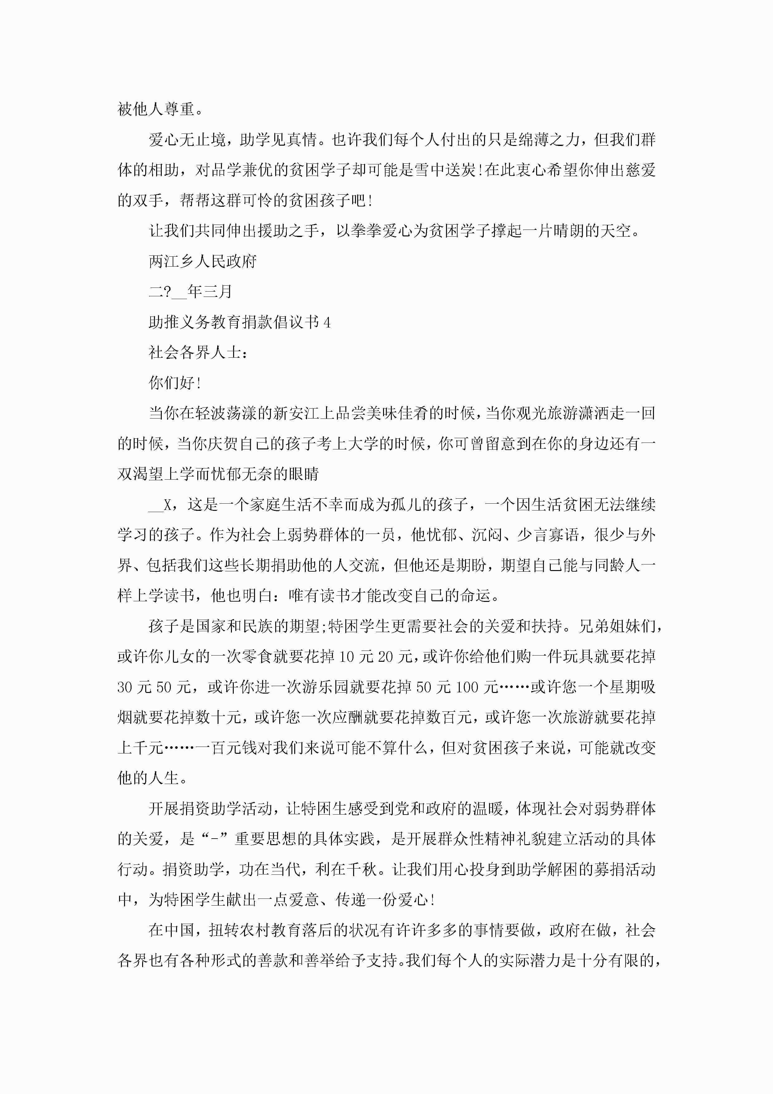 助推义务教育捐款倡议书5篇jugei3月22日 16:28发布关注418 助推义务教育捐款倡议书5篇此内容为付费资源,请付费后查看¥10.9 单篇文档限时特惠¥15个人会员开通企业会员开通立即下载无需登陆!可直接快捷下载单个模板付费资源© 版权声明THE ENDWord模板# 实用文档# 实用模板# 信函模板# 倡议书 如有问题,可点击最底部“联系我们”联系客服 分享QQ空间微博QQ好友海报分享复制链接收藏