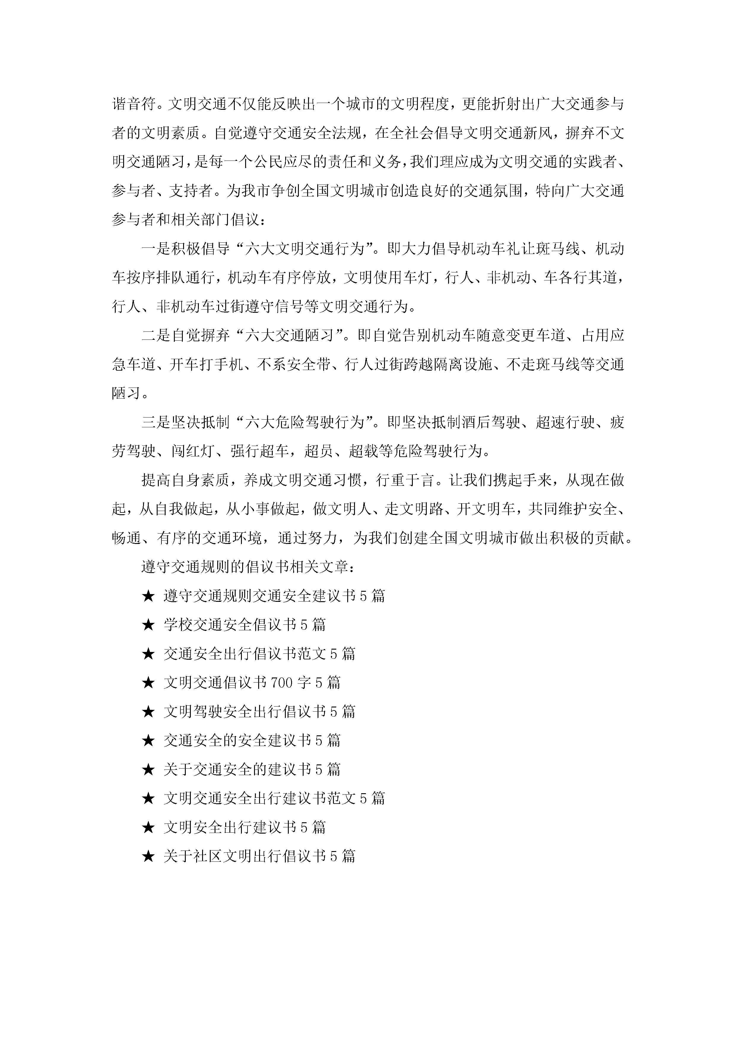 遵守交通规则的倡议书5篇jugei3月22日 16:28发布关注328 遵守交通规则的倡议书5篇此内容为付费资源,请付费后查看¥10.9 单篇文档限时特惠¥15个人会员开通企业会员开通立即下载无需登陆!可直接快捷下载单个模板付费资源© 版权声明THE ENDWord模板# 实用文档# 实用模板# 信函模板# 倡议书 如有问题,可点击最底部“联系我们”联系客服 分享QQ空间微博QQ好友海报分享复制链接收藏