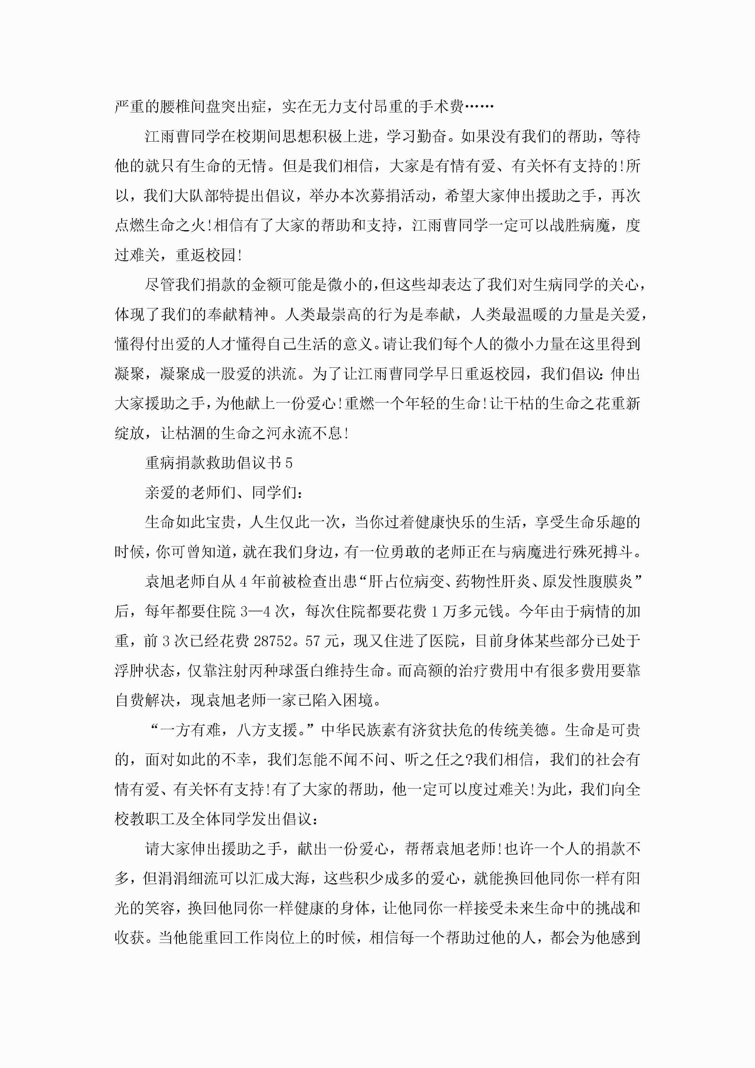重病捐款救助倡议书5篇jugei3月22日 16:28发布关注371 重病捐款救助倡议书5篇此内容为付费资源,请付费后查看¥10.9 单篇文档限时特惠¥15个人会员开通企业会员开通立即下载无需登陆!可直接快捷下载单个模板付费资源© 版权声明THE ENDWord模板# 实用文档# 实用模板# 信函模板# 倡议书 如有问题,可点击最底部“联系我们”联系客服 分享QQ空间微博QQ好友海报分享复制链接收藏