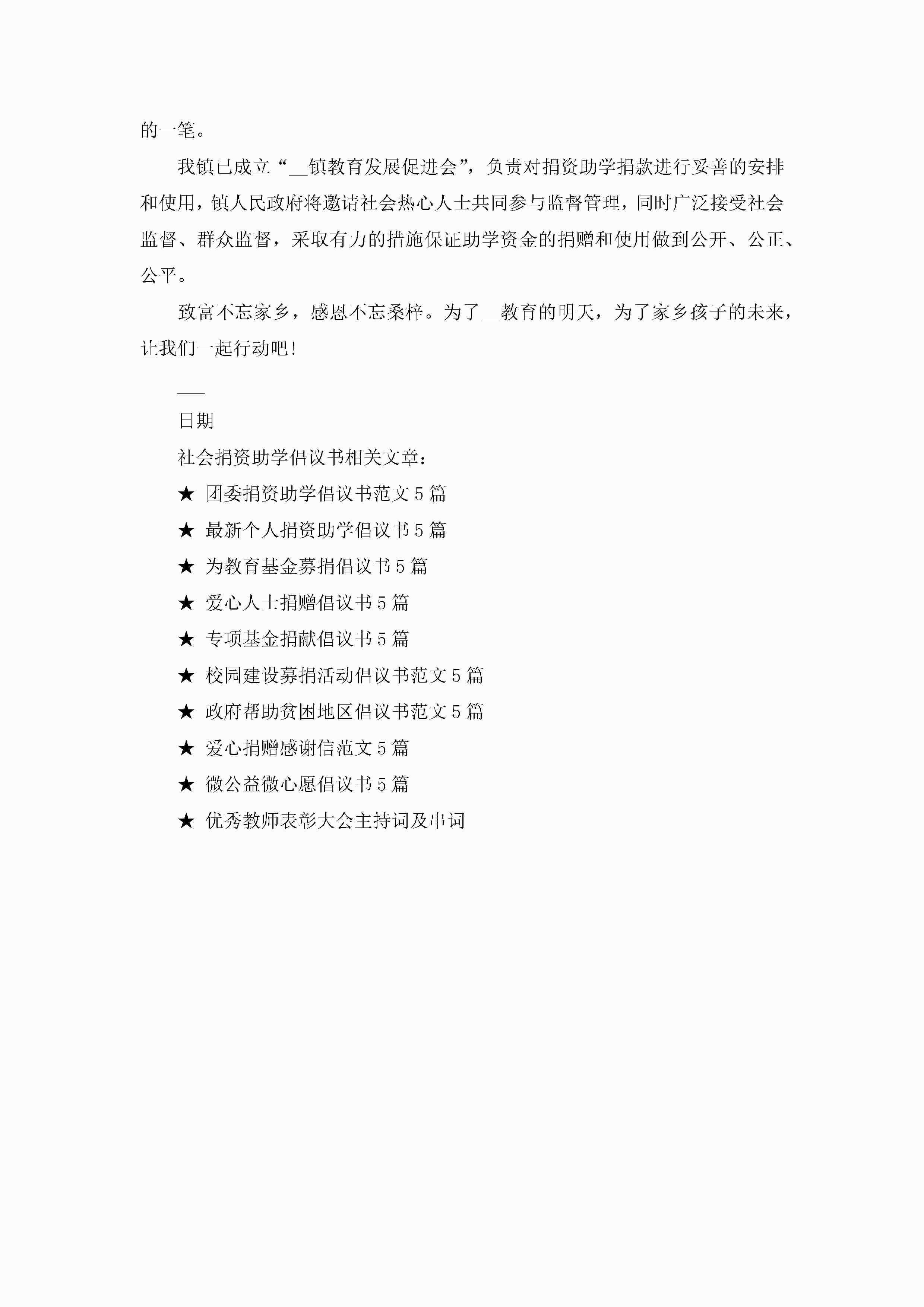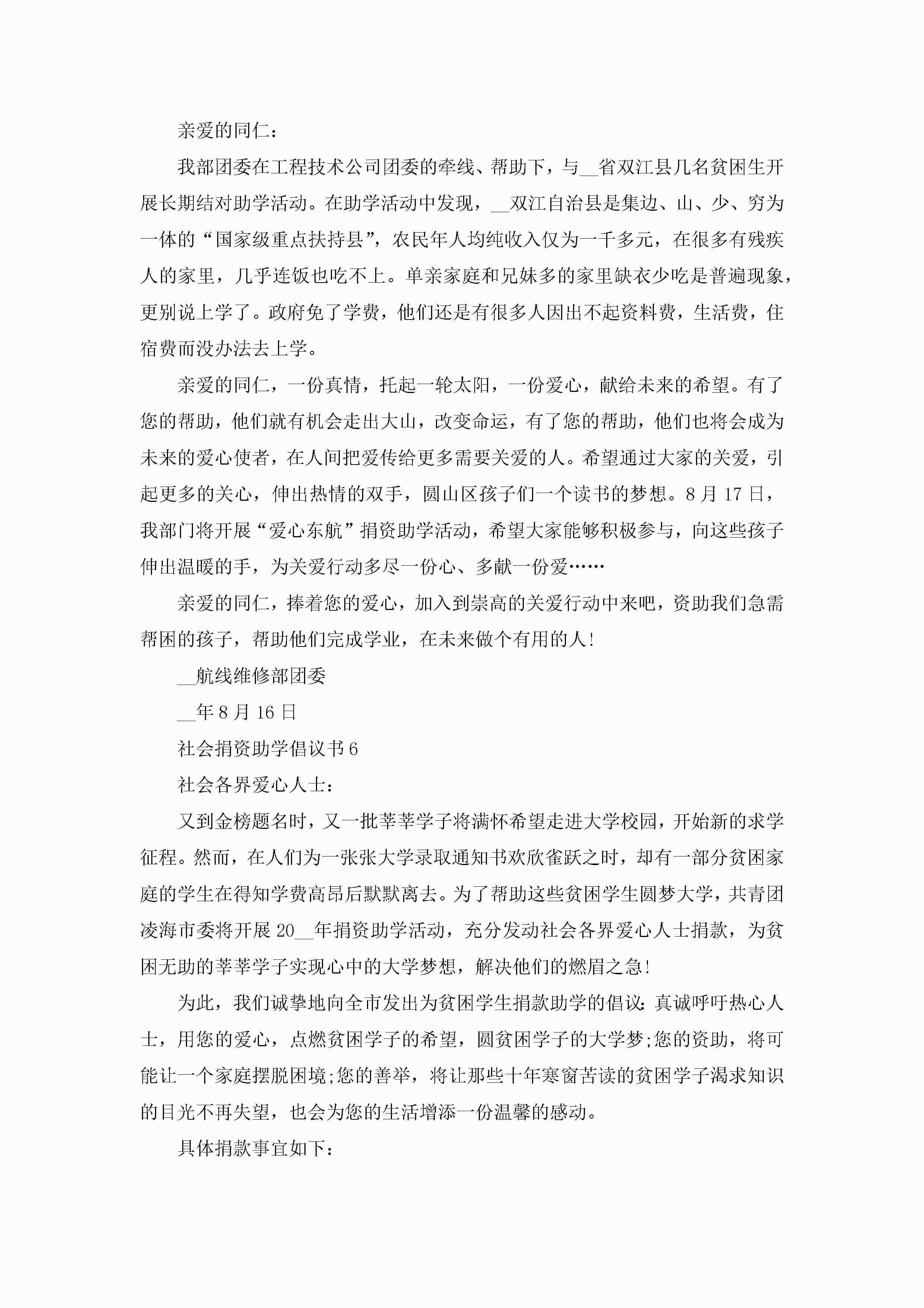 社会捐资助学倡议书7篇jugei3月22日 16:28发布关注303 社会捐资助学倡议书7篇此内容为付费资源,请付费后查看¥10.9 单篇文档限时特惠¥15个人会员开通企业会员开通立即下载无需登陆!可直接快捷下载单个模板付费资源© 版权声明THE ENDWord模板# 实用文档# 实用模板# 信函模板# 倡议书 如有问题,可点击最底部“联系我们”联系客服 分享QQ空间微博QQ好友海报分享复制链接收藏
