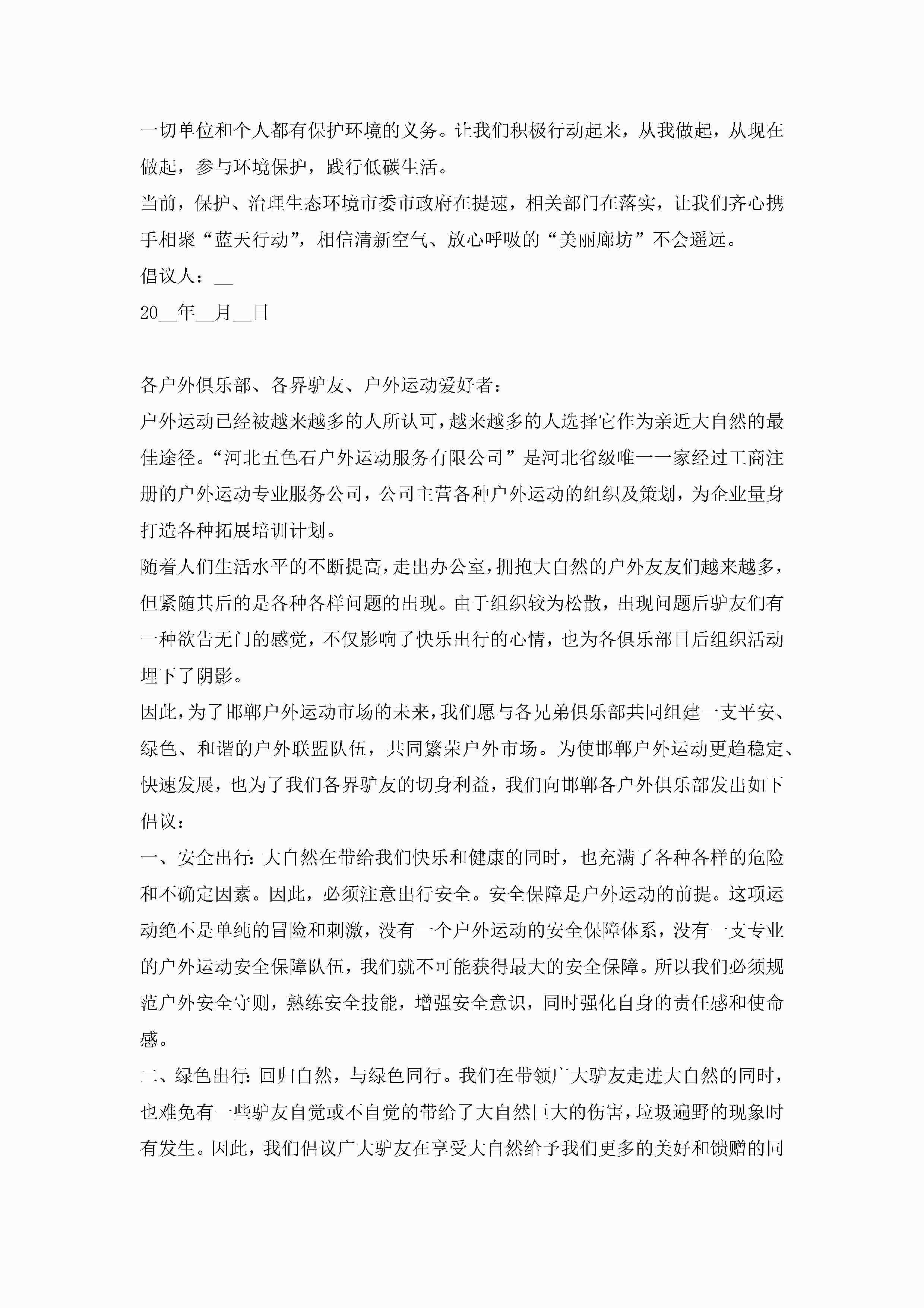 低碳环保绿色出行倡议书范本5篇jugei3月22日 16:28发布关注334 低碳环保绿色出行倡议书范本5篇此内容为付费资源,请付费后查看¥10.9 单篇文档限时特惠¥15个人会员开通企业会员开通立即下载无需登陆!可直接快捷下载单个模板付费资源© 版权声明THE ENDWord模板# 实用文档# 实用模板# 信函模板# 倡议书 如有问题,可点击最底部“联系我们”联系客服 分享QQ空间微博QQ好友海报分享复制链接收藏