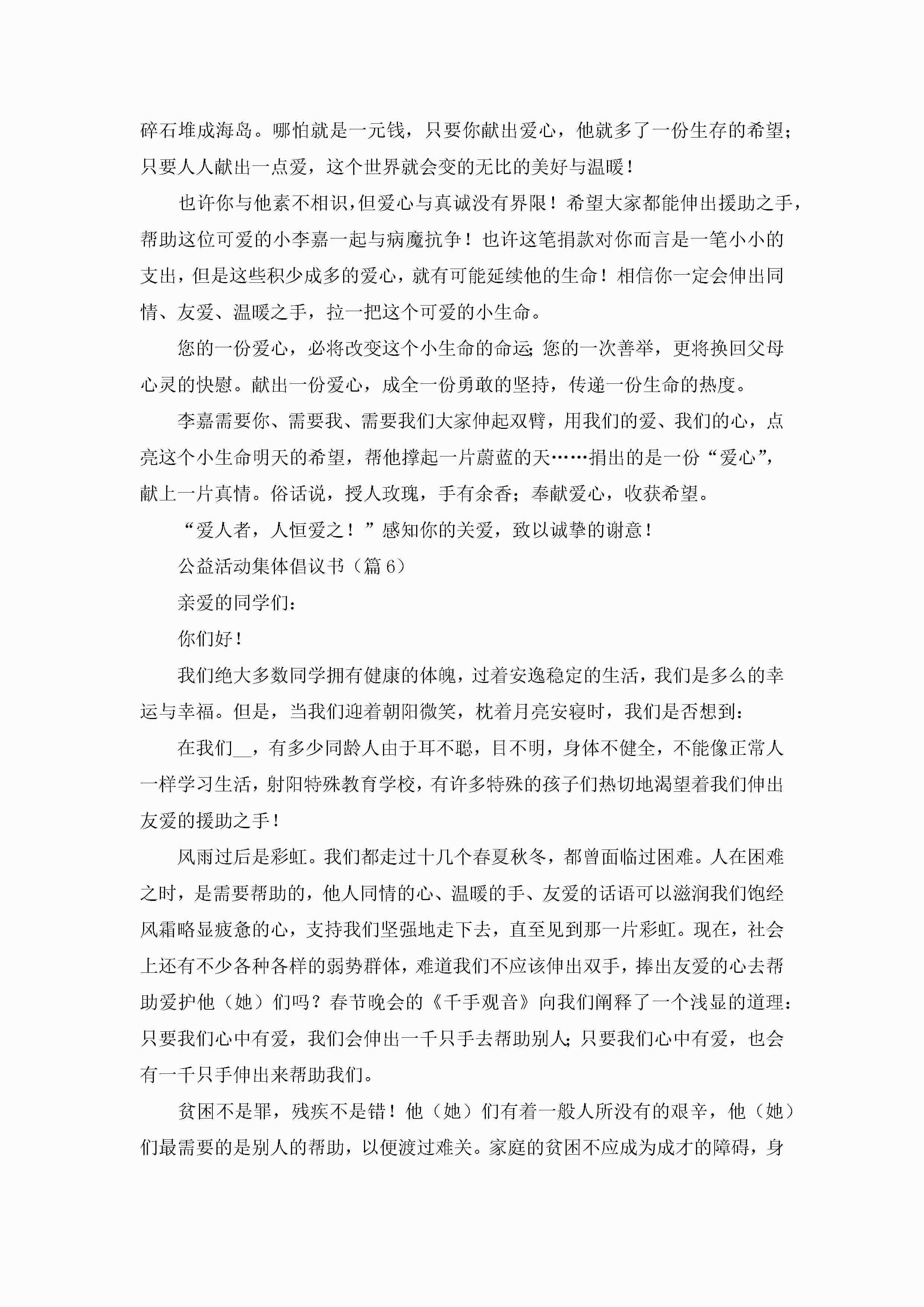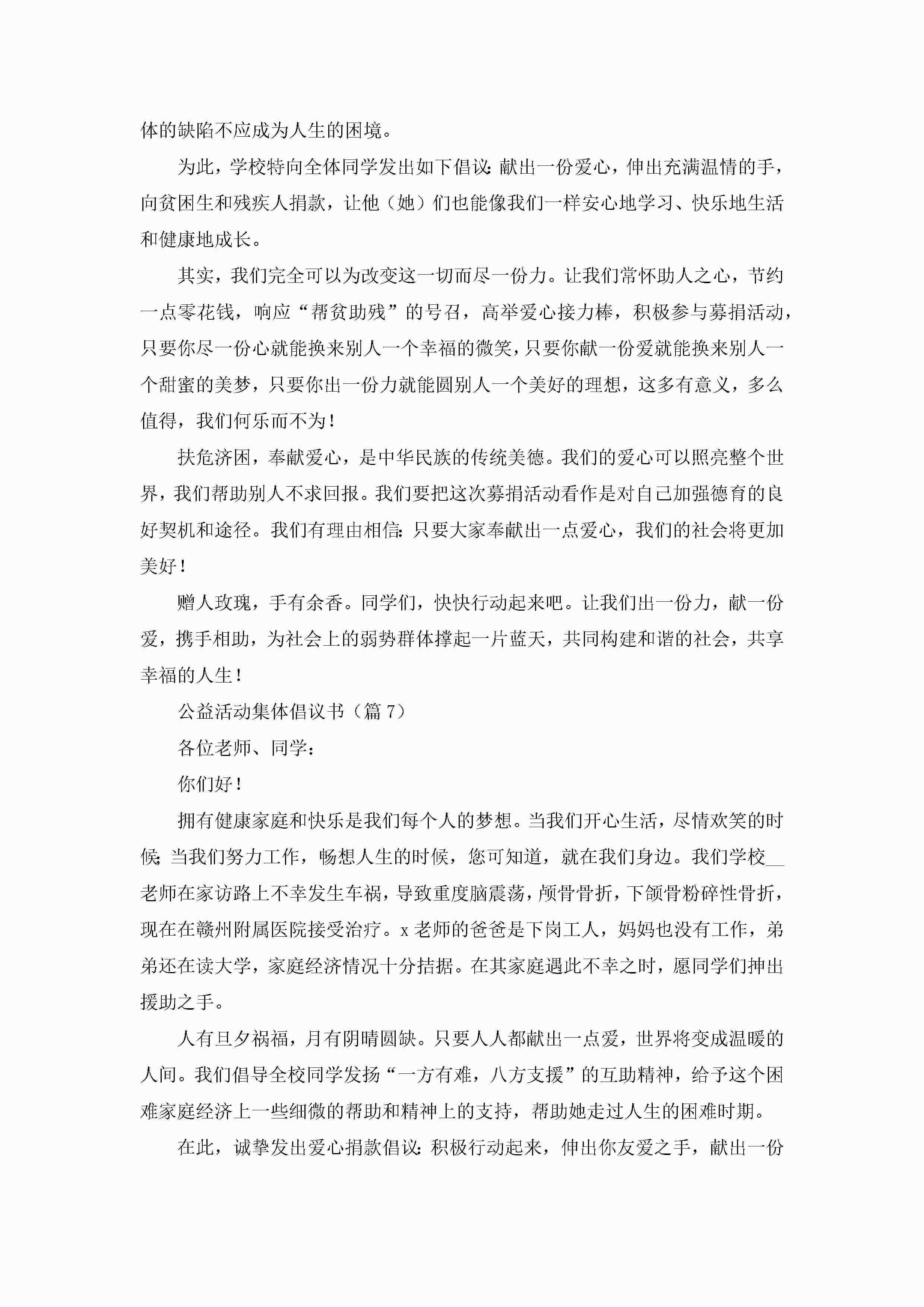 公益活动集体倡议书精选7篇【文本】jugei3月22日 16:28发布关注229 公益活动集体倡议书精选7篇【文本】此内容为付费资源,请付费后查看¥10.9 单篇文档限时特惠¥15个人会员开通企业会员开通立即下载无需登陆!可直接快捷下载单个模板付费资源© 版权声明THE ENDWord模板# 实用文档# 实用模板# 信函模板# 倡议书 如有问题,可点击最底部“联系我们”联系客服 分享QQ空间微博QQ好友海报分享复制链接收藏