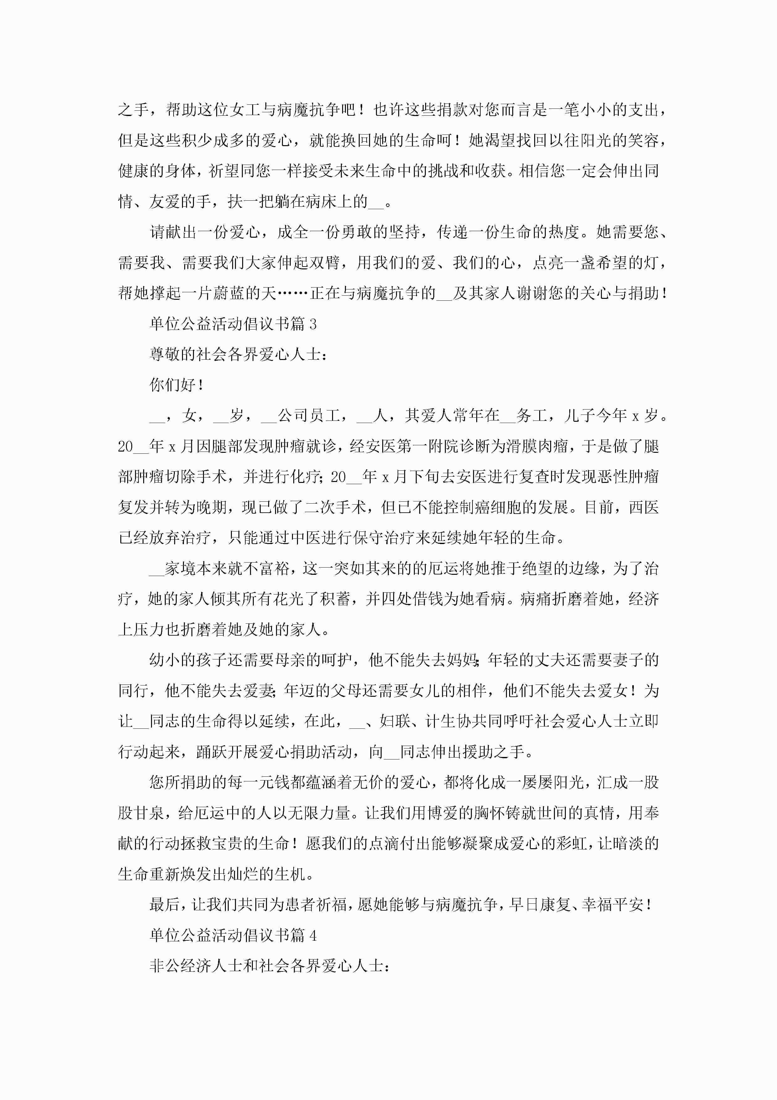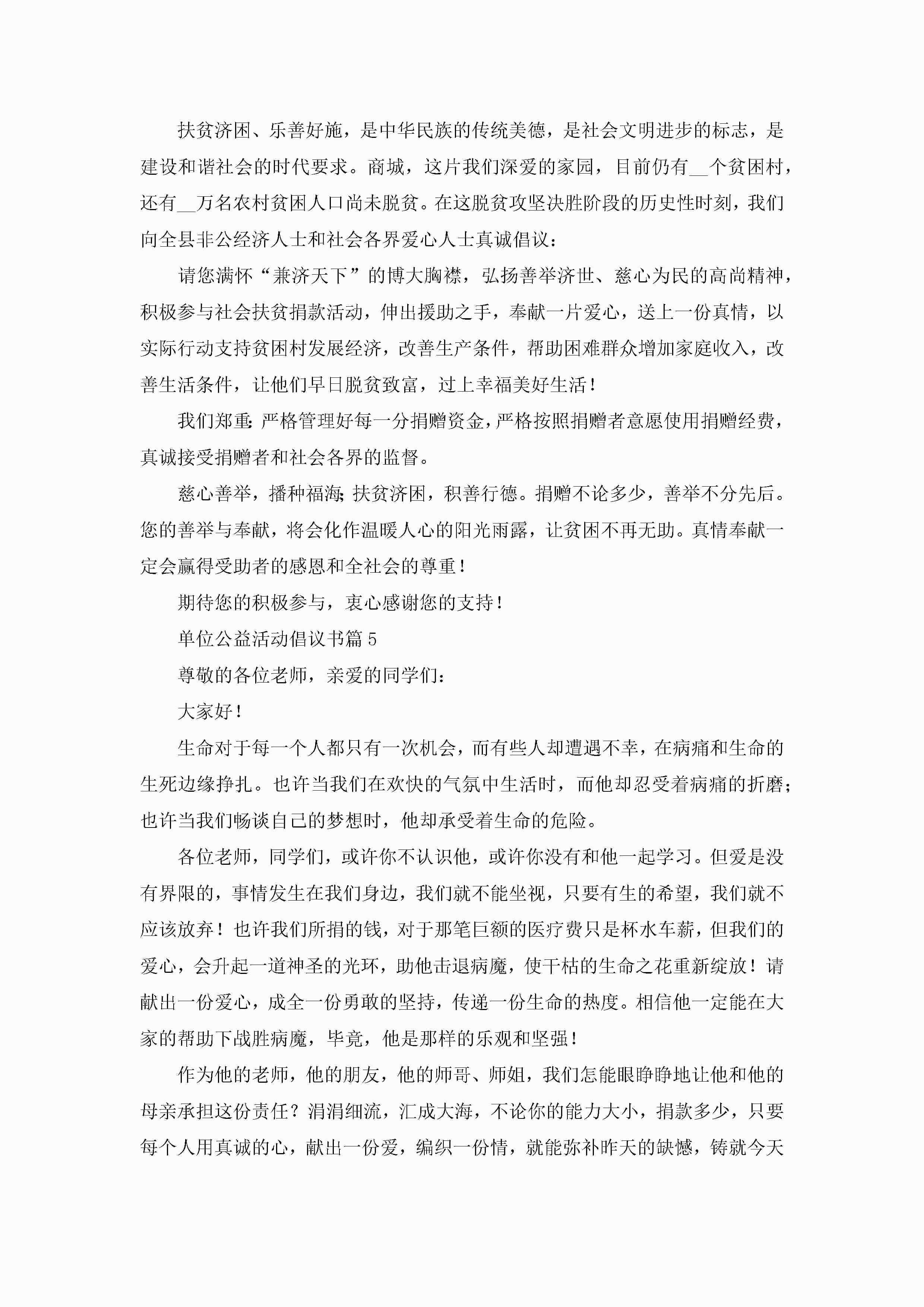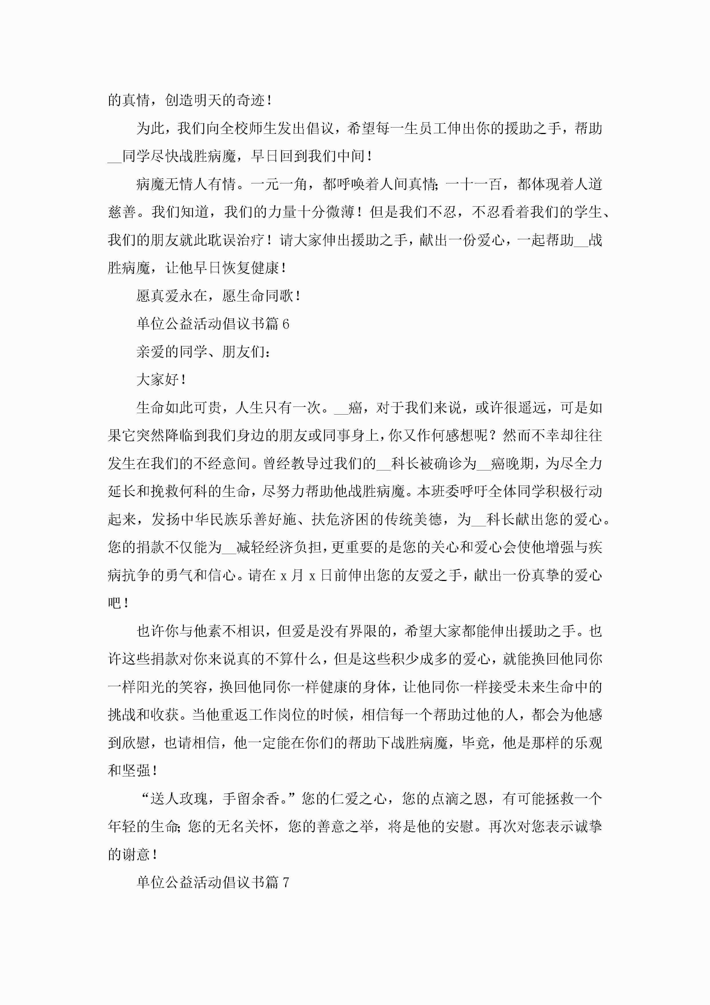 单位公益活动倡议书范本7篇【2023】jugei3月22日 16:28发布关注190 单位公益活动倡议书范本7篇【2023】此内容为付费资源,请付费后查看¥10.9 单篇文档限时特惠¥15个人会员开通企业会员开通立即下载无需登陆!可直接快捷下载单个模板付费资源© 版权声明THE ENDWord模板# 实用文档# 实用模板# 信函模板# 倡议书 如有问题,可点击最底部“联系我们”联系客服 分享QQ空间微博QQ好友海报分享复制链接收藏