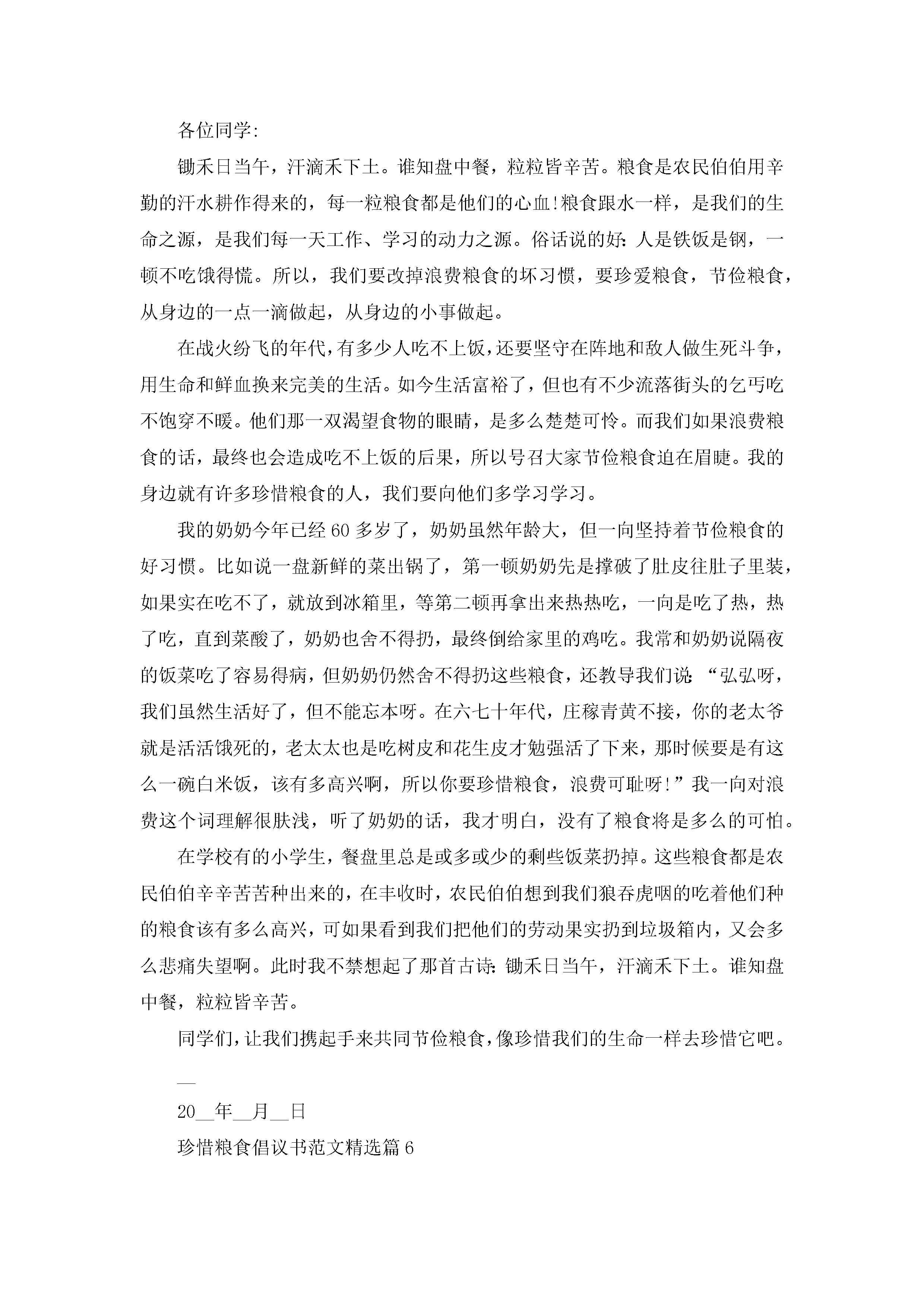 珍惜粮食倡议书范文【8篇】jugei3月22日 16:28发布关注204 珍惜粮食倡议书范文【8篇】此内容为付费资源,请付费后查看¥10.9 单篇文档限时特惠¥15个人会员开通企业会员开通立即下载无需登陆!可直接快捷下载单个模板付费资源© 版权声明THE ENDWord模板# 实用文档# 实用模板# 信函模板# 倡议书 如有问题,可点击最底部“联系我们”联系客服 分享QQ空间微博QQ好友海报分享复制链接收藏