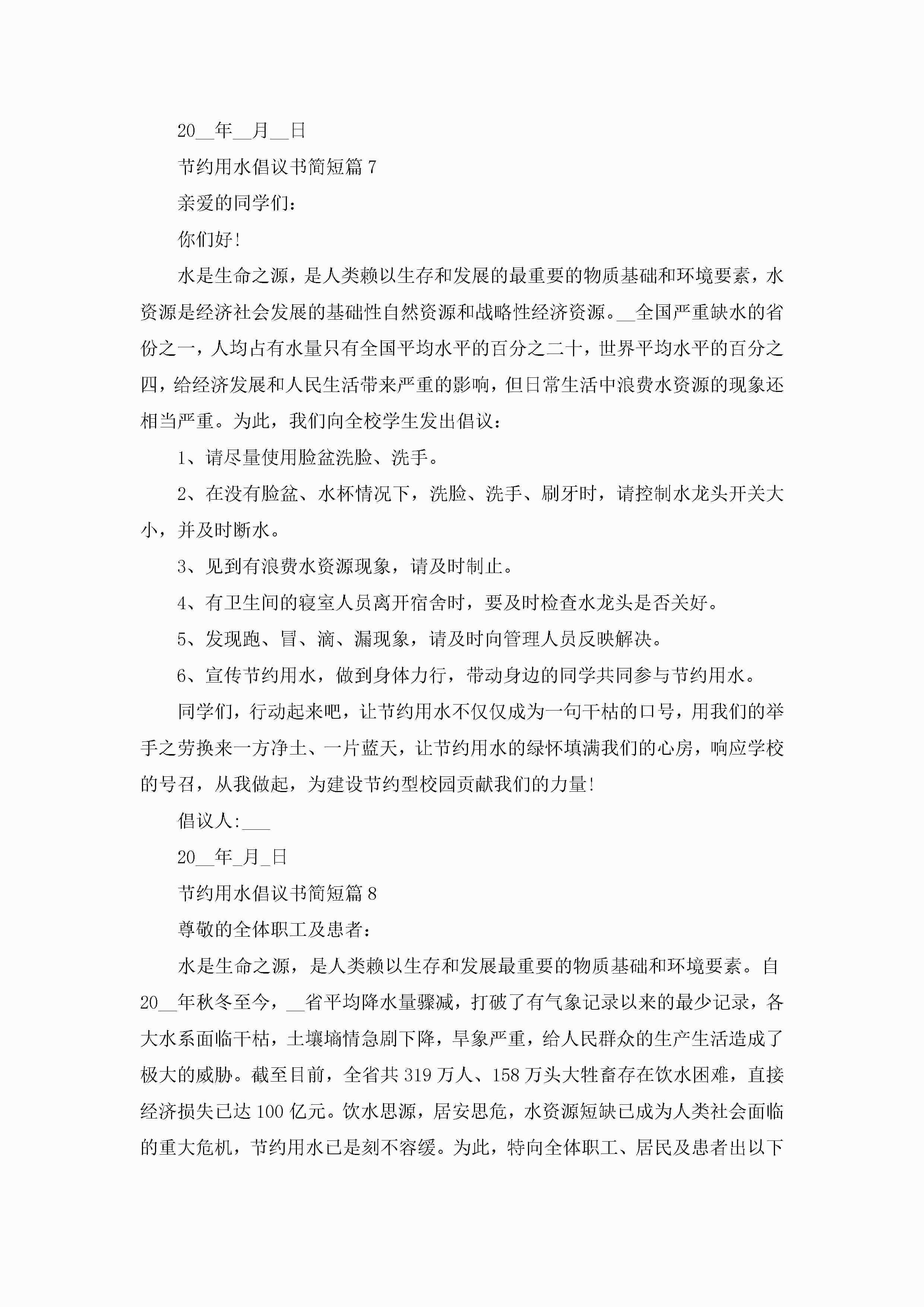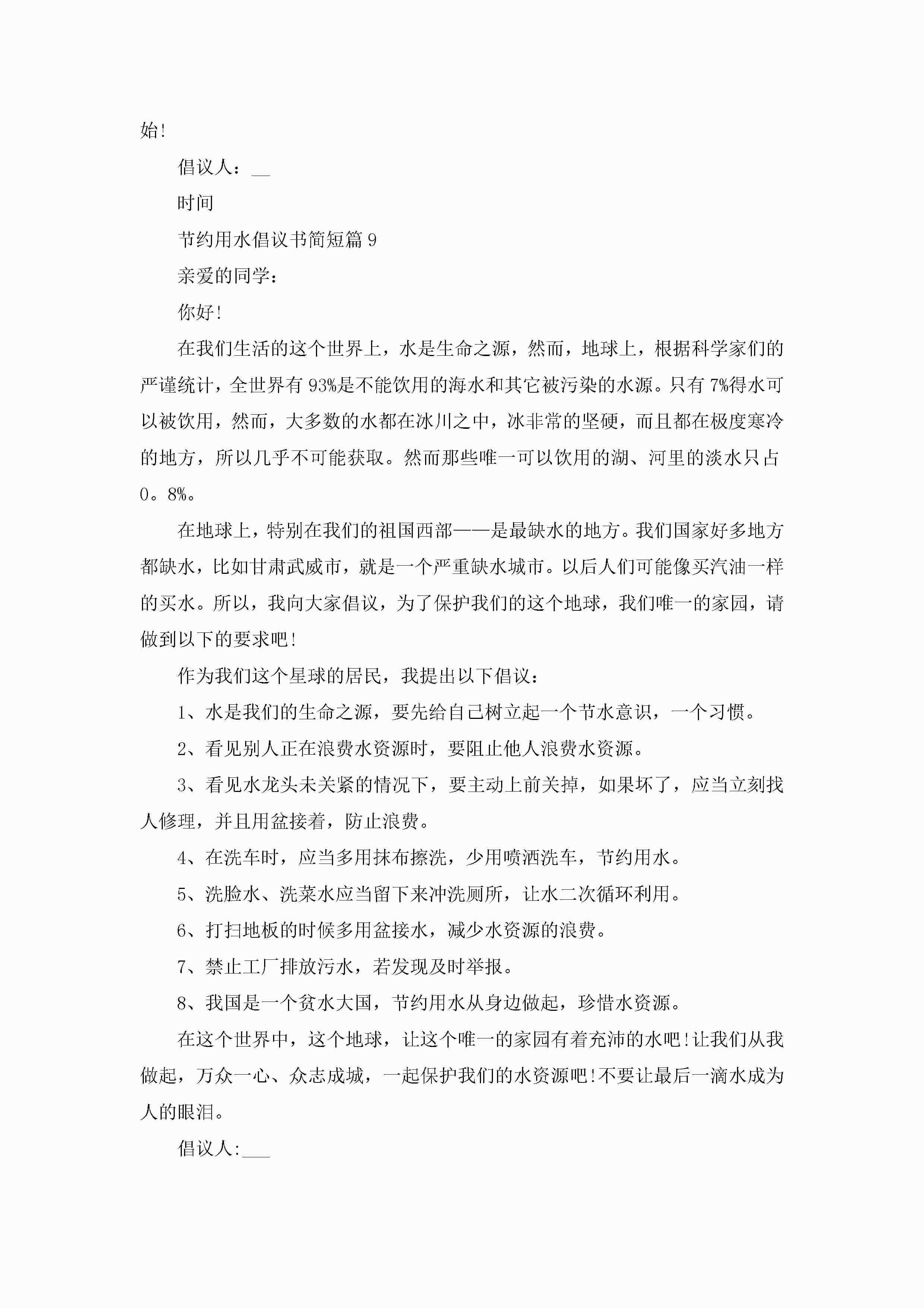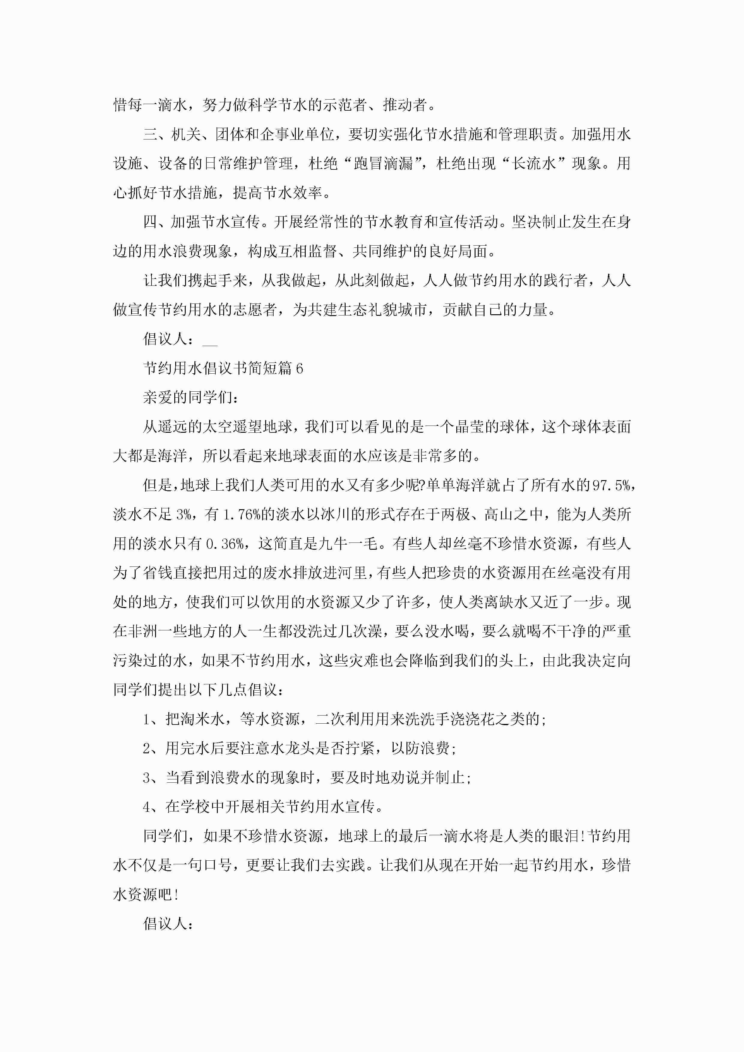 节约用水倡议书简短10篇精选jugei3月22日 16:28发布关注191 节约用水倡议书简短10篇精选此内容为付费资源,请付费后查看¥10.9 单篇文档限时特惠¥15个人会员开通企业会员开通立即下载无需登陆!可直接快捷下载单个模板付费资源© 版权声明THE ENDWord模板# 实用文档# 实用模板# 信函模板# 倡议书 如有问题,可点击最底部“联系我们”联系客服 分享QQ空间微博QQ好友海报分享复制链接收藏