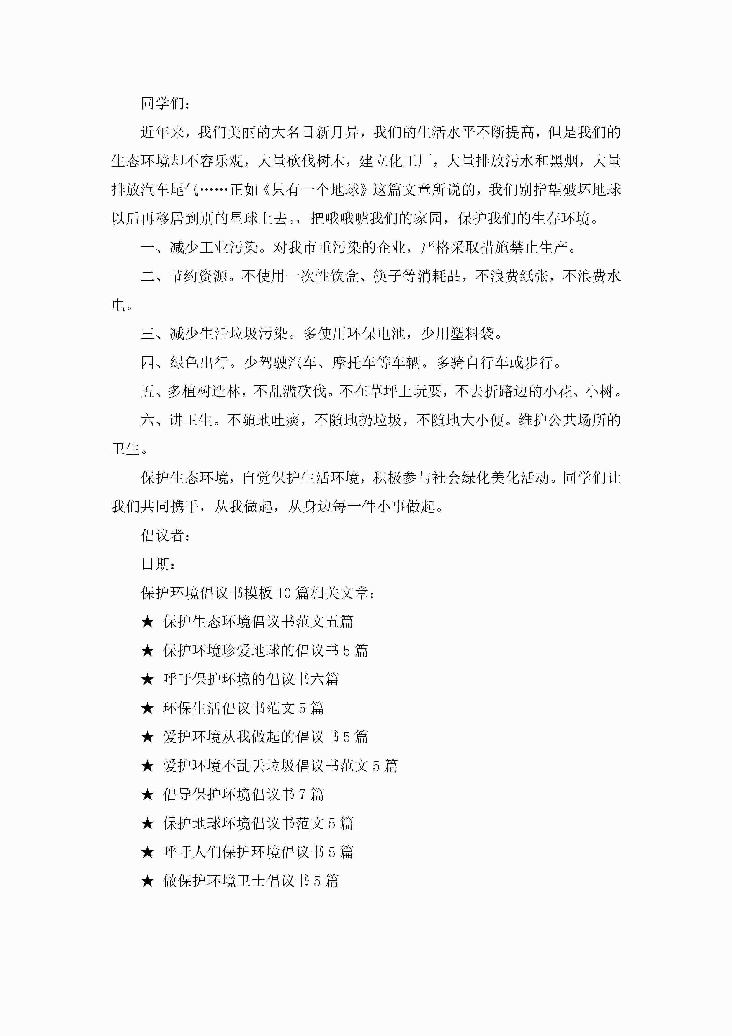 保护环境倡议书模板10篇精选jugei3月22日 16:28发布关注245 保护环境倡议书模板10篇精选此内容为付费资源,请付费后查看¥10.9 单篇文档限时特惠¥15个人会员开通企业会员开通立即下载无需登陆!可直接快捷下载单个模板付费资源© 版权声明THE ENDWord模板# 实用文档# 实用模板# 信函模板# 倡议书 如有问题,可点击最底部“联系我们”联系客服 分享QQ空间微博QQ好友海报分享复制链接收藏