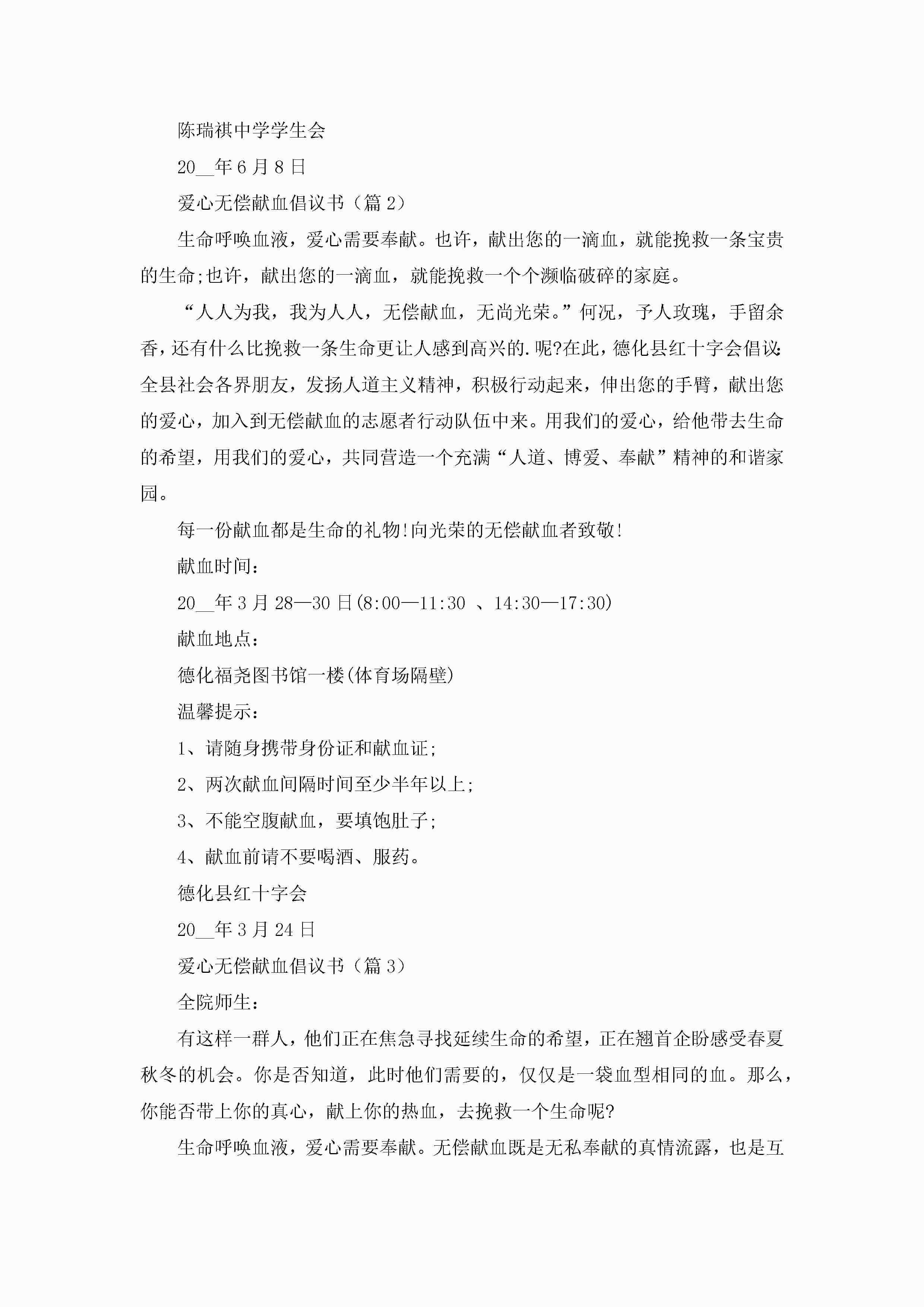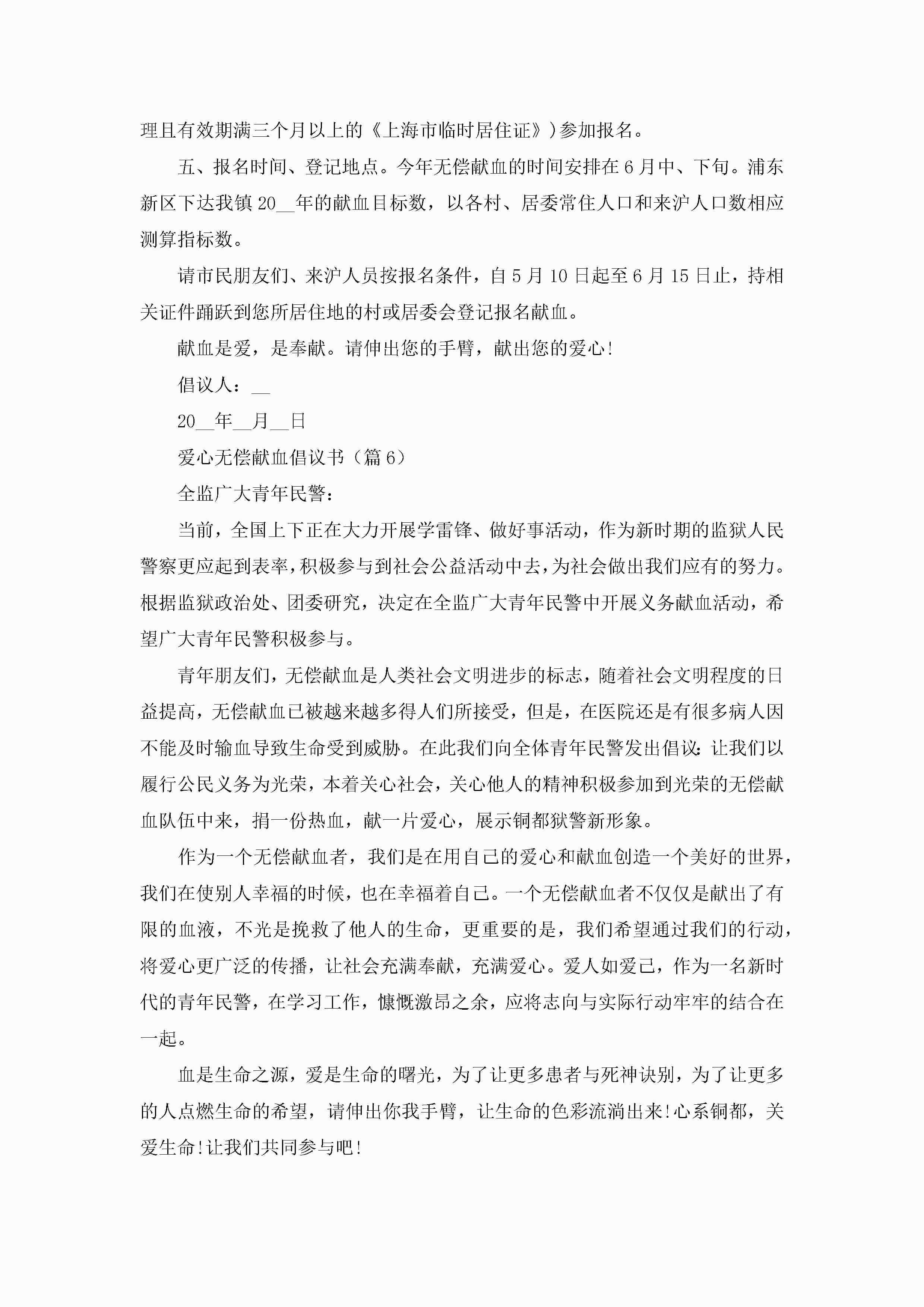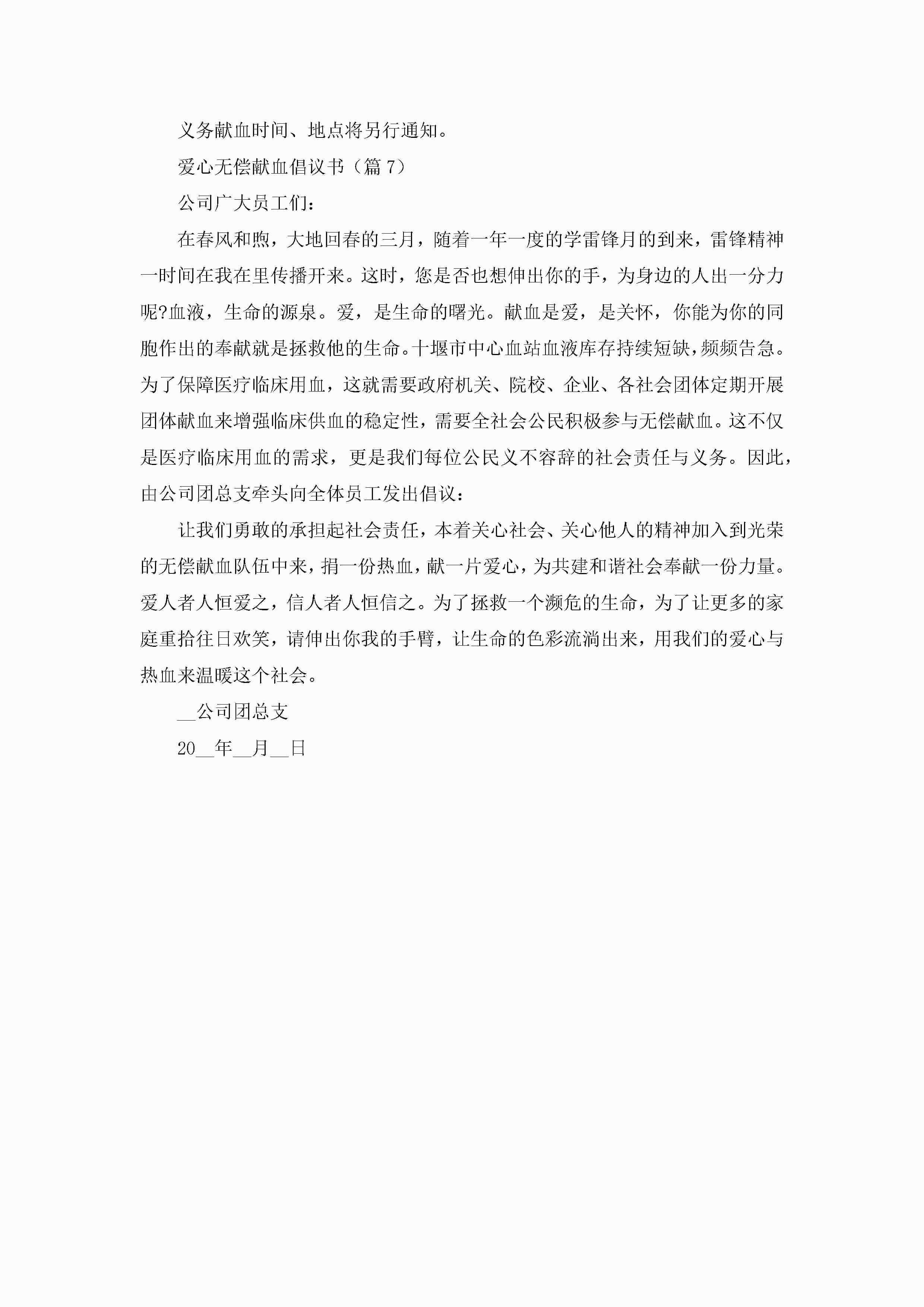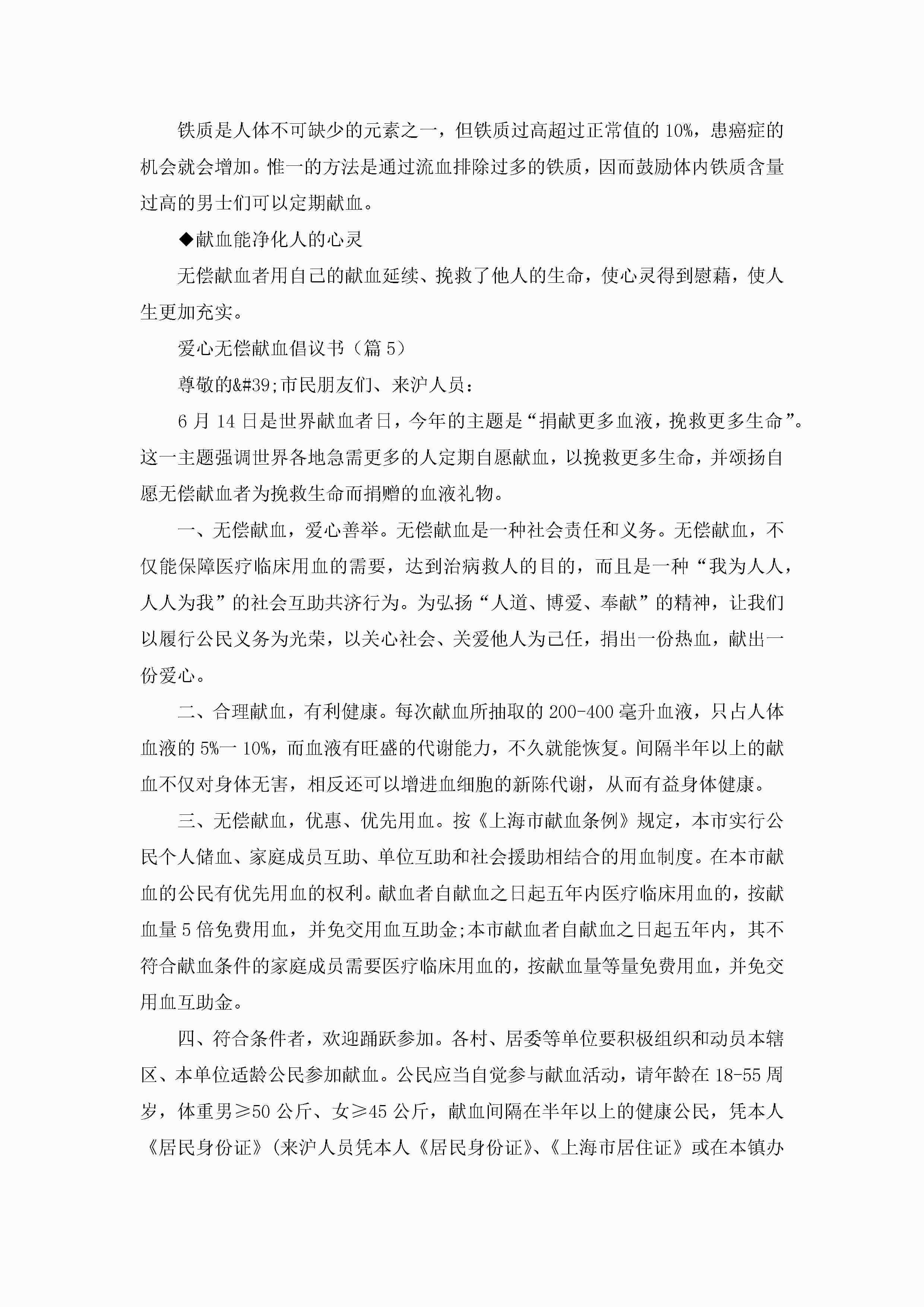 爱心无偿献血倡议书范文(精选7篇)jugei3月22日 16:28发布关注303 爱心无偿献血倡议书范文(精选7篇)此内容为付费资源,请付费后查看¥10.9 单篇文档限时特惠¥15个人会员开通企业会员开通立即下载无需登陆!可直接快捷下载单个模板付费资源© 版权声明THE ENDWord模板# 实用文档# 实用模板# 信函模板# 倡议书 如有问题,可点击最底部“联系我们”联系客服 分享QQ空间微博QQ好友海报分享复制链接收藏