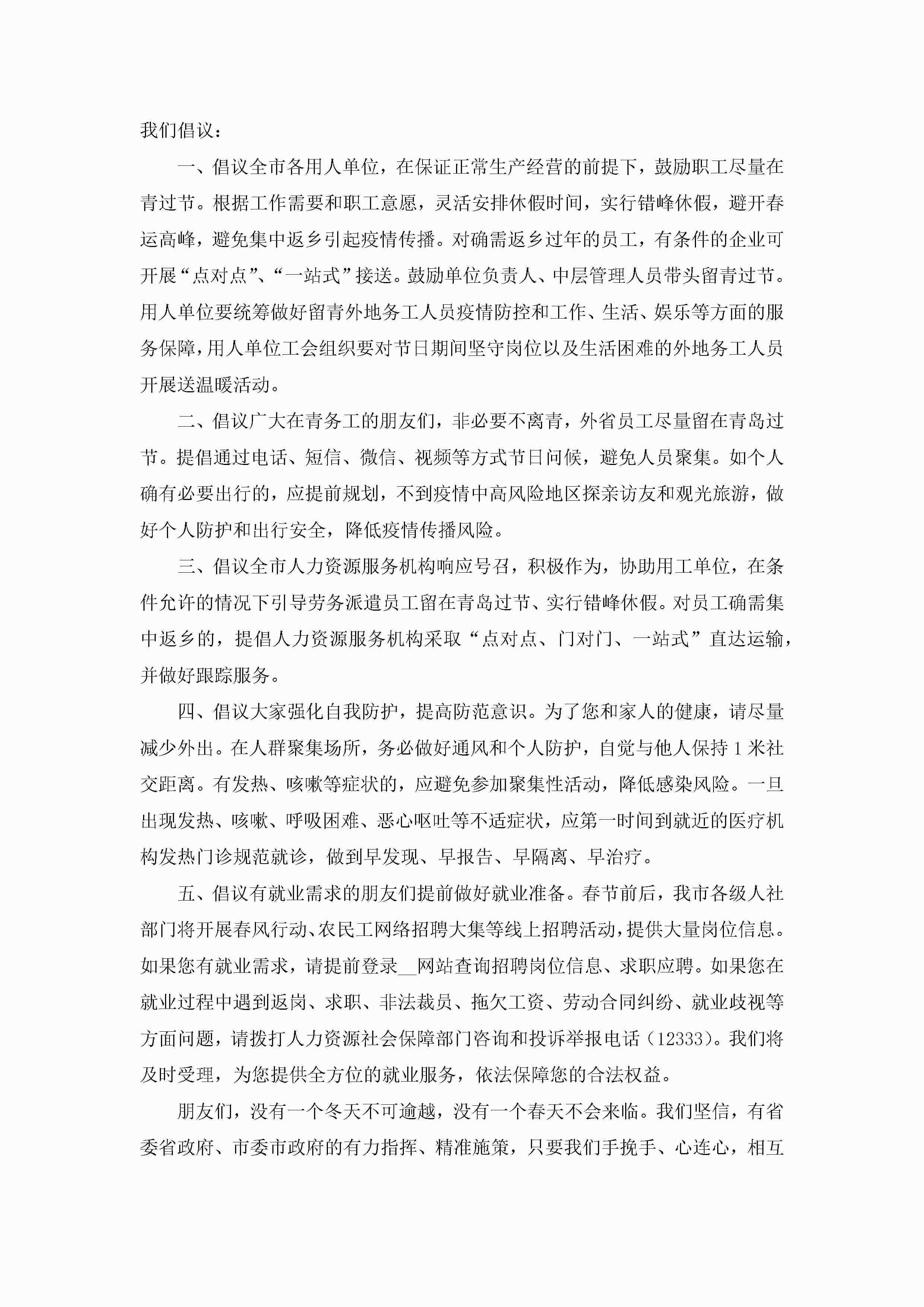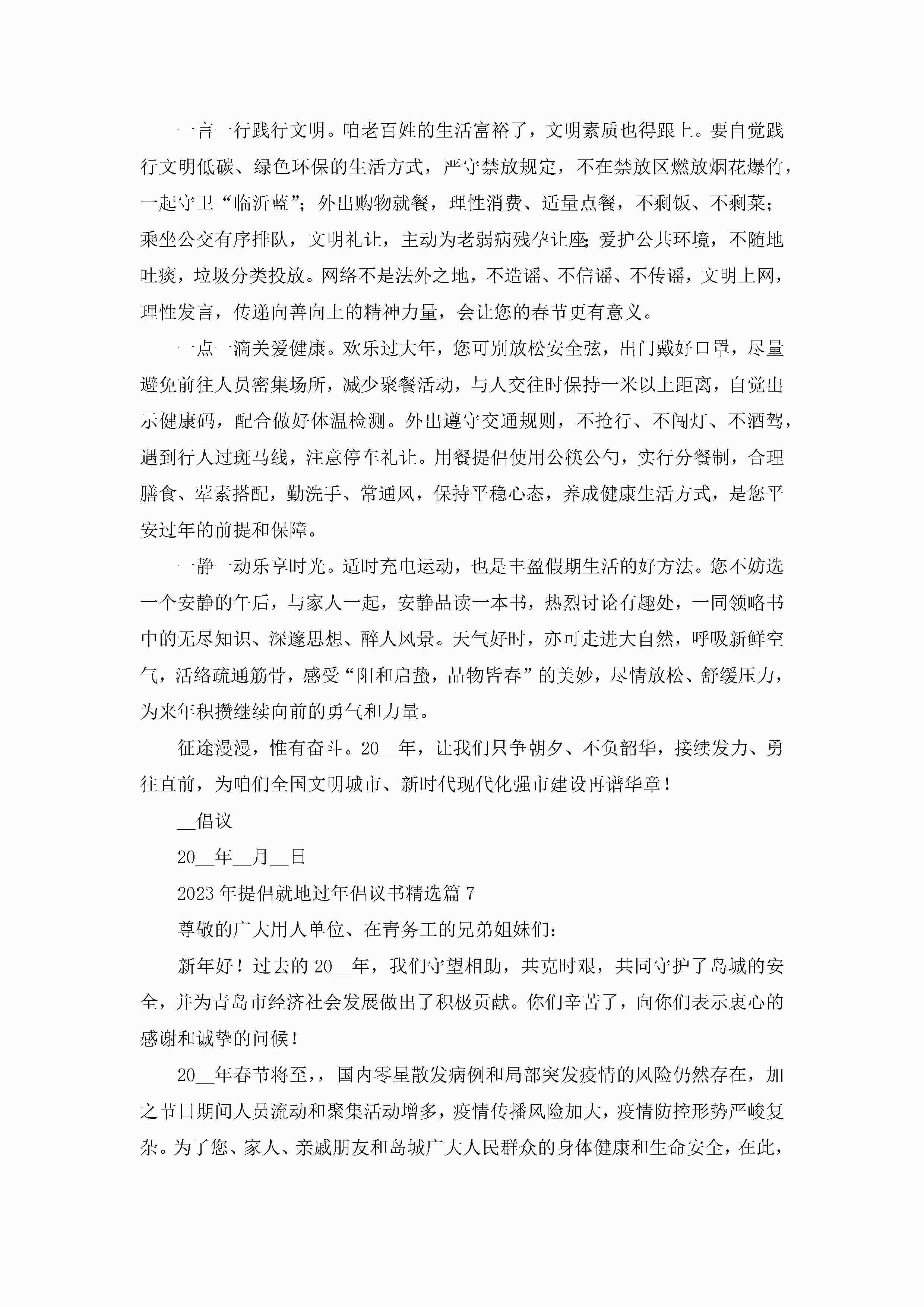 2023年提倡就地过年倡议书范文7篇jugei3月22日 16:28发布关注198 2023年提倡就地过年倡议书范文7篇此内容为付费资源,请付费后查看¥10.9 单篇文档限时特惠¥15个人会员开通企业会员开通立即下载无需登陆!可直接快捷下载单个模板付费资源© 版权声明THE ENDWord模板# 实用文档# 实用模板# 信函模板# 倡议书 如有问题,可点击最底部“联系我们”联系客服 分享QQ空间微博QQ好友海报分享复制链接收藏