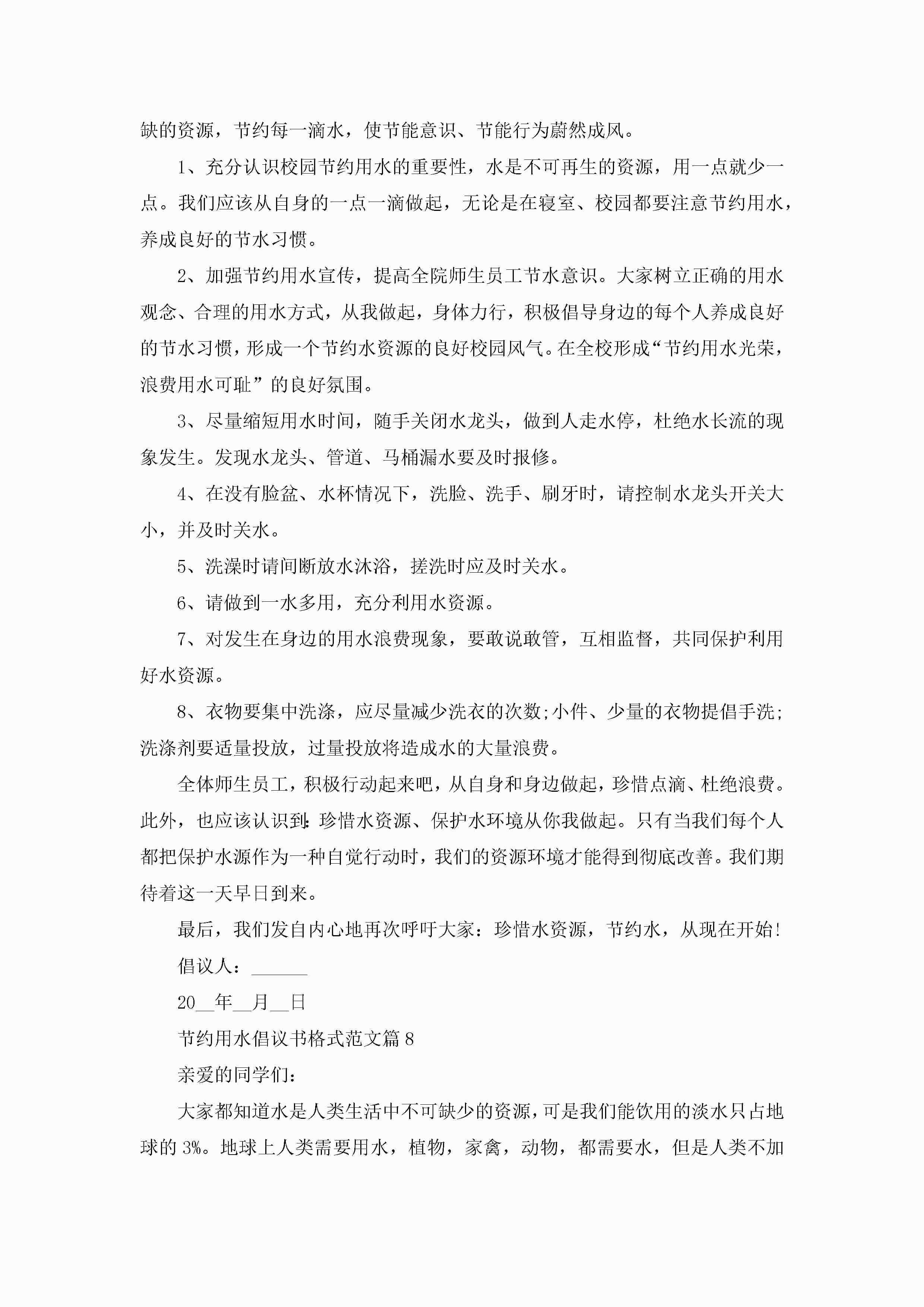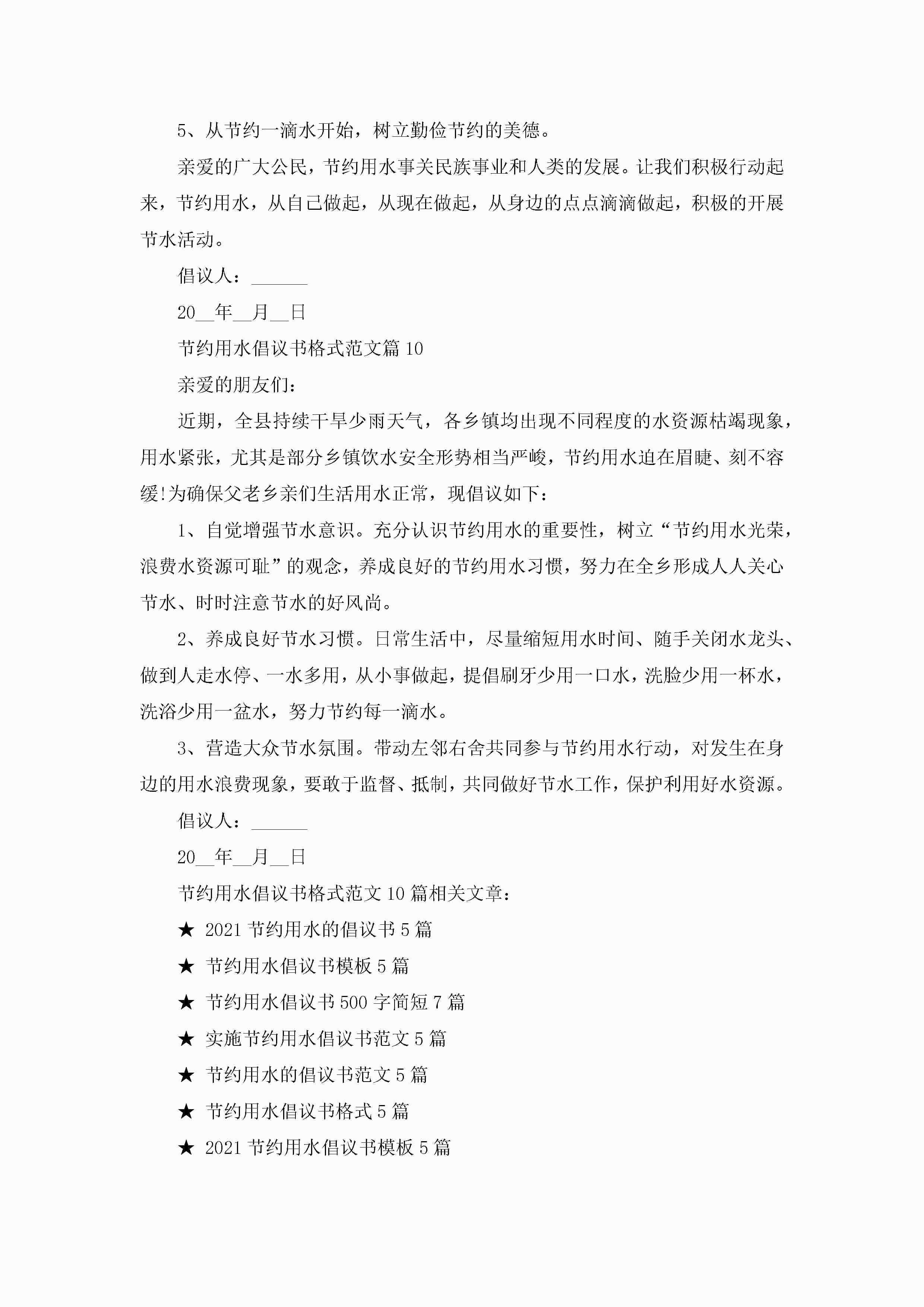 节约用水倡议书格式范文10篇精选jugei3月22日 16:28发布关注192 节约用水倡议书格式范文10篇精选此内容为付费资源,请付费后查看¥10.9 单篇文档限时特惠¥15个人会员开通企业会员开通立即下载无需登陆!可直接快捷下载单个模板付费资源© 版权声明THE ENDWord模板# 实用文档# 实用模板# 信函模板# 倡议书 如有问题,可点击最底部“联系我们”联系客服 分享QQ空间微博QQ好友海报分享复制链接收藏