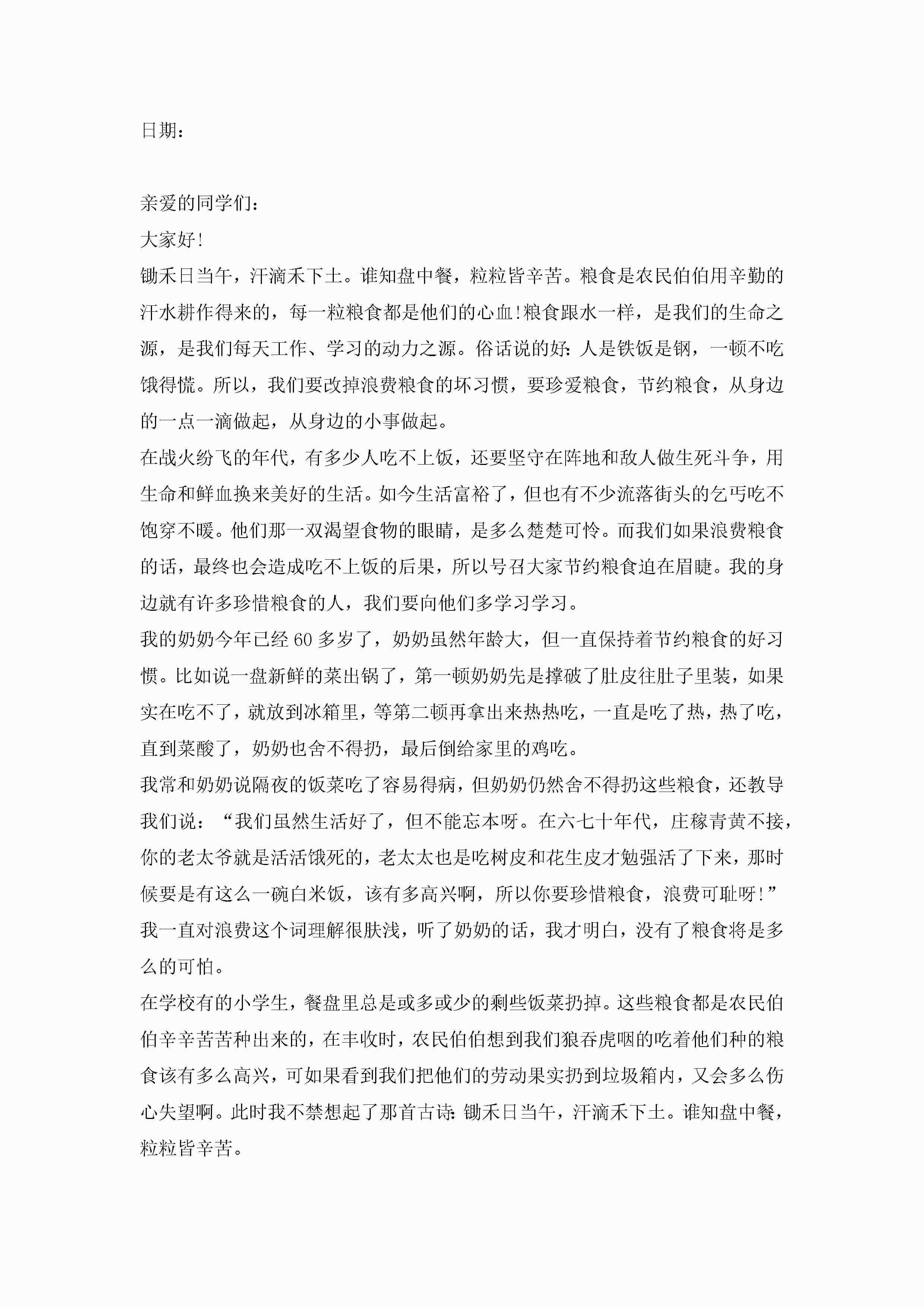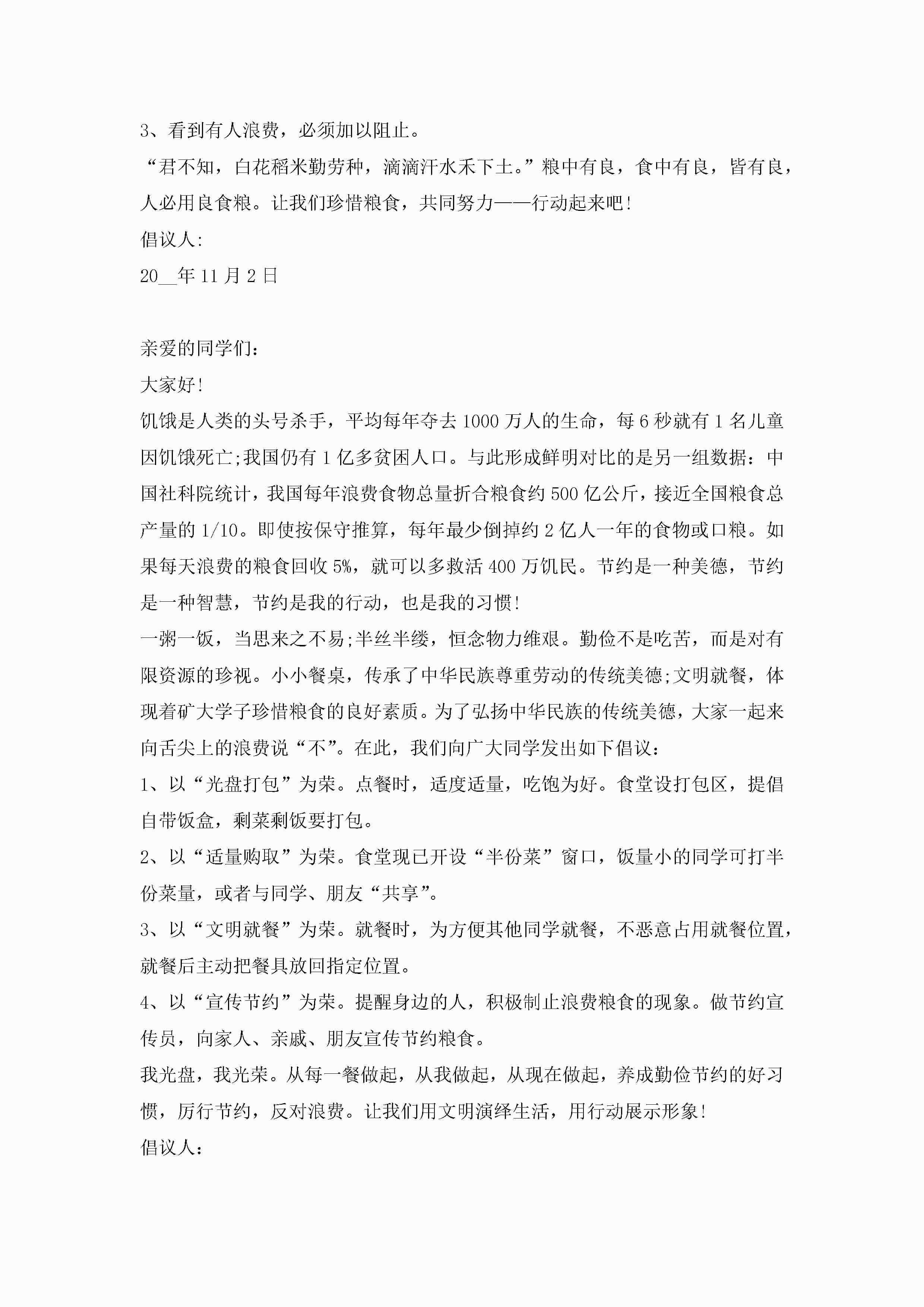 节约粮食的倡议书范文10篇精选jugei3月22日 16:28发布关注203 节约粮食的倡议书范文10篇精选此内容为付费资源,请付费后查看¥10.9 单篇文档限时特惠¥15个人会员开通企业会员开通立即下载无需登陆!可直接快捷下载单个模板付费资源© 版权声明THE ENDWord模板# 实用文档# 实用模板# 信函模板# 倡议书 如有问题,可点击最底部“联系我们”联系客服 分享QQ空间微博QQ好友海报分享复制链接收藏