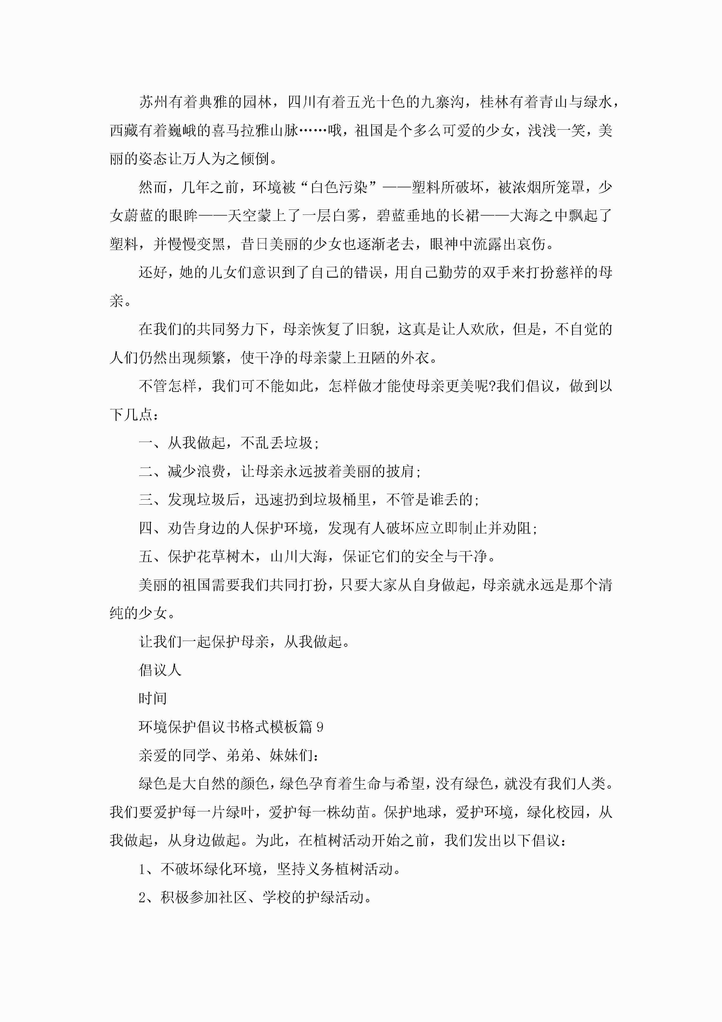 环境保护倡议书格式模板10篇精选jugei3月22日 16:28发布关注191 环境保护倡议书格式模板10篇精选此内容为付费资源,请付费后查看¥10.9 单篇文档限时特惠¥15个人会员开通企业会员开通立即下载无需登陆!可直接快捷下载单个模板付费资源© 版权声明THE ENDWord模板# 实用文档# 实用模板# 信函模板# 倡议书 如有问题,可点击最底部“联系我们”联系客服 分享QQ空间微博QQ好友海报分享复制链接收藏