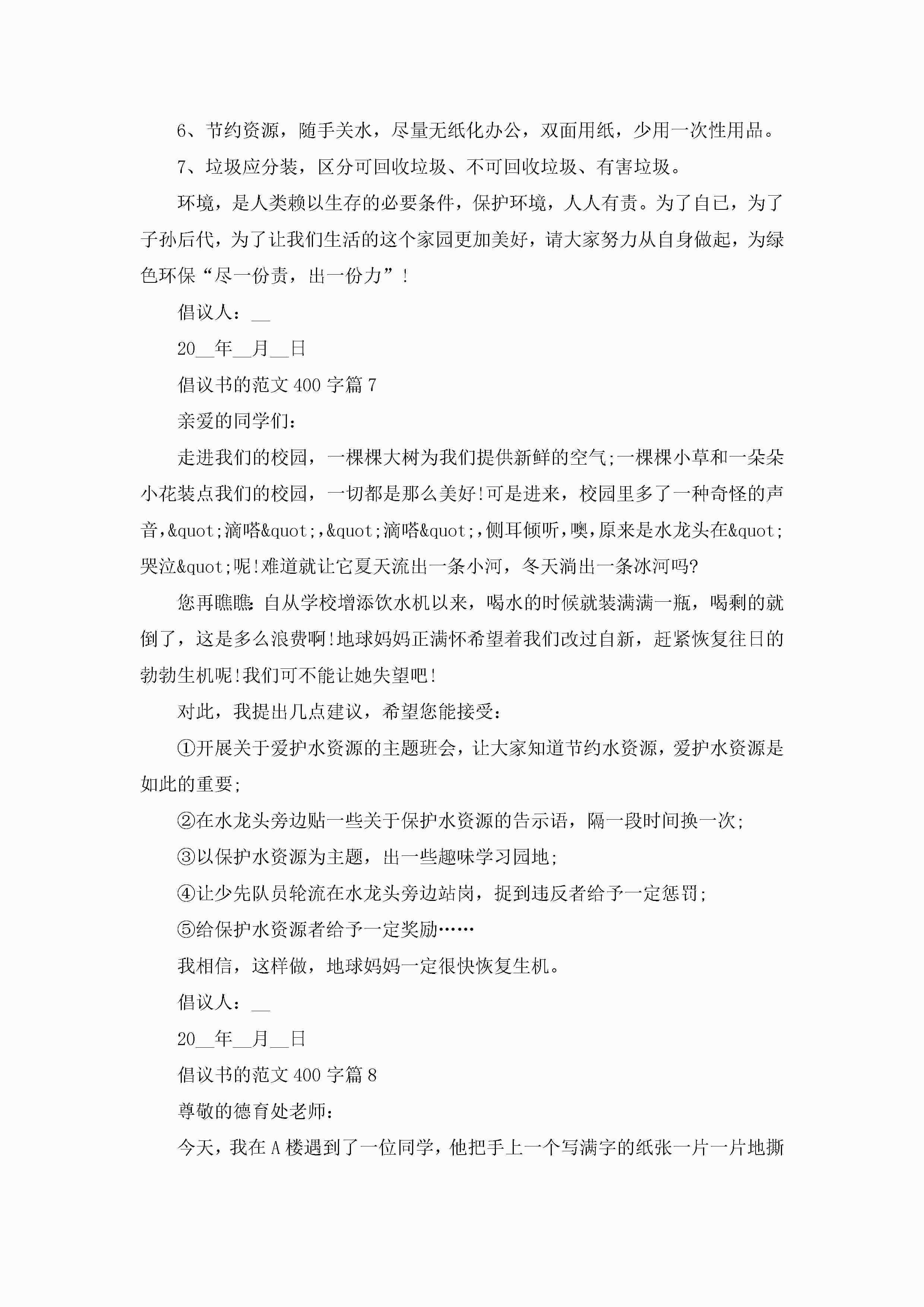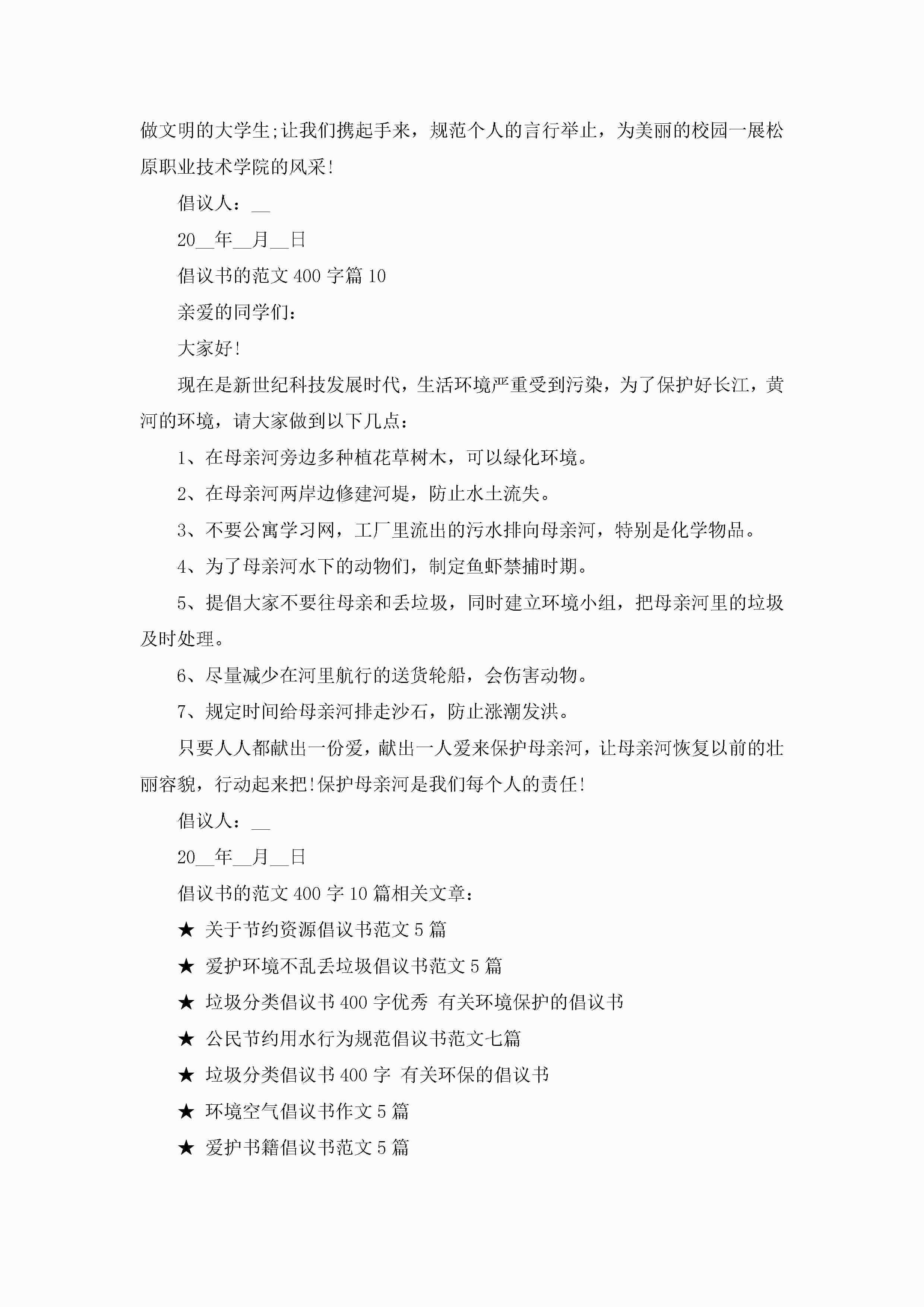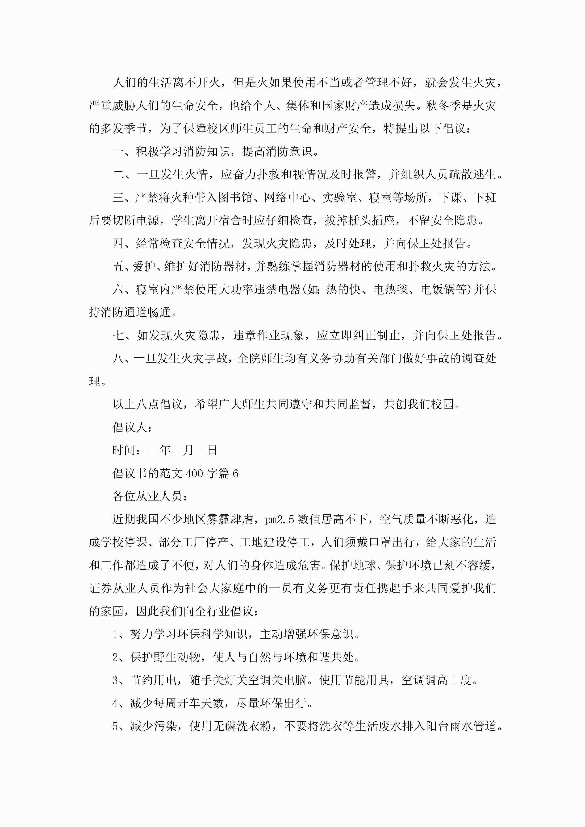 倡议书的范文400字10篇精选jugei3月22日 16:28发布关注199 倡议书的范文400字10篇精选此内容为付费资源,请付费后查看¥10.9 单篇文档限时特惠¥15个人会员开通企业会员开通立即下载无需登陆!可直接快捷下载单个模板付费资源© 版权声明THE ENDWord模板# 实用文档# 实用模板# 信函模板# 倡议书 如有问题,可点击最底部“联系我们”联系客服 分享QQ空间微博QQ好友海报分享复制链接收藏