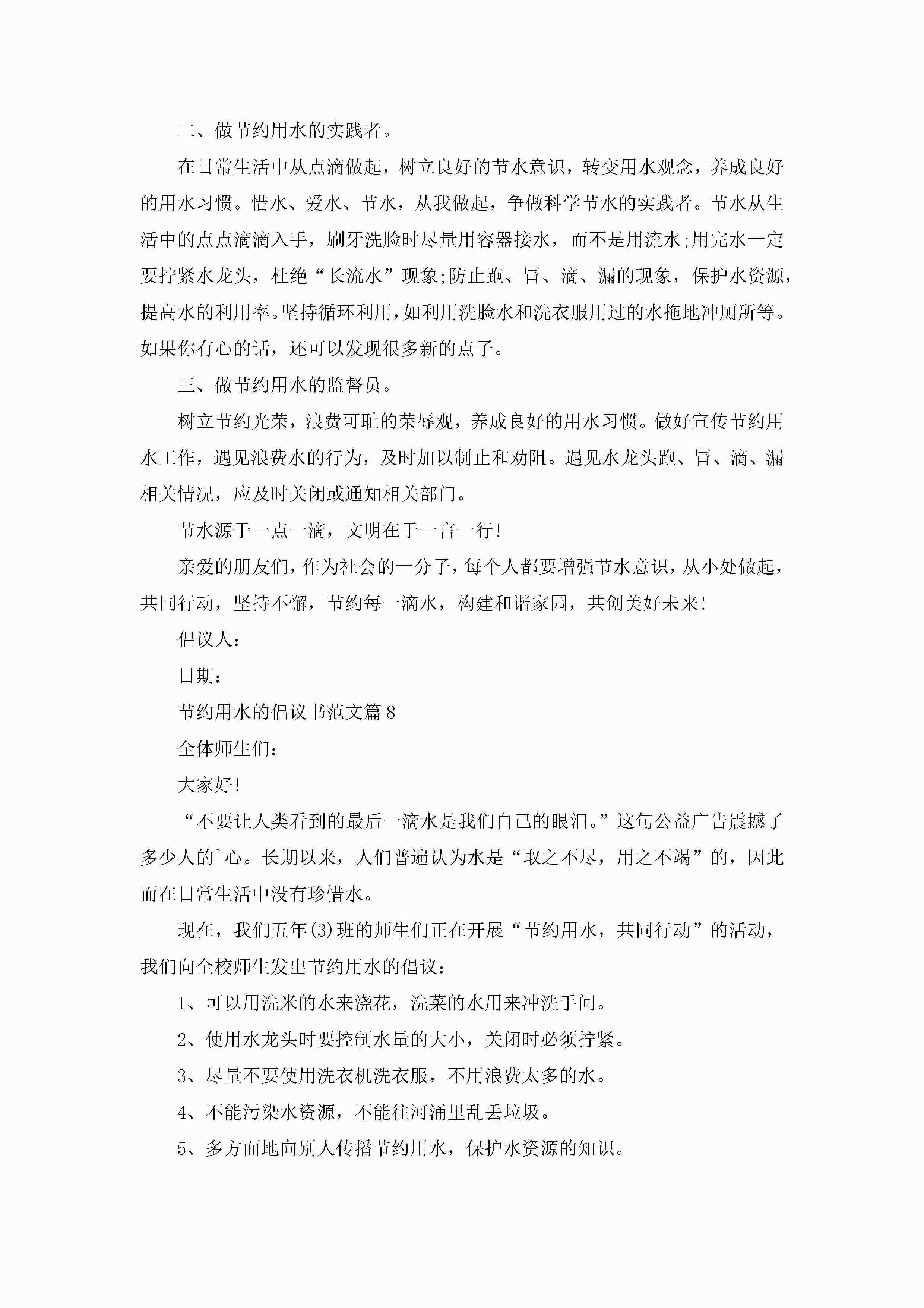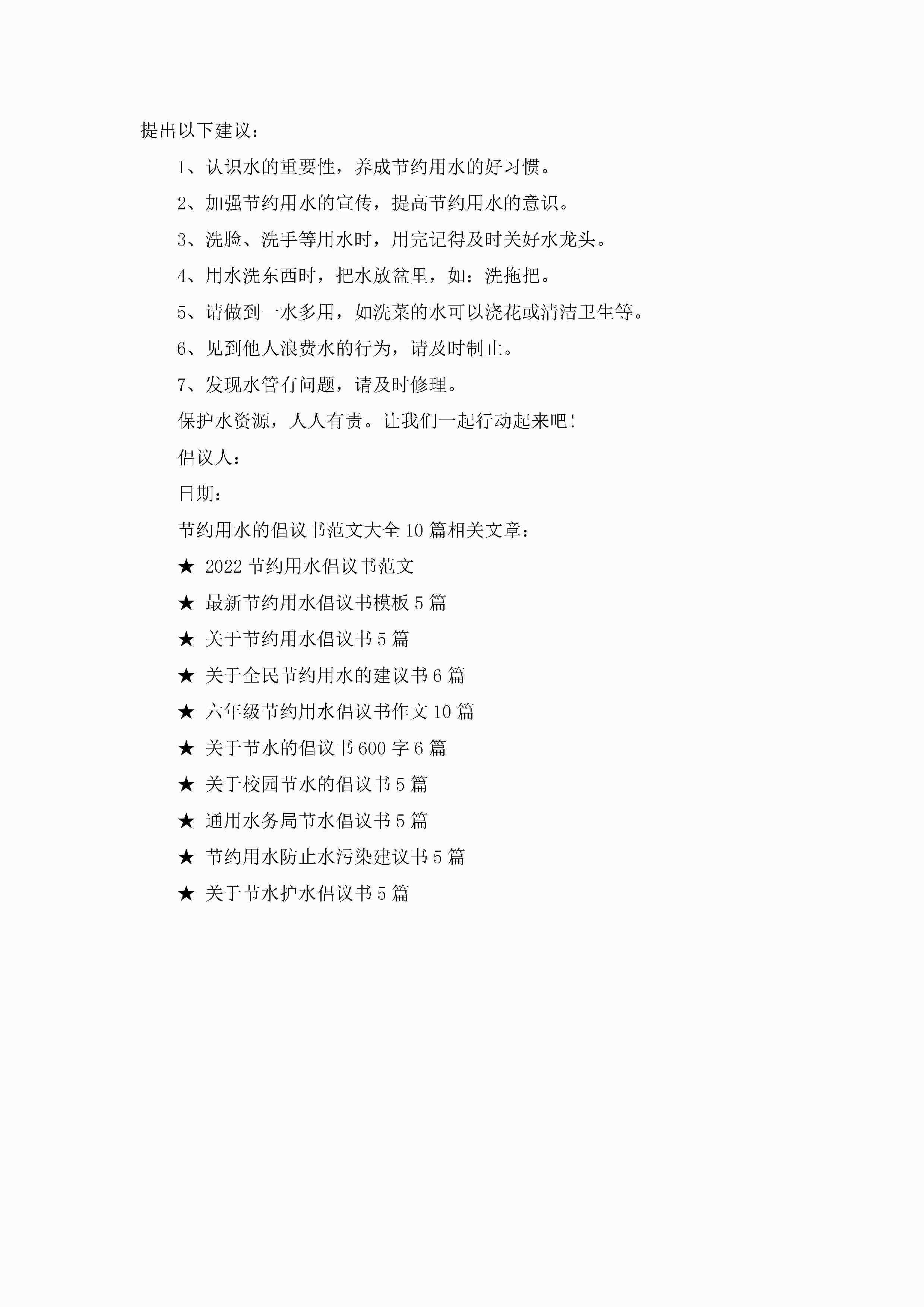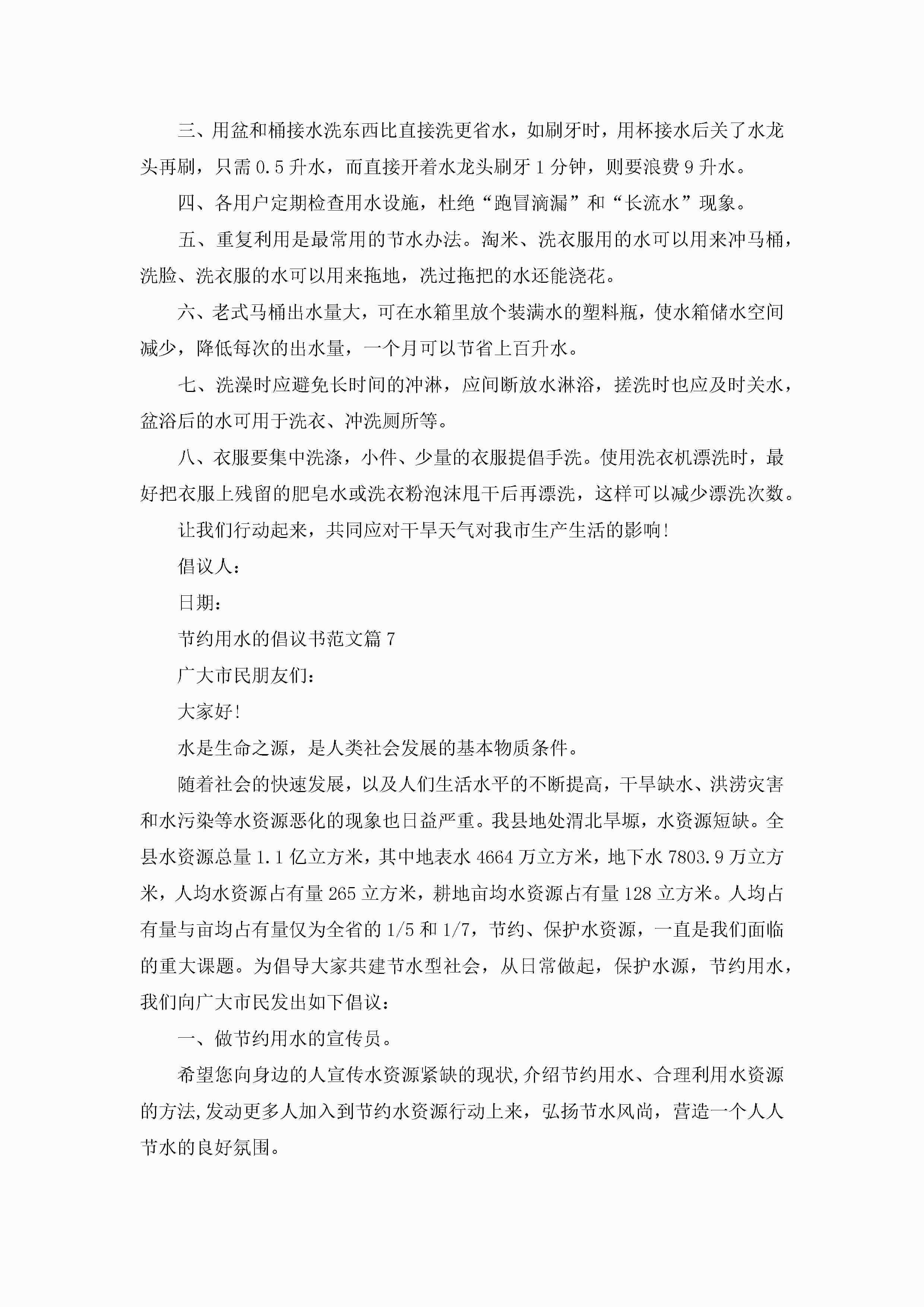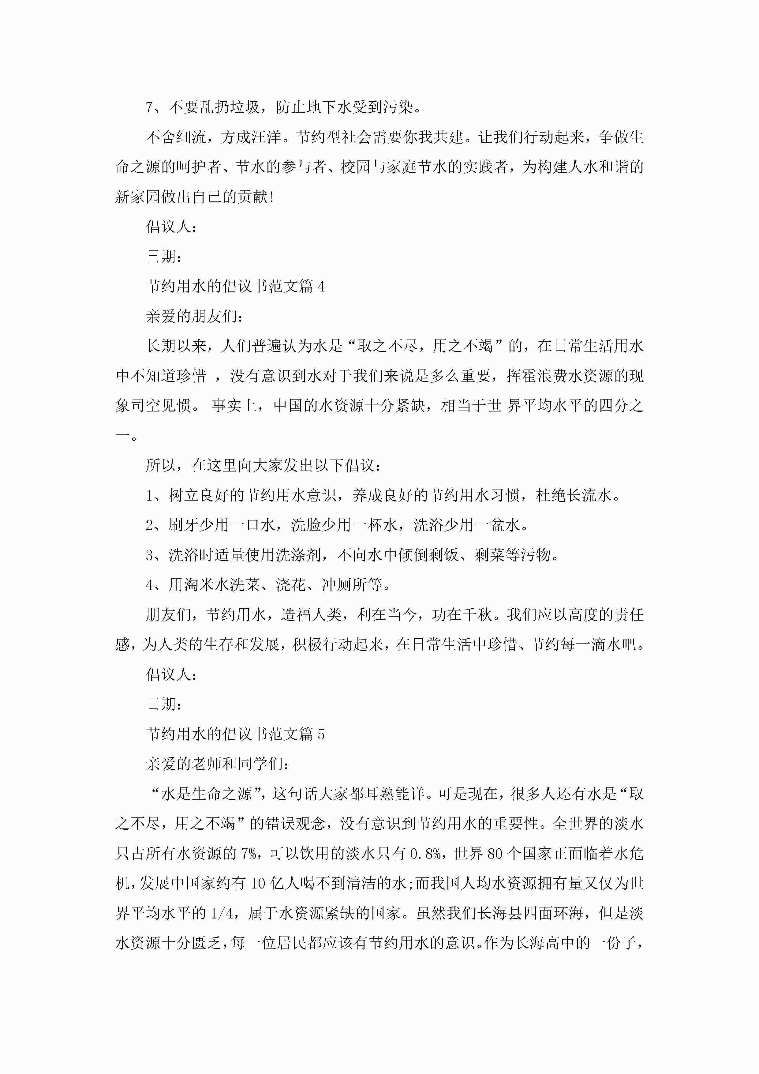 节约用水的倡议书范文大全10篇精选jugei3月22日 16:28发布关注323 节约用水的倡议书范文大全10篇精选此内容为付费资源,请付费后查看¥10.9 单篇文档限时特惠¥15个人会员开通企业会员开通立即下载无需登陆!可直接快捷下载单个模板付费资源© 版权声明THE ENDWord模板# 实用文档# 实用模板# 信函模板# 倡议书 如有问题,可点击最底部“联系我们”联系客服 分享QQ空间微博QQ好友海报分享复制链接收藏