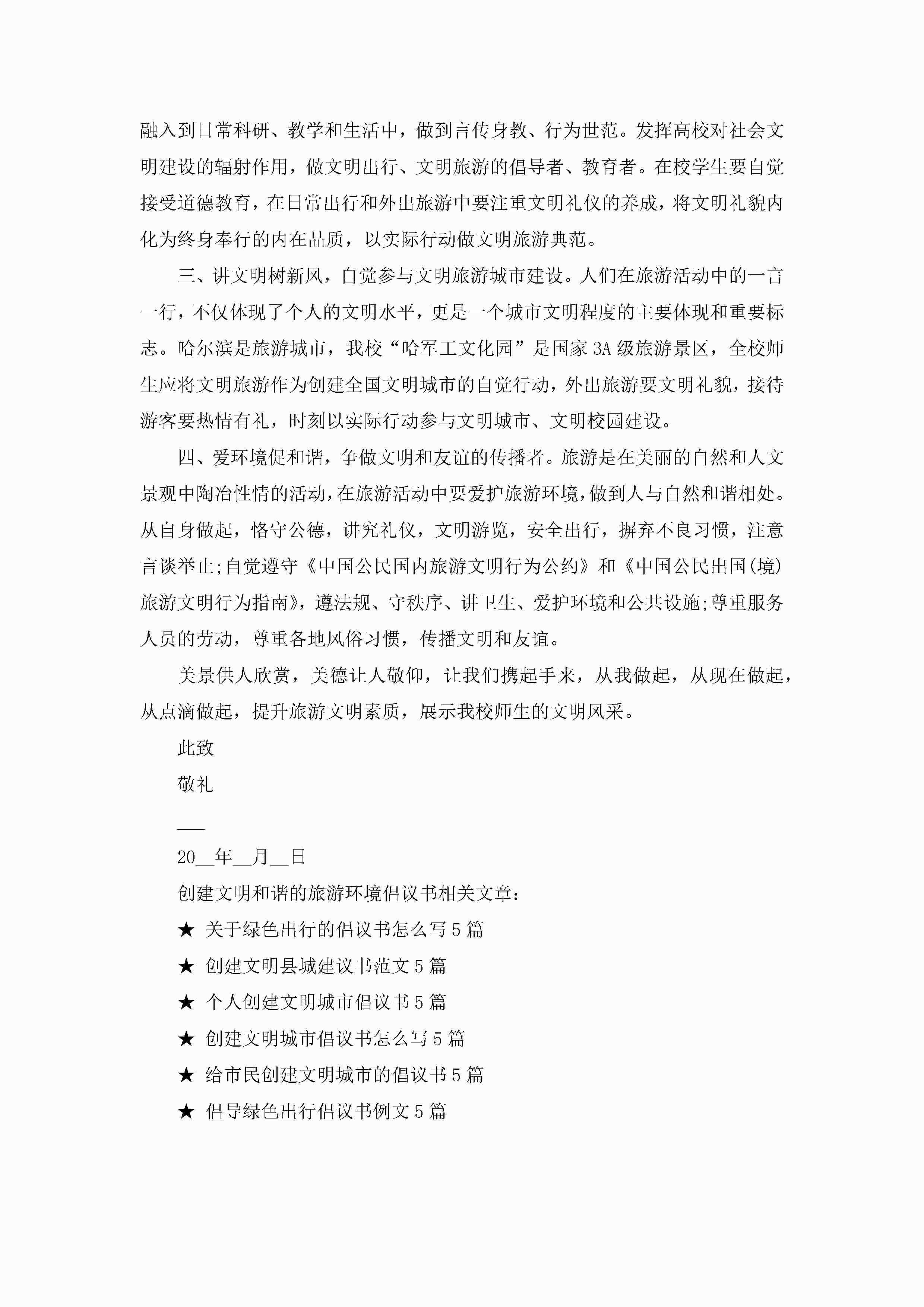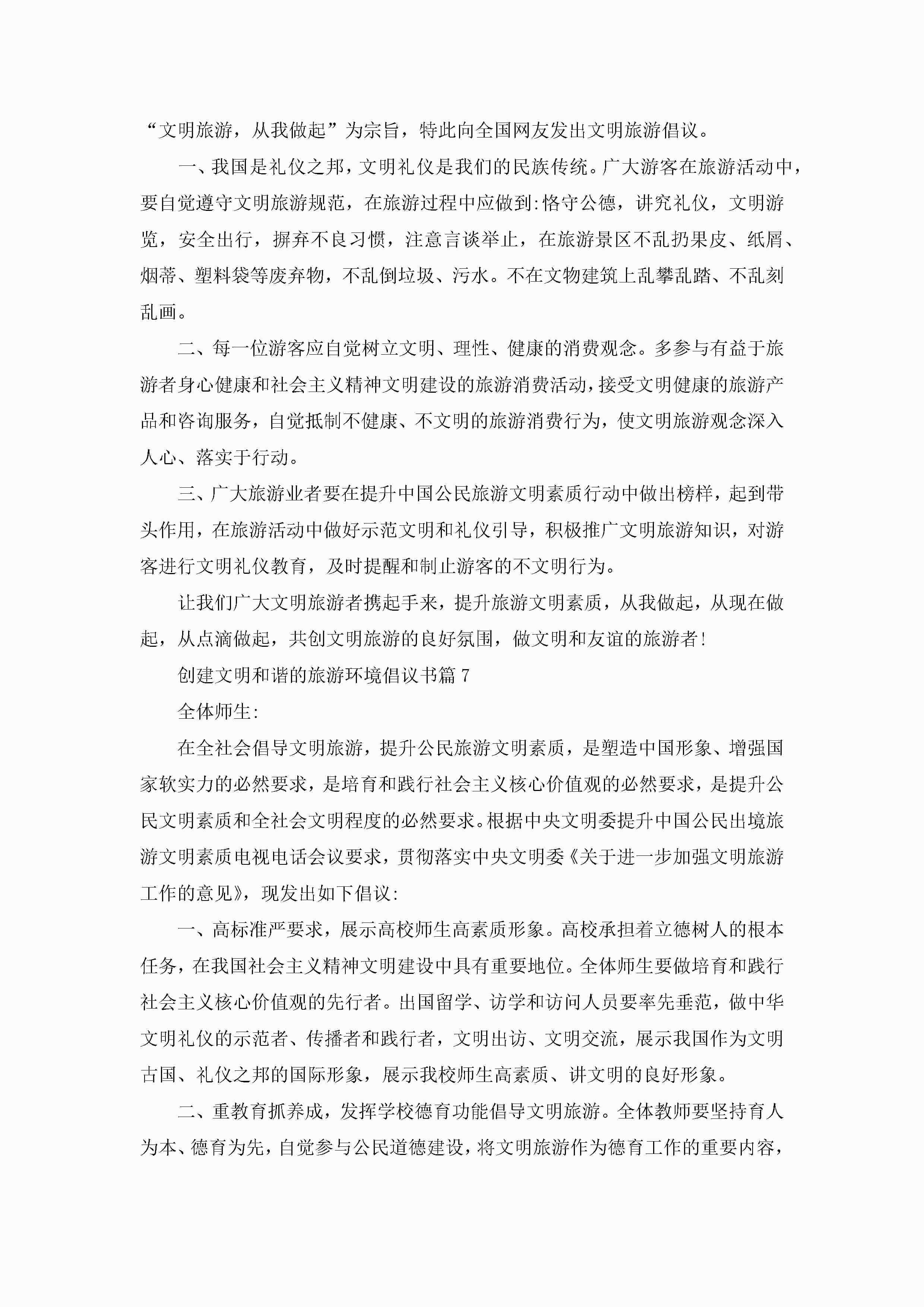 创建文明和谐的旅游环境倡议书7篇jugei3月22日 16:28发布关注393 创建文明和谐的旅游环境倡议书7篇此内容为付费资源,请付费后查看¥10.9 单篇文档限时特惠¥15个人会员开通企业会员开通立即下载无需登陆!可直接快捷下载单个模板付费资源© 版权声明THE ENDWord模板# 实用文档# 实用模板# 信函模板# 倡议书 如有问题,可点击最底部“联系我们”联系客服 分享QQ空间微博QQ好友海报分享复制链接收藏