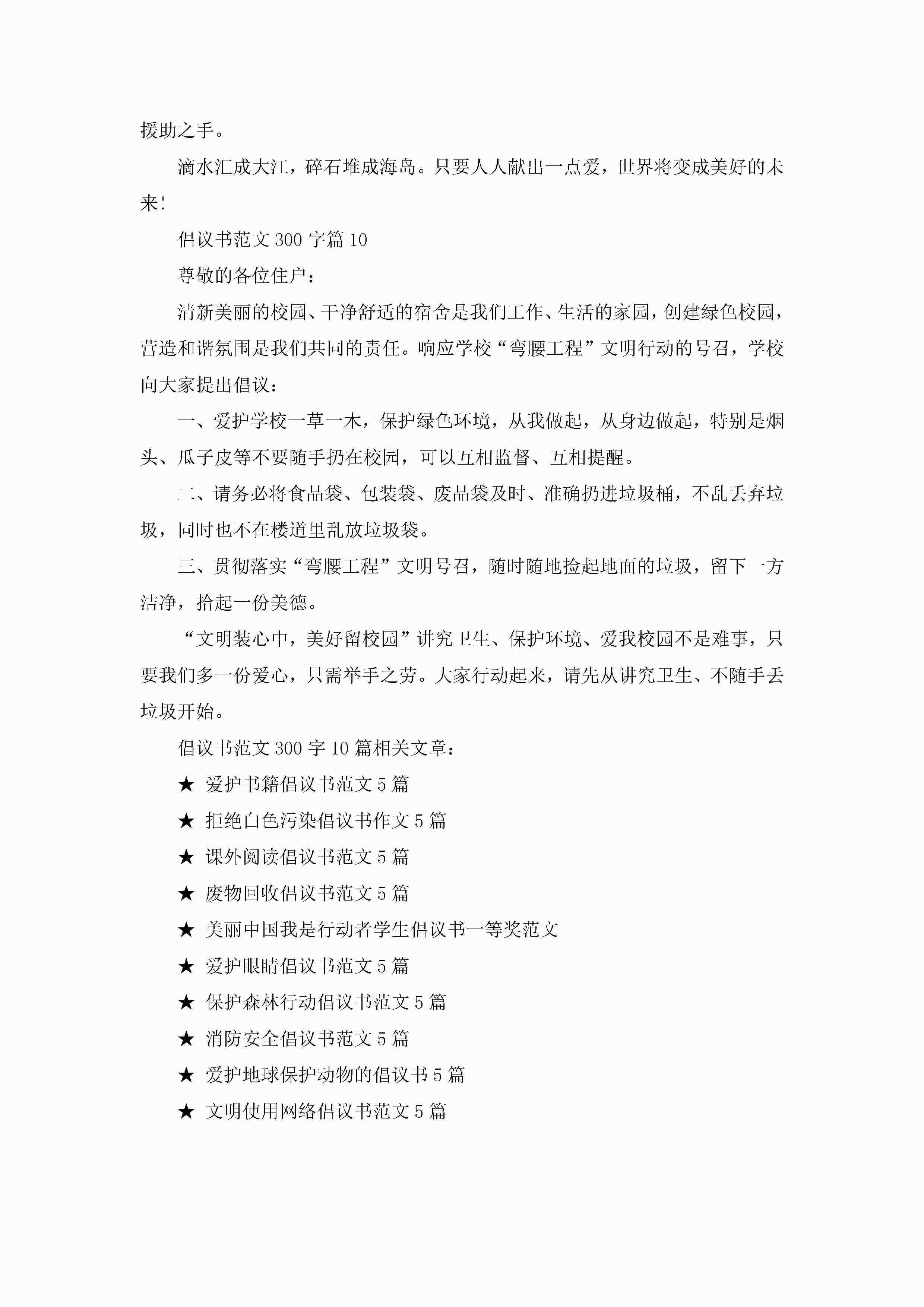 倡议书范文300字10篇精选jugei3月22日 16:28发布关注236 倡议书范文300字10篇精选此内容为付费资源,请付费后查看¥10.9 单篇文档限时特惠¥15个人会员开通企业会员开通立即下载无需登陆!可直接快捷下载单个模板付费资源© 版权声明THE ENDWord模板# 实用文档# 实用模板# 信函模板# 倡议书 如有问题,可点击最底部“联系我们”联系客服 分享QQ空间微博QQ好友海报分享复制链接收藏