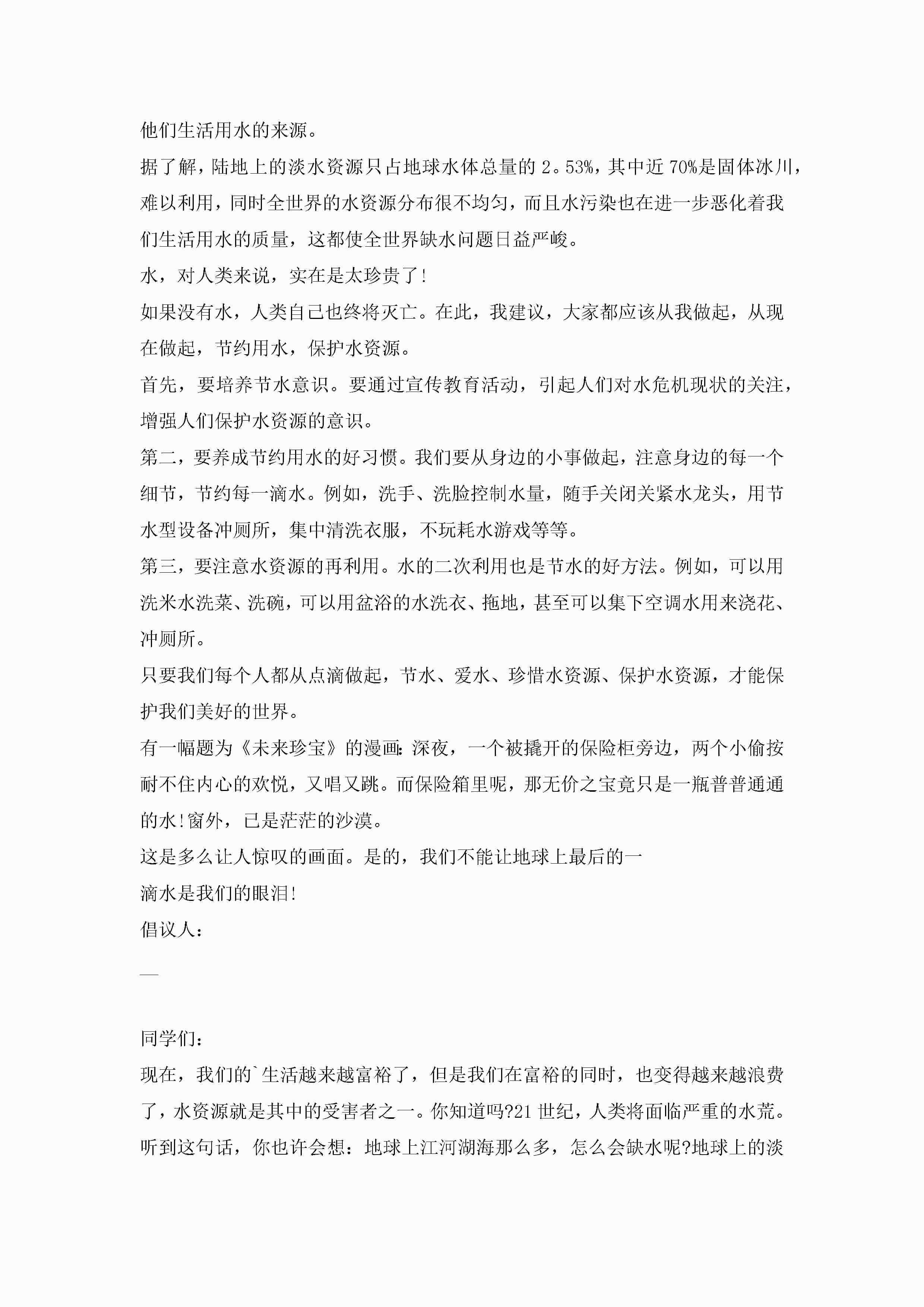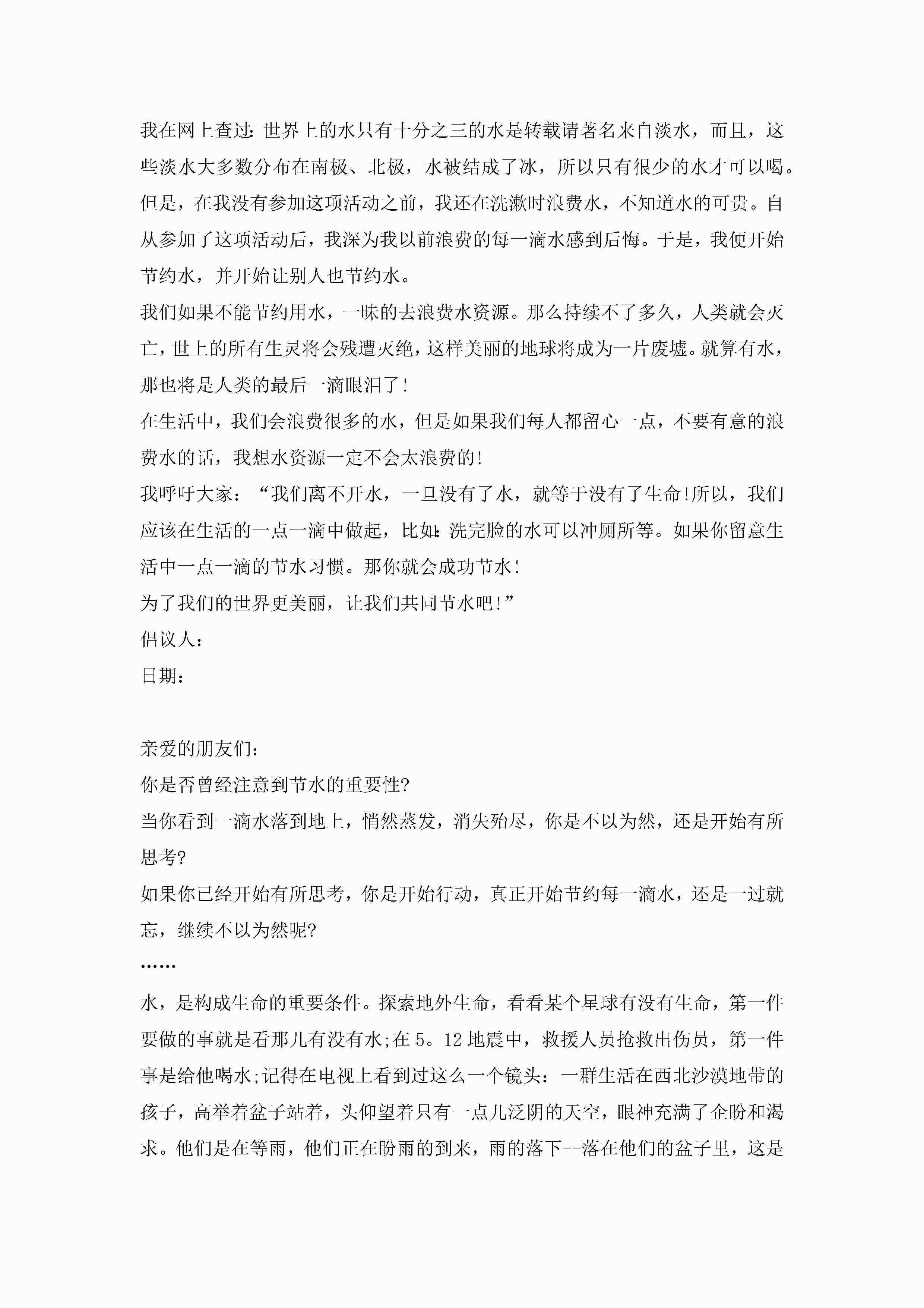 关于节约用水倡议书范文大全10篇精选jugei3月22日 16:28发布关注189 关于节约用水倡议书范文大全10篇精选此内容为付费资源,请付费后查看¥10.9 单篇文档限时特惠¥15个人会员开通企业会员开通立即下载无需登陆!可直接快捷下载单个模板付费资源© 版权声明THE ENDWord模板# 实用文档# 实用模板# 信函模板# 倡议书 如有问题,可点击最底部“联系我们”联系客服 分享QQ空间微博QQ好友海报分享复制链接收藏