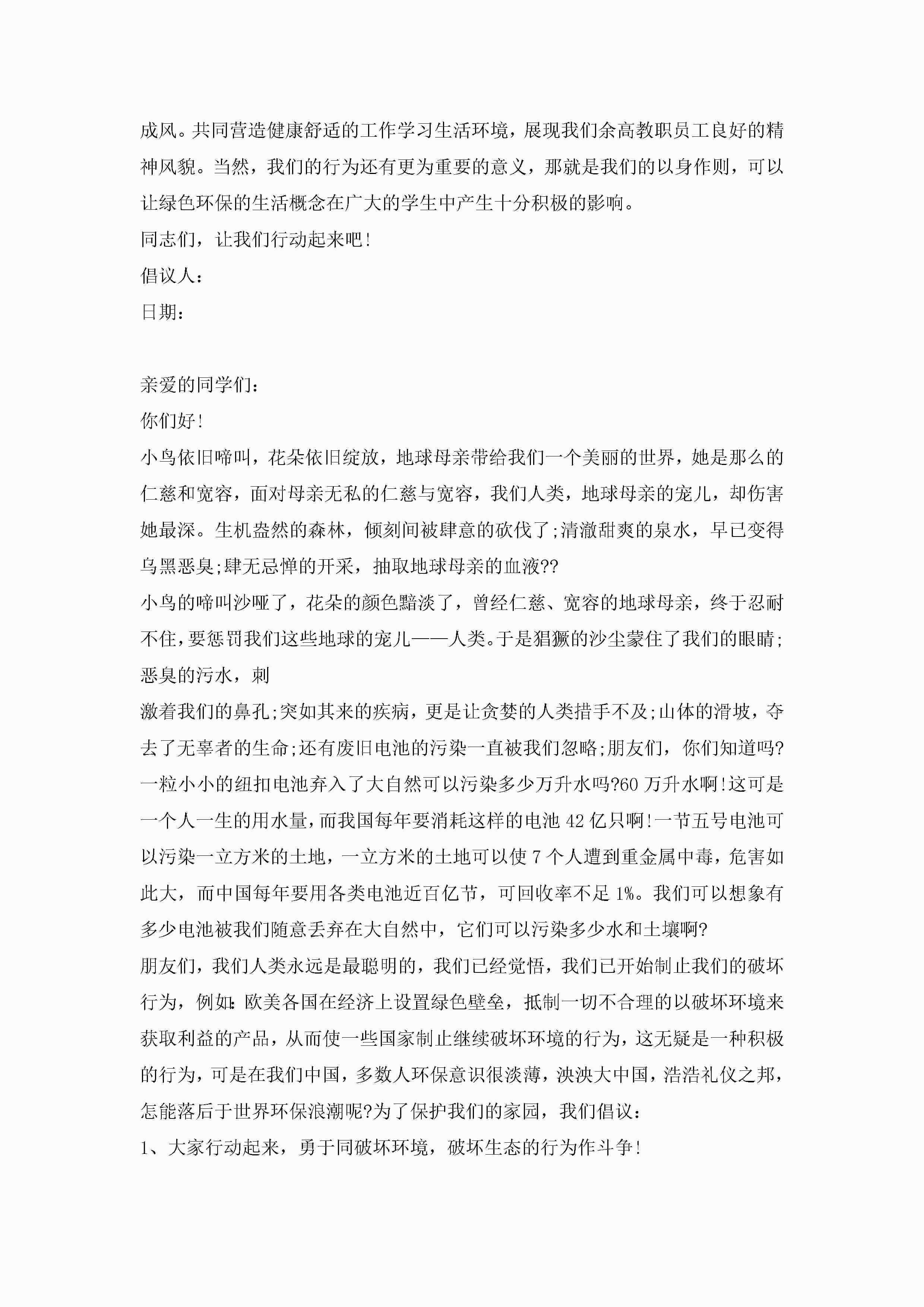 环保倡议书600字范文10篇精选jugei3月22日 16:28发布关注255 环保倡议书600字范文10篇精选此内容为付费资源,请付费后查看¥10.9 单篇文档限时特惠¥15个人会员开通企业会员开通立即下载无需登陆!可直接快捷下载单个模板付费资源© 版权声明THE ENDWord模板# 实用文档# 实用模板# 信函模板# 倡议书 如有问题,可点击最底部“联系我们”联系客服 分享QQ空间微博QQ好友海报分享复制链接收藏