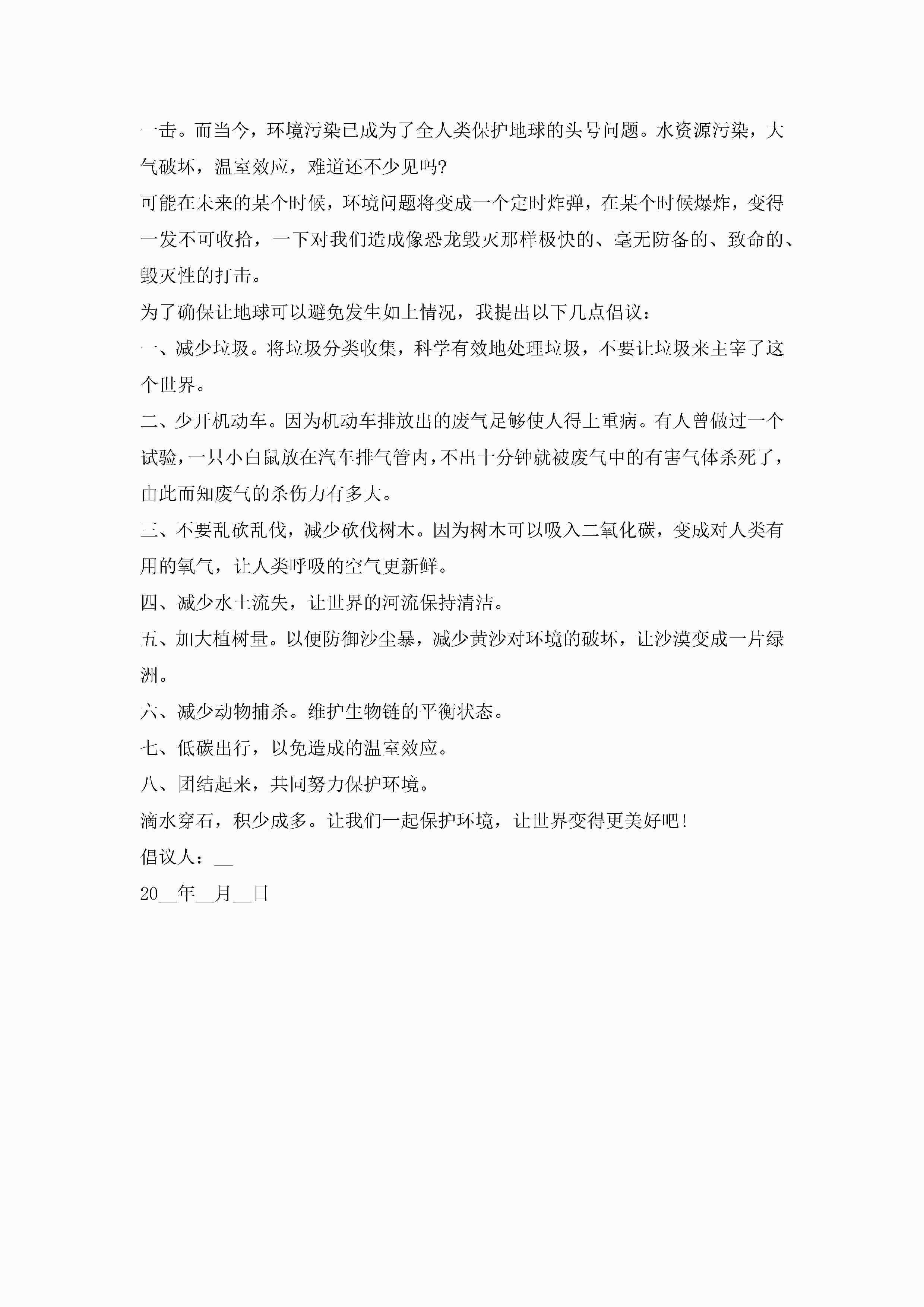 保护环境倡议书范文500字10篇精选jugei3月22日 16:28发布关注190 保护环境倡议书范文500字10篇精选此内容为付费资源,请付费后查看¥10.9 单篇文档限时特惠¥15个人会员开通企业会员开通立即下载无需登陆!可直接快捷下载单个模板付费资源© 版权声明THE ENDWord模板# 实用文档# 实用模板# 信函模板# 倡议书 如有问题,可点击最底部“联系我们”联系客服 分享QQ空间微博QQ好友海报分享复制链接收藏
